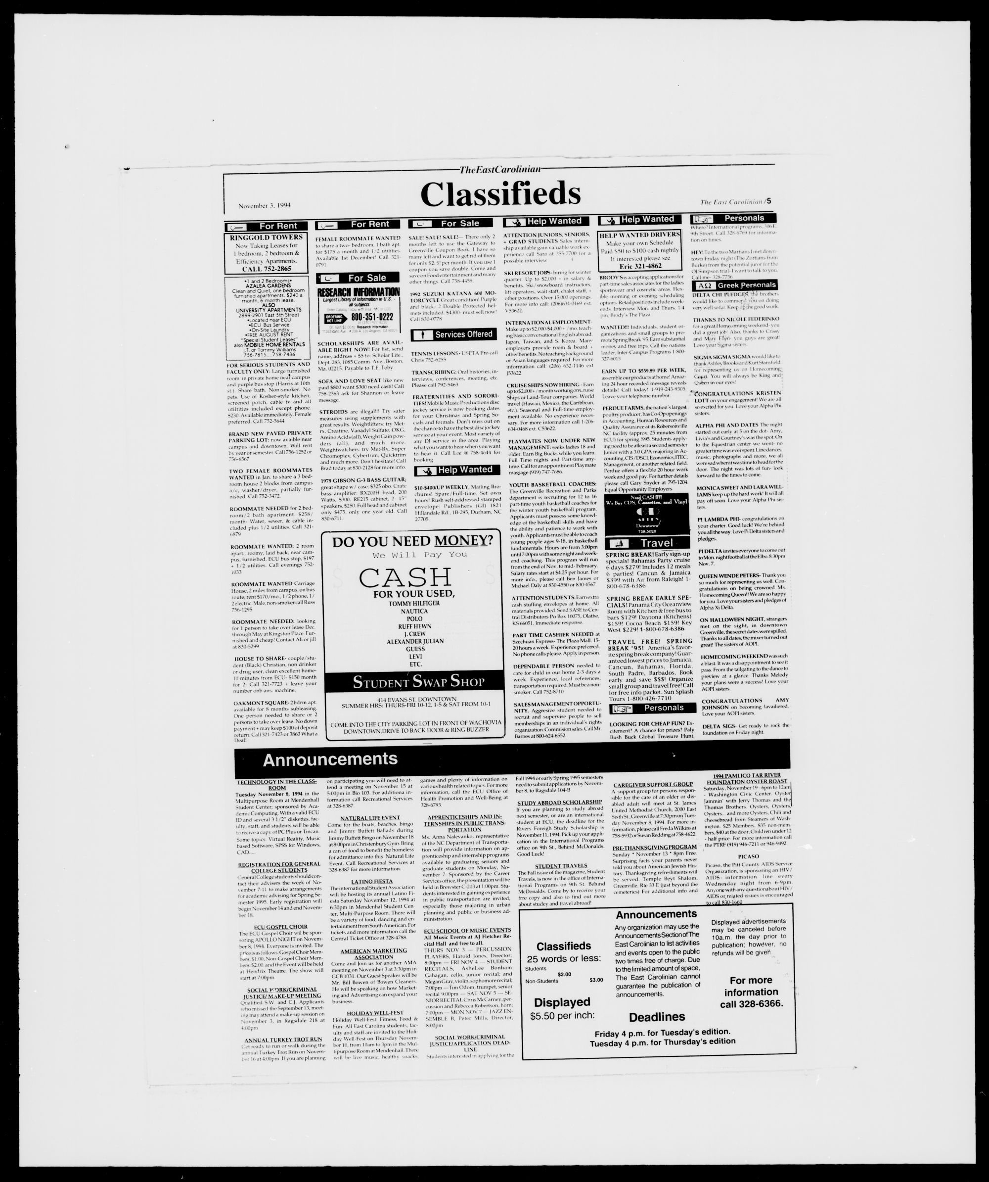 WHEN: Tuesday Novembers, 1994