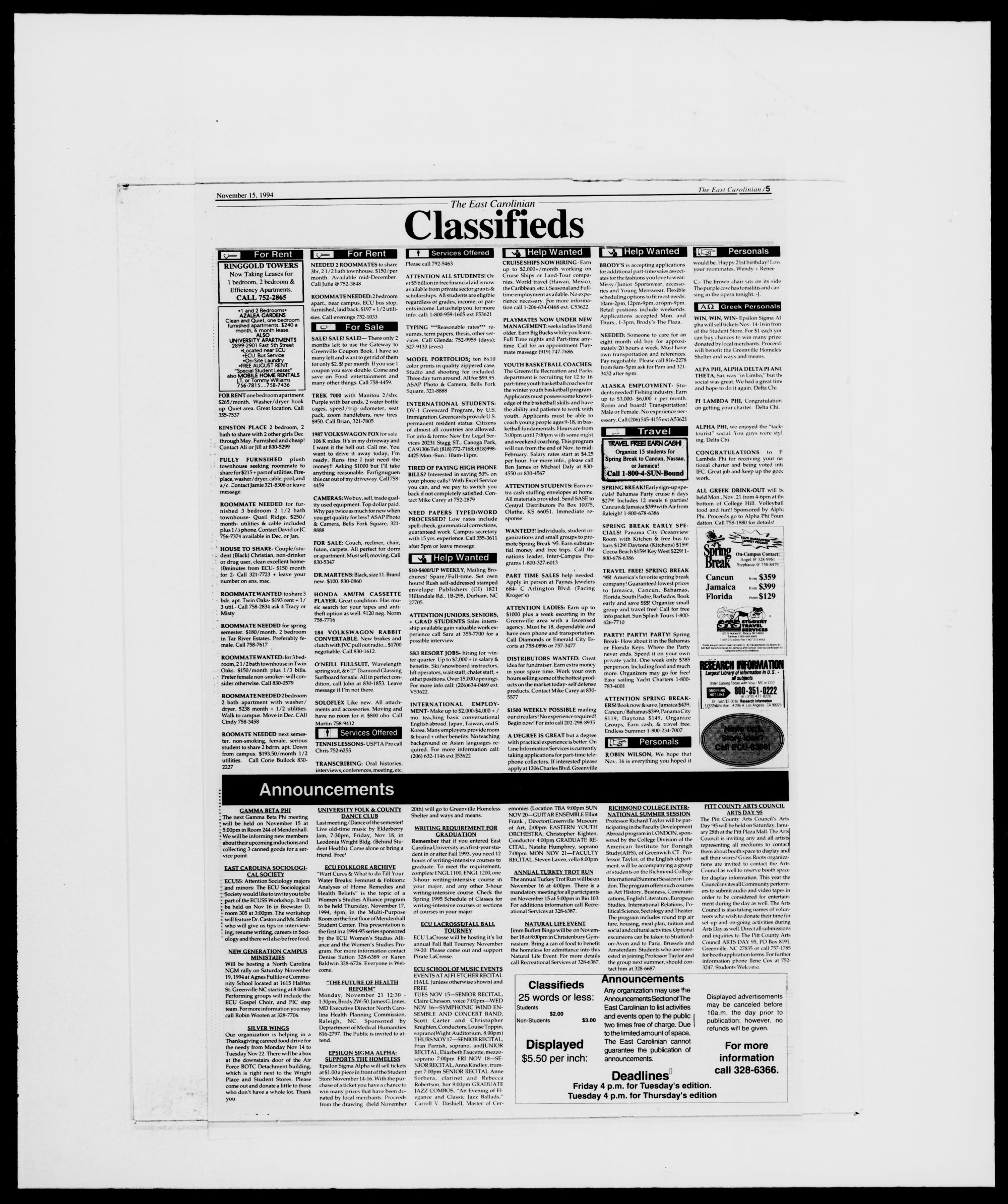 November 17. 18. 19, 21 and 22. 1994 at 8:00 p.m.