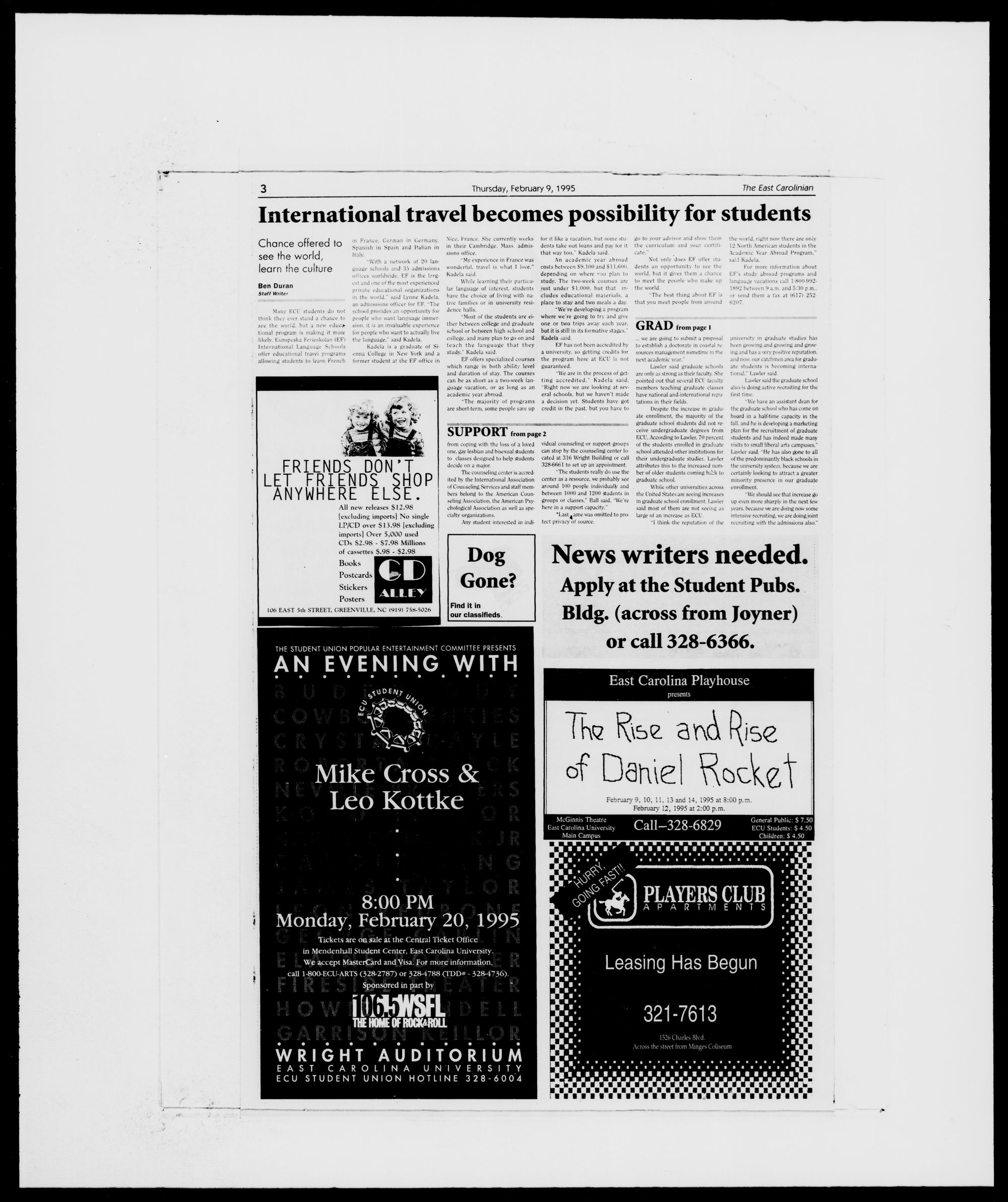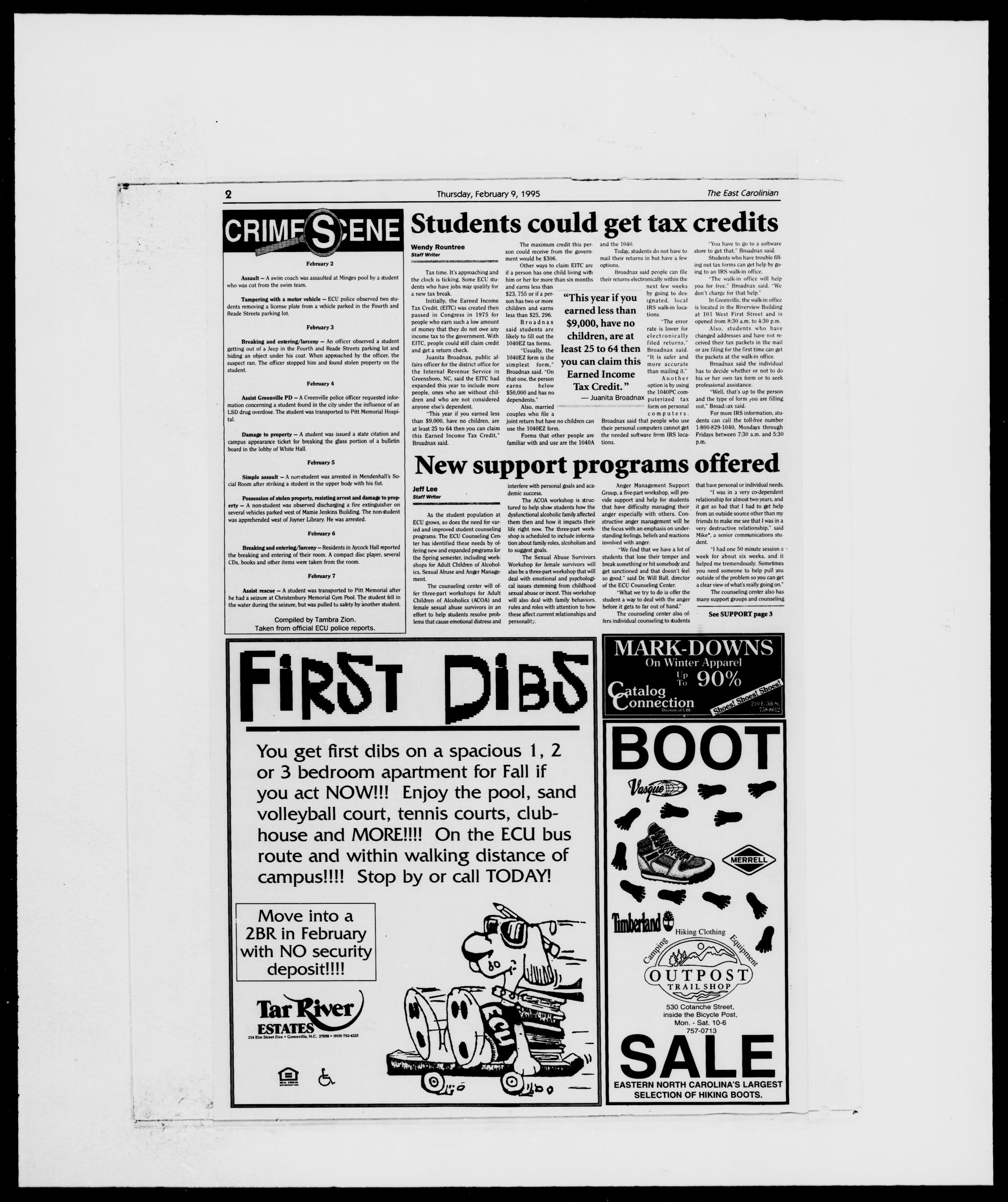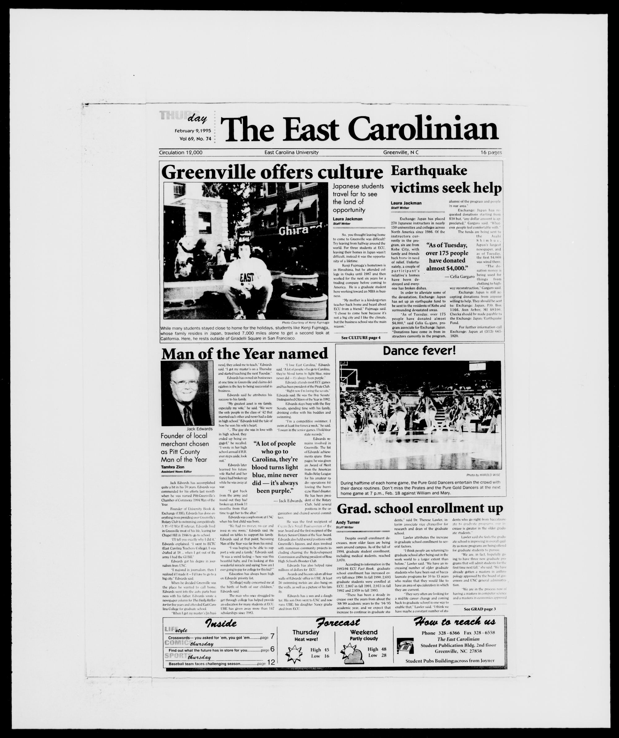East Carolina's student-run campus newspaper was first published in 1923 as the East Carolina Teachers College News (1923-1925). It has been re-named as The Teco Echo (1925, 1926-1952), East Carolinian (1952-1969), Fountainhead (1969-1979), and The East Carolinian (1969, 1979-present). It includes local, state, national, and international stories with a focus on campus events.