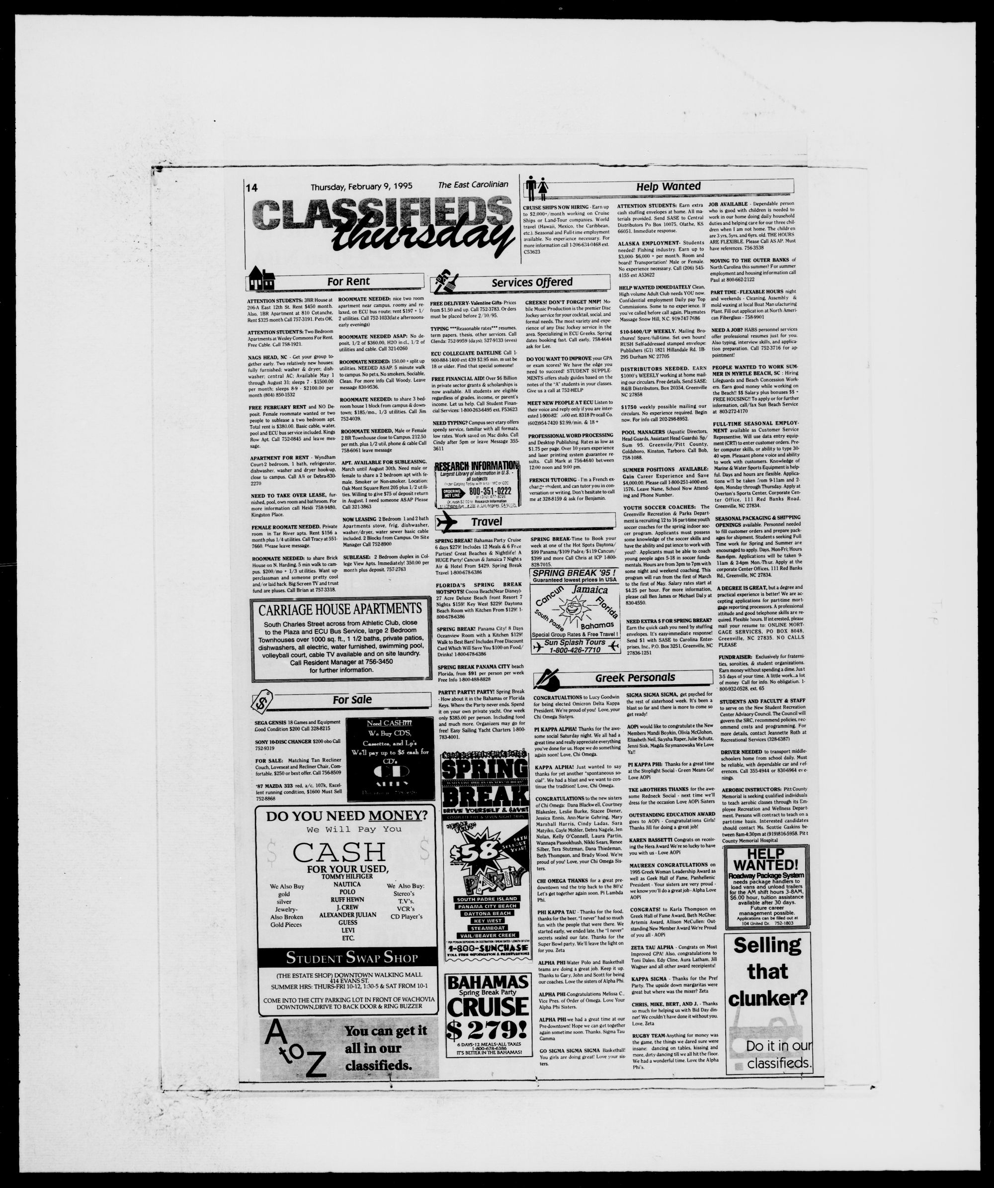 J?4 Messages will appear in the Feb. 14 issue of The East Carolinian