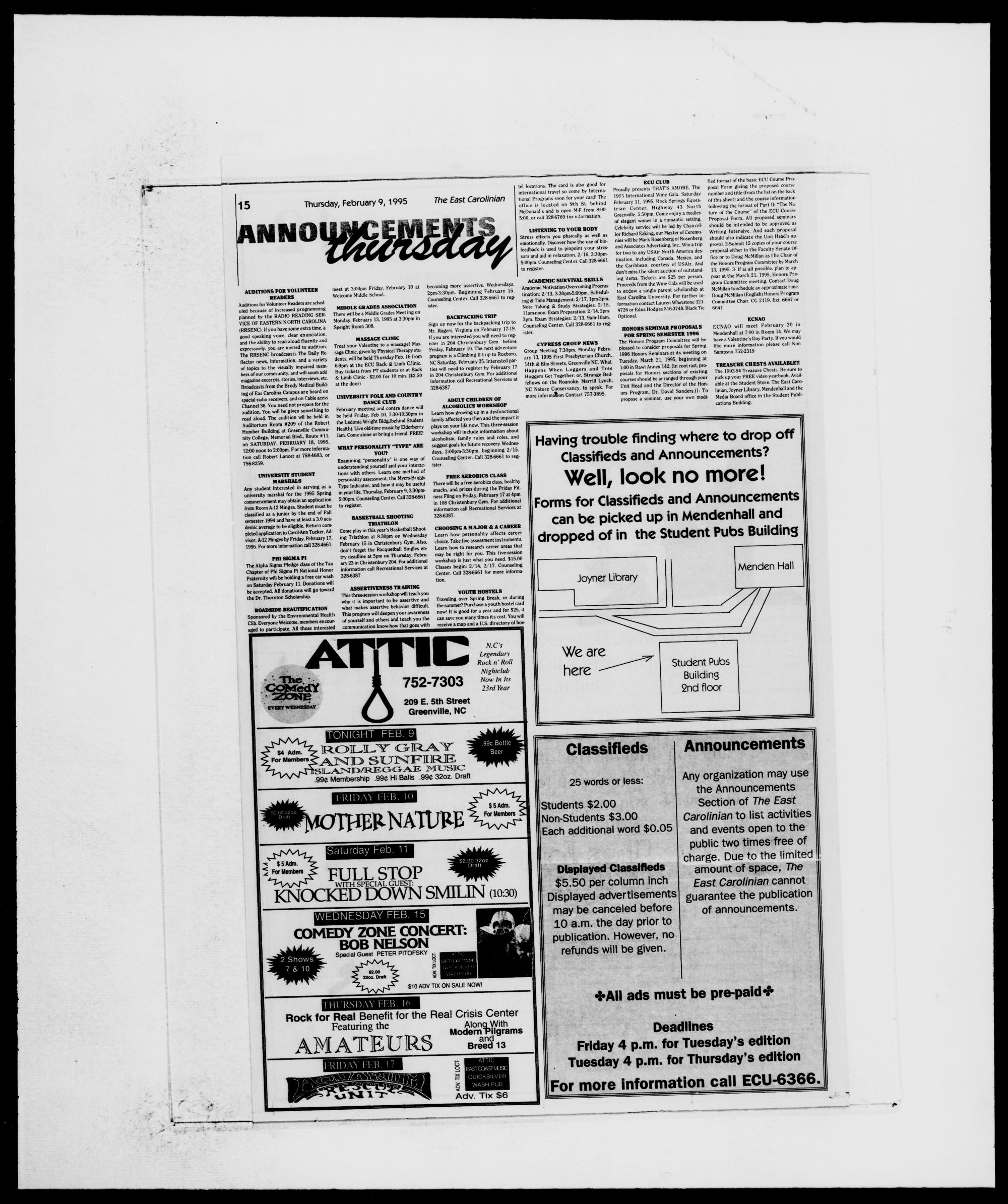 Bring form and payment to East Carolinian office (2nd floor. Student Pubs Building).