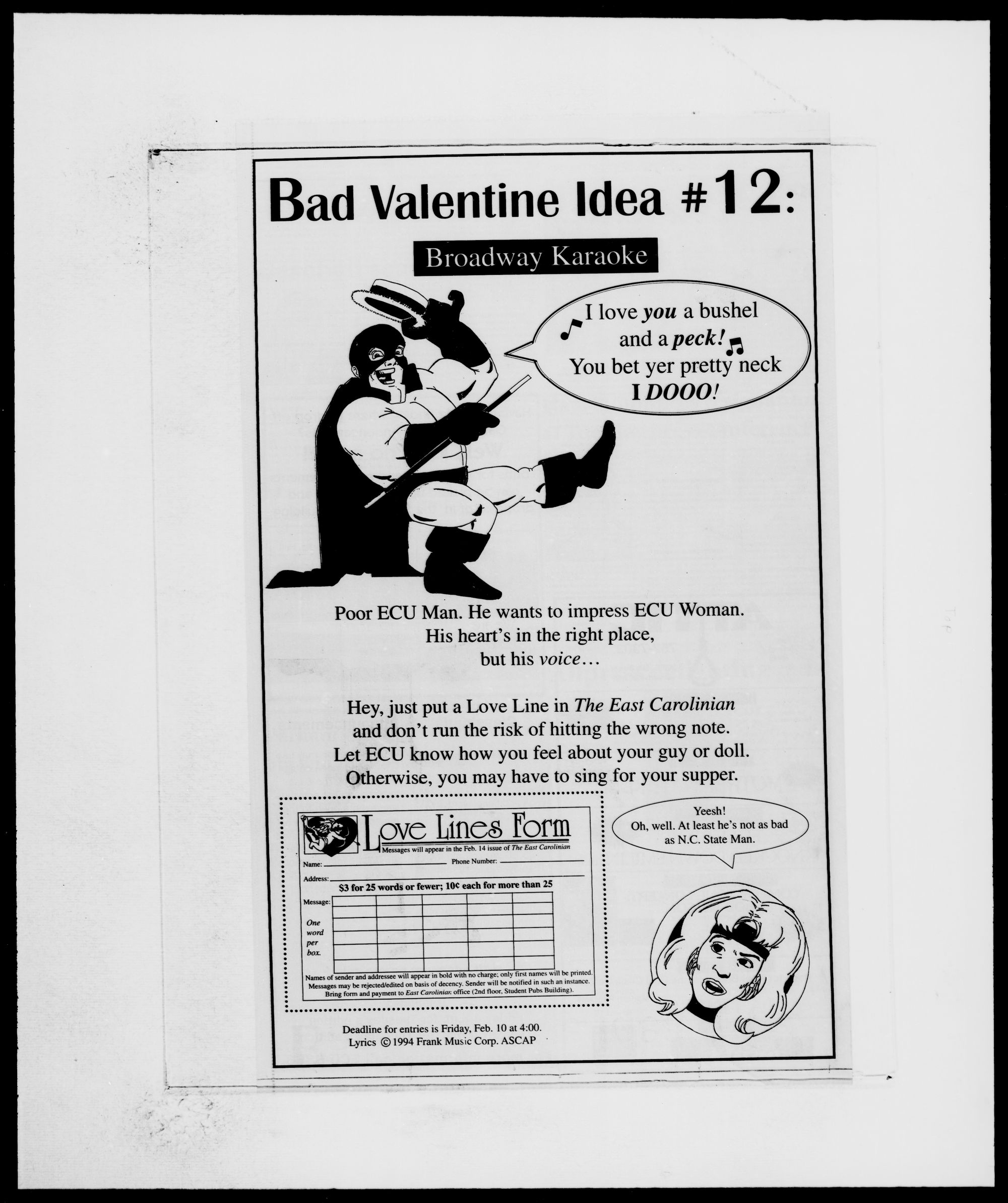 Public access is provided to these resources to preserve the historical record. The content represents the opinions and actions of their creators and the culture in which they were produced. Therefore, some materials may contain language and imagery that is outdated, offensive and/or harmful. The content does not reflect the opinions, values, or beliefs of ECU Libraries.
