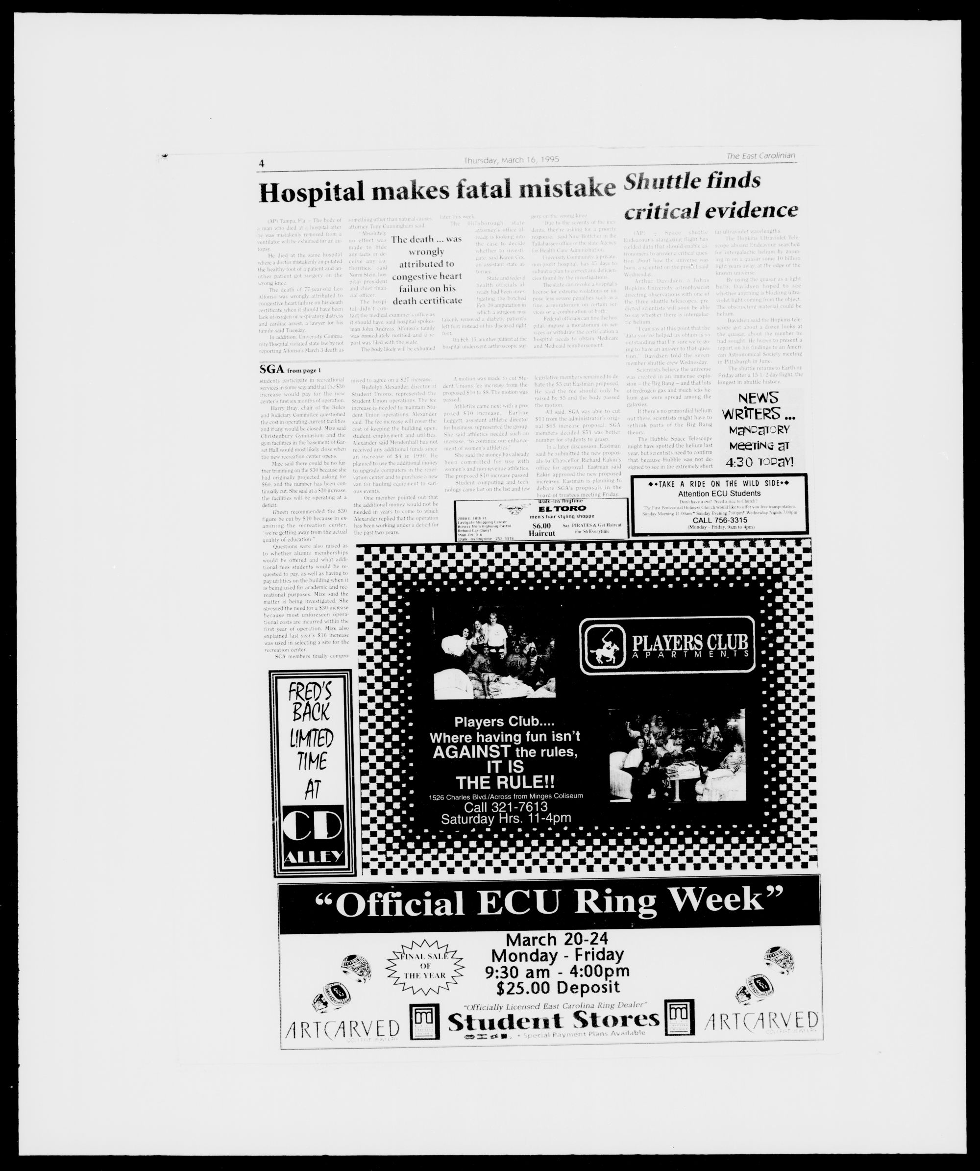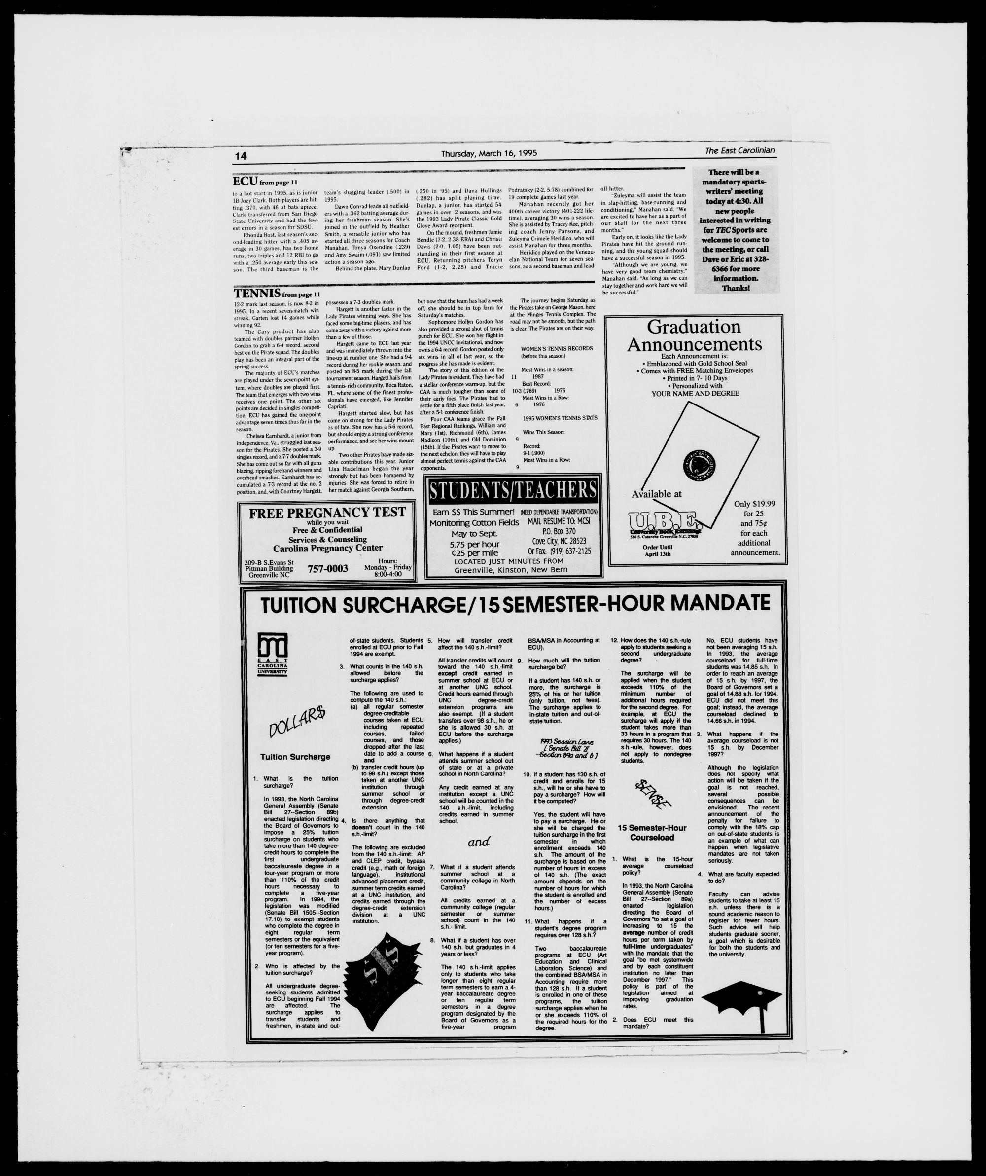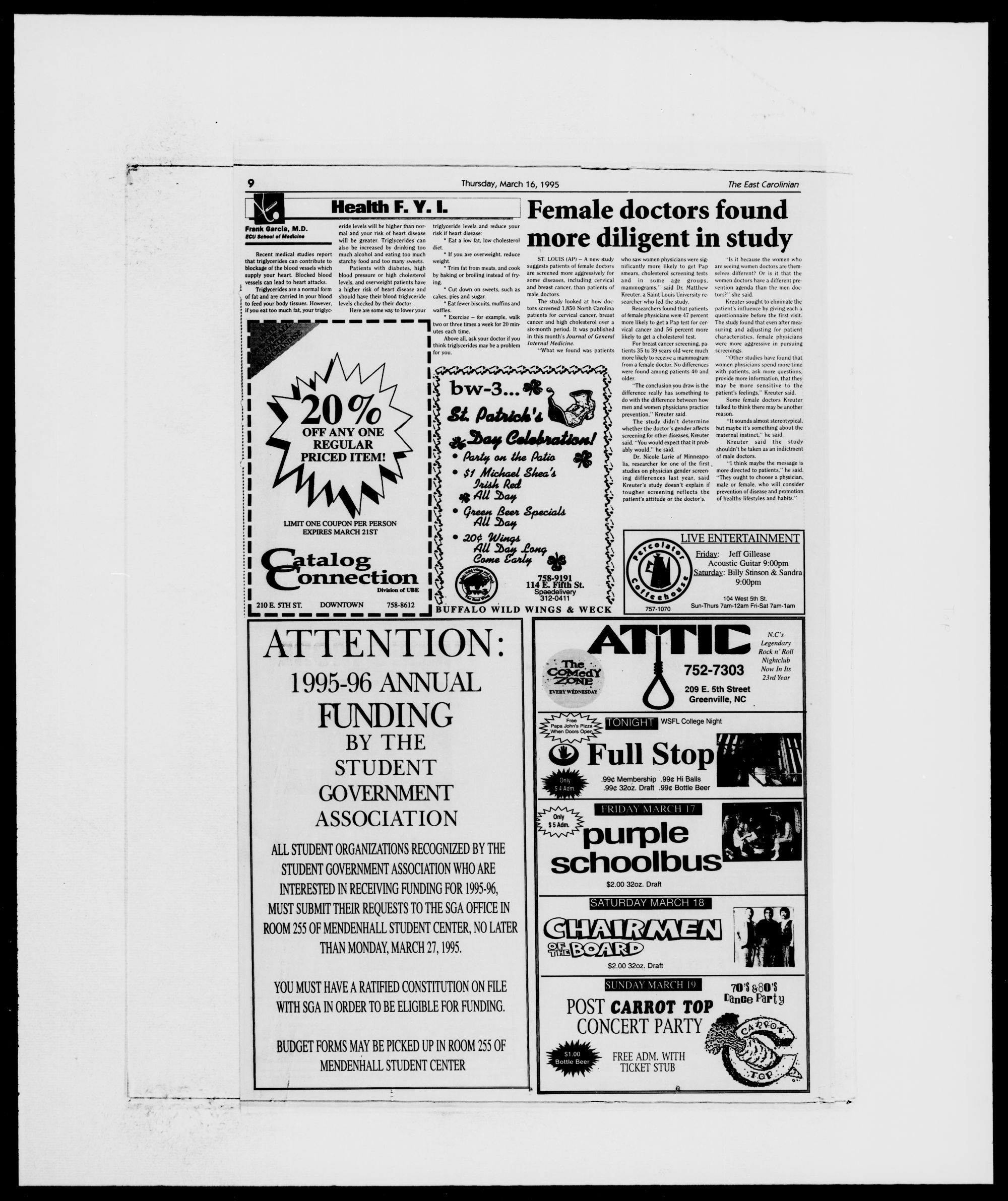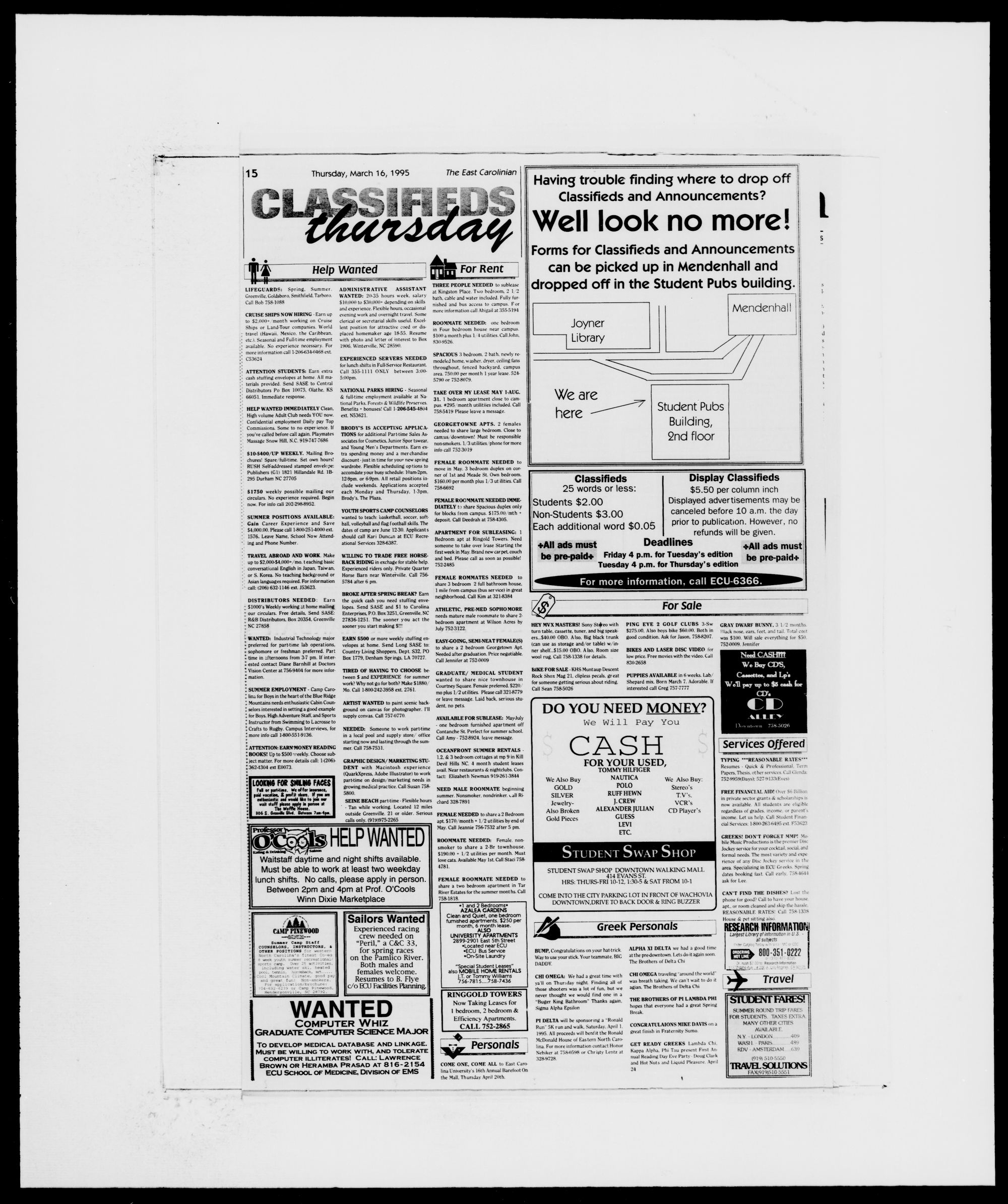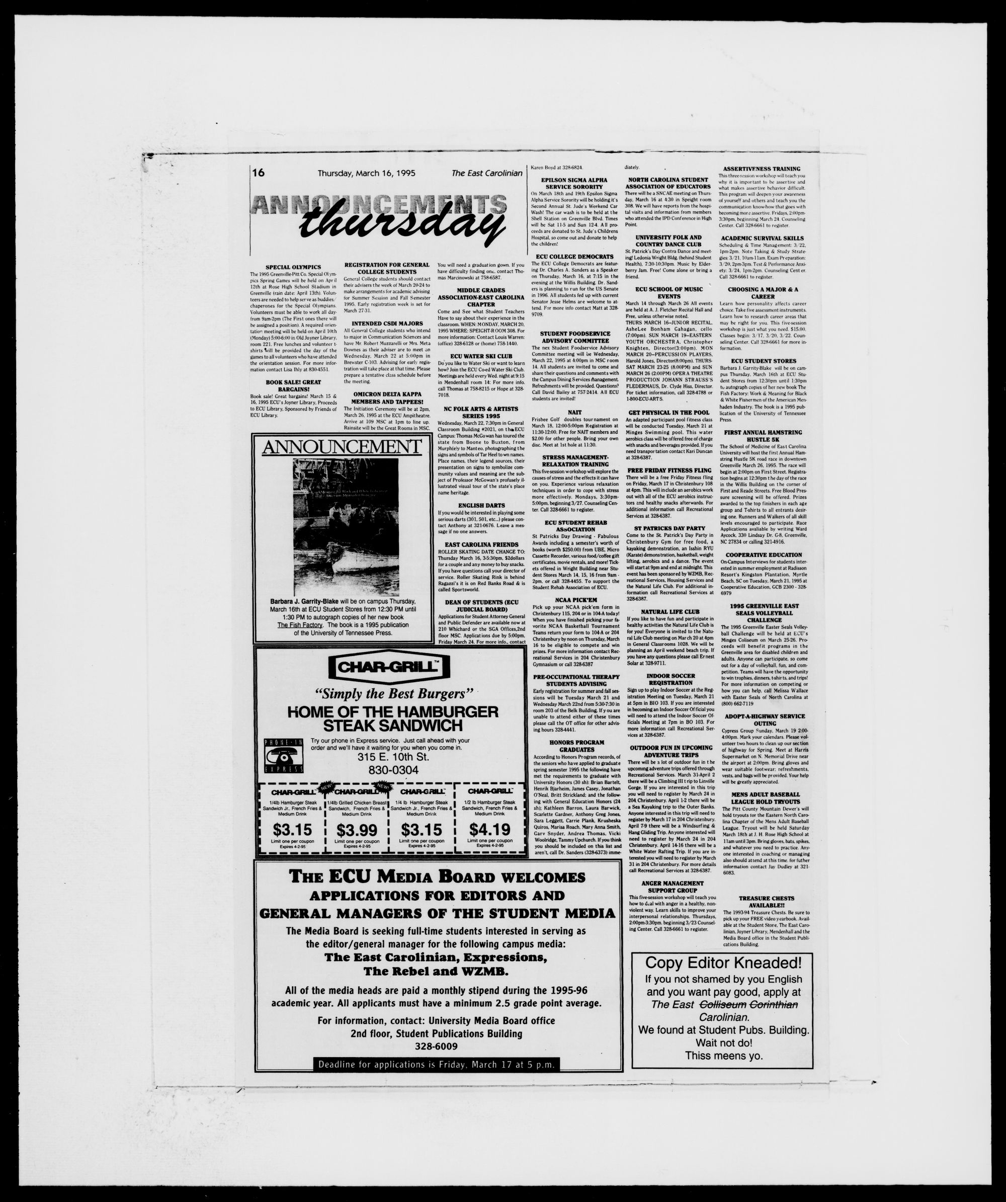 pus Thursday. March 16th at ECU Stu-