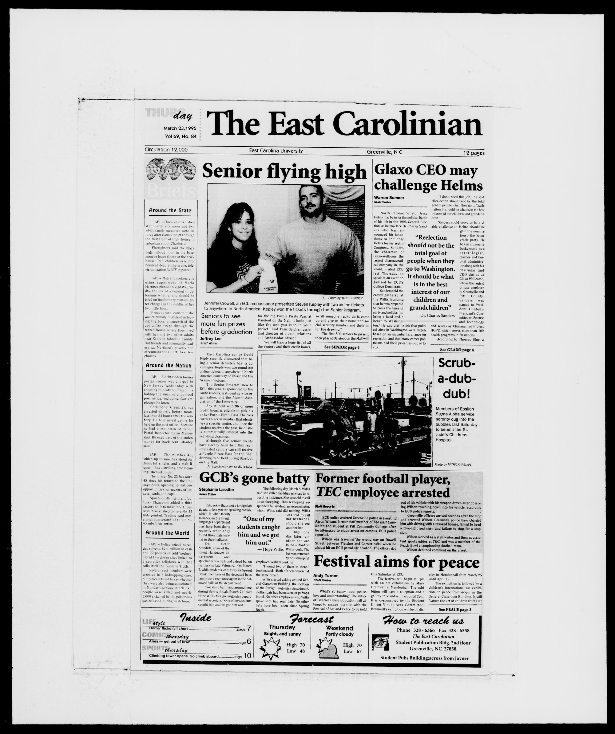 Jennifer Crowell, an ECU ambassador presented Steven Kepley with two airline tickets