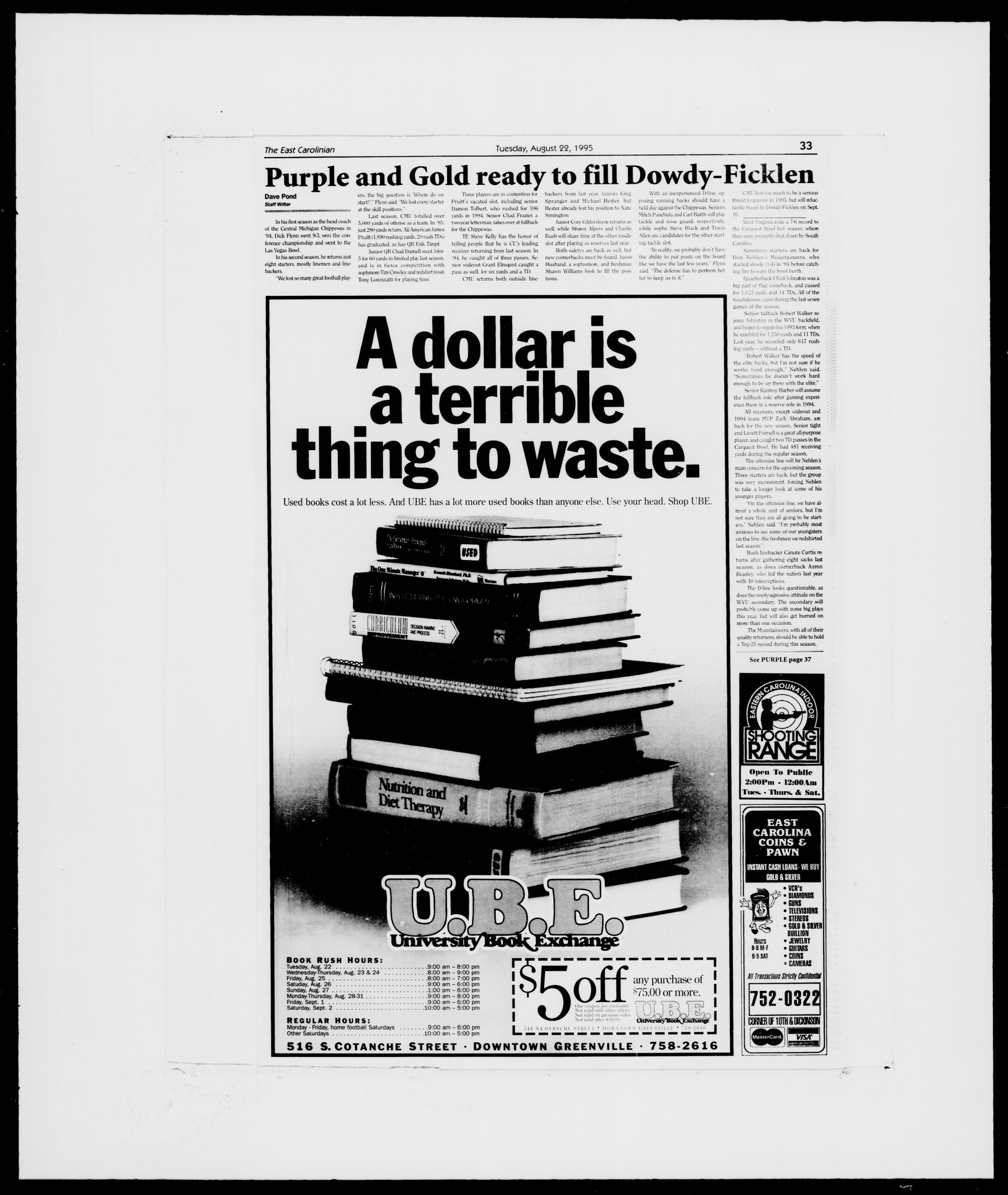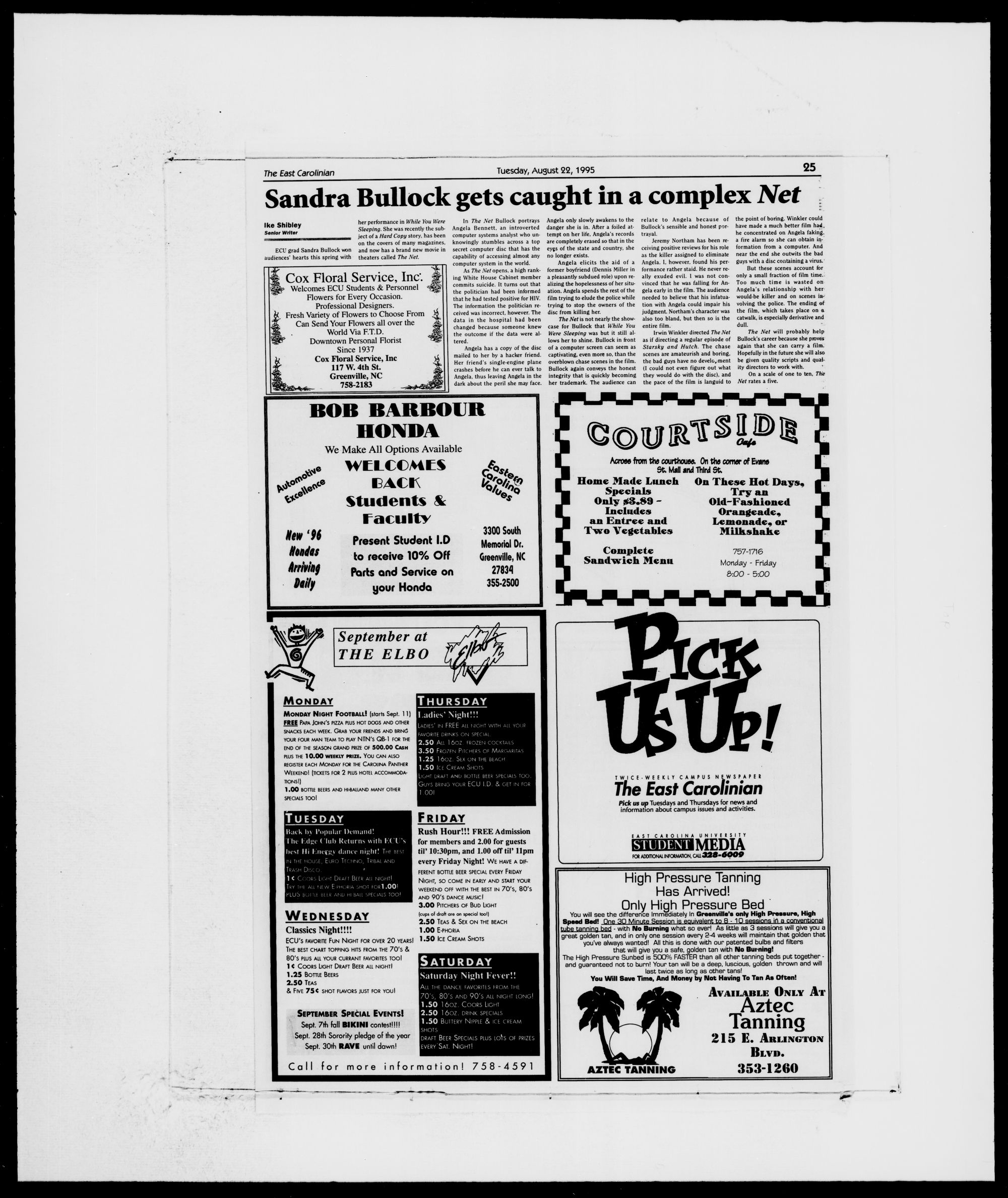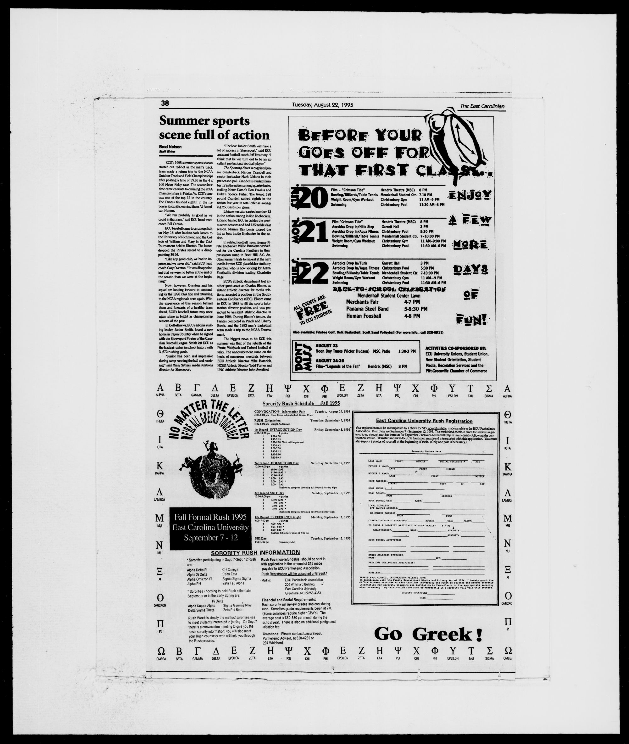 matchups. (Bottom), ECU student Jennifer Hart swelters in