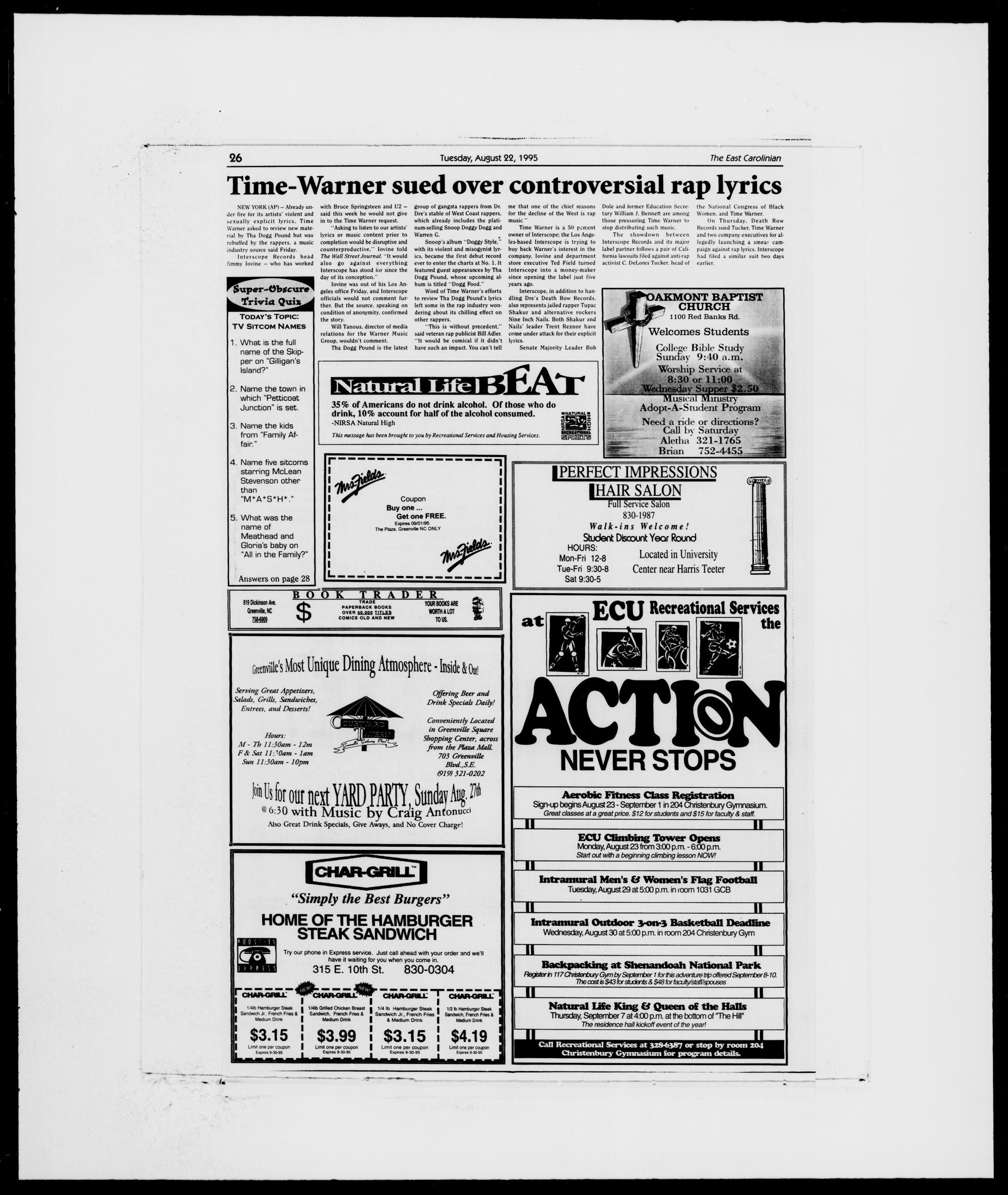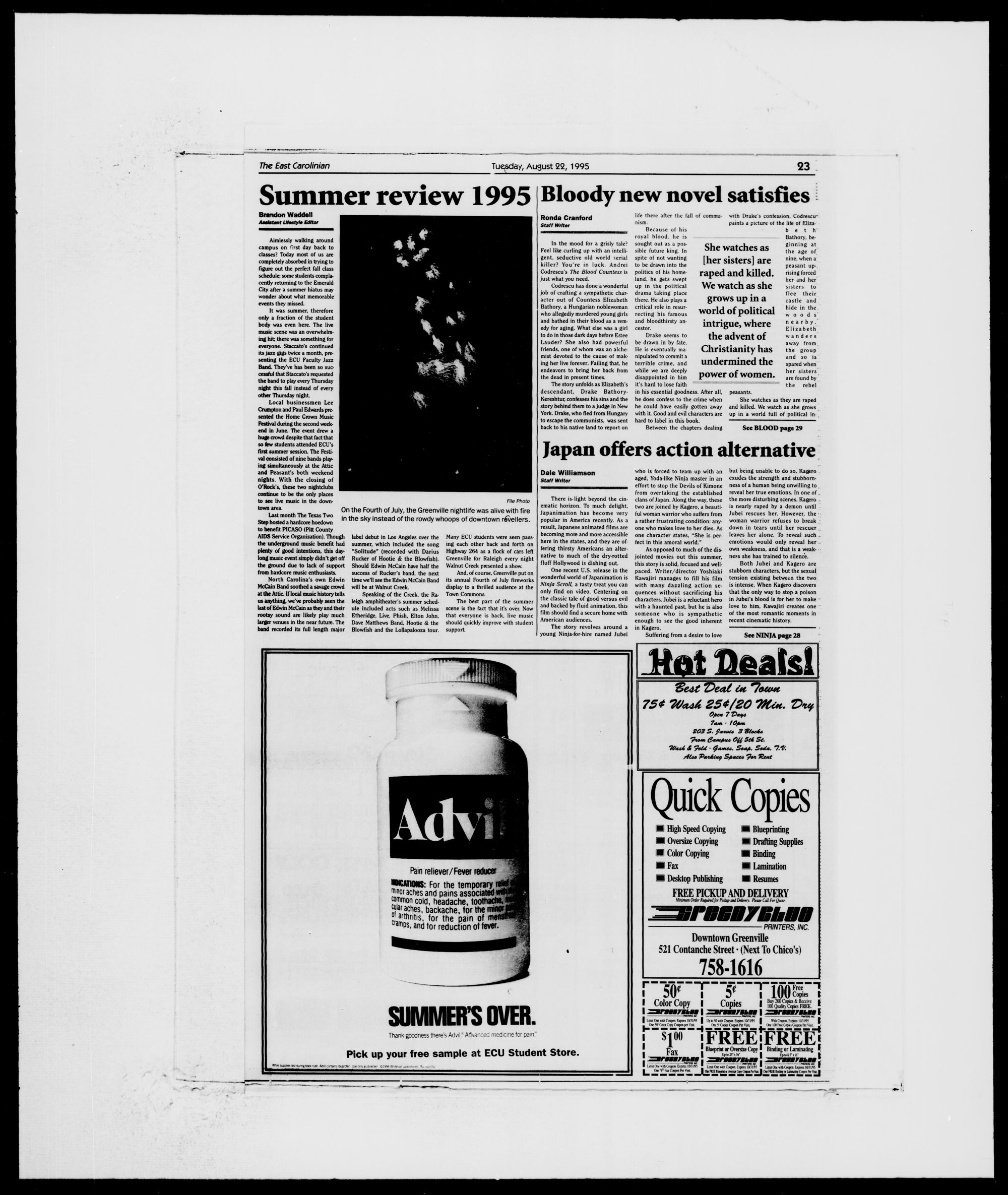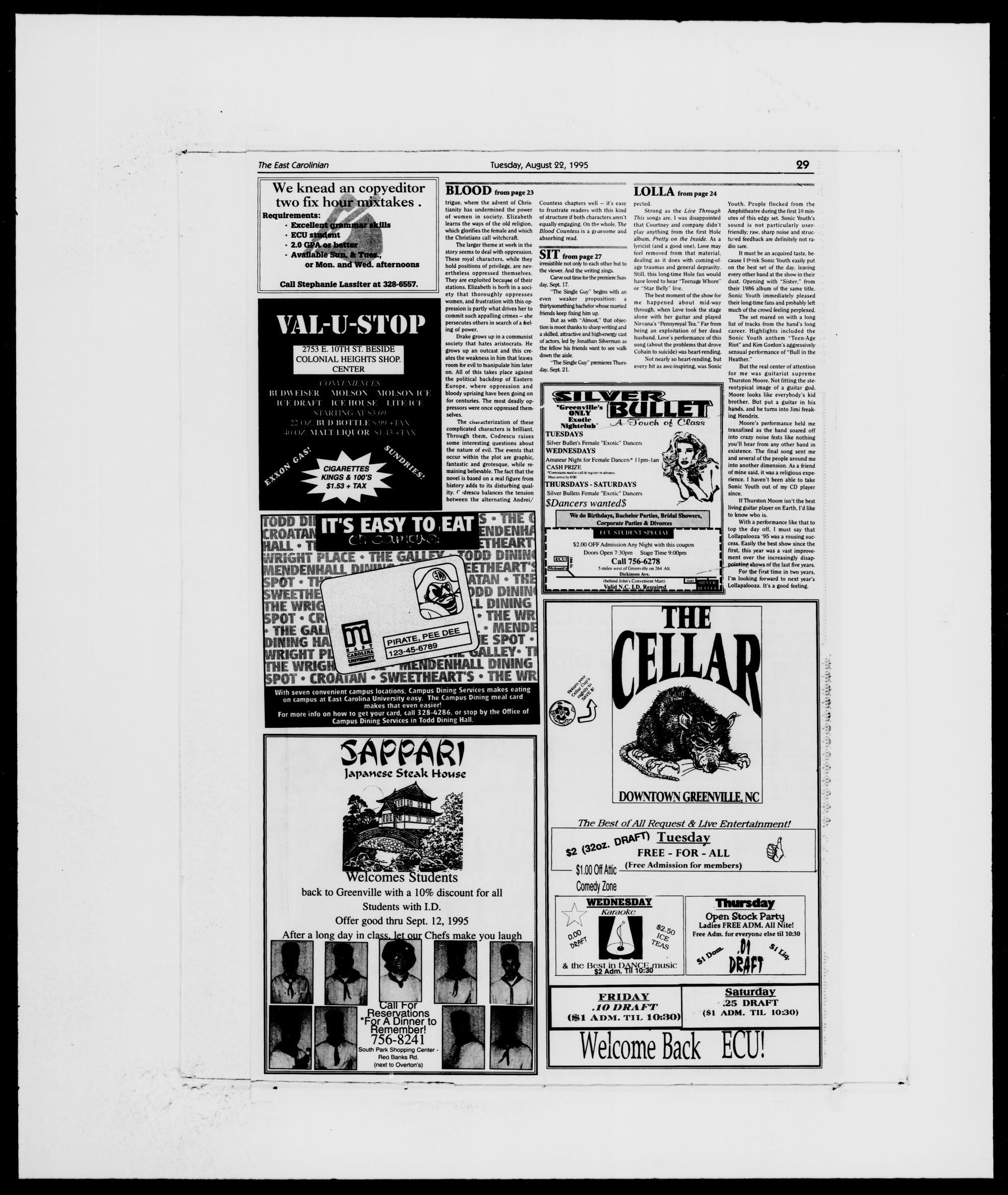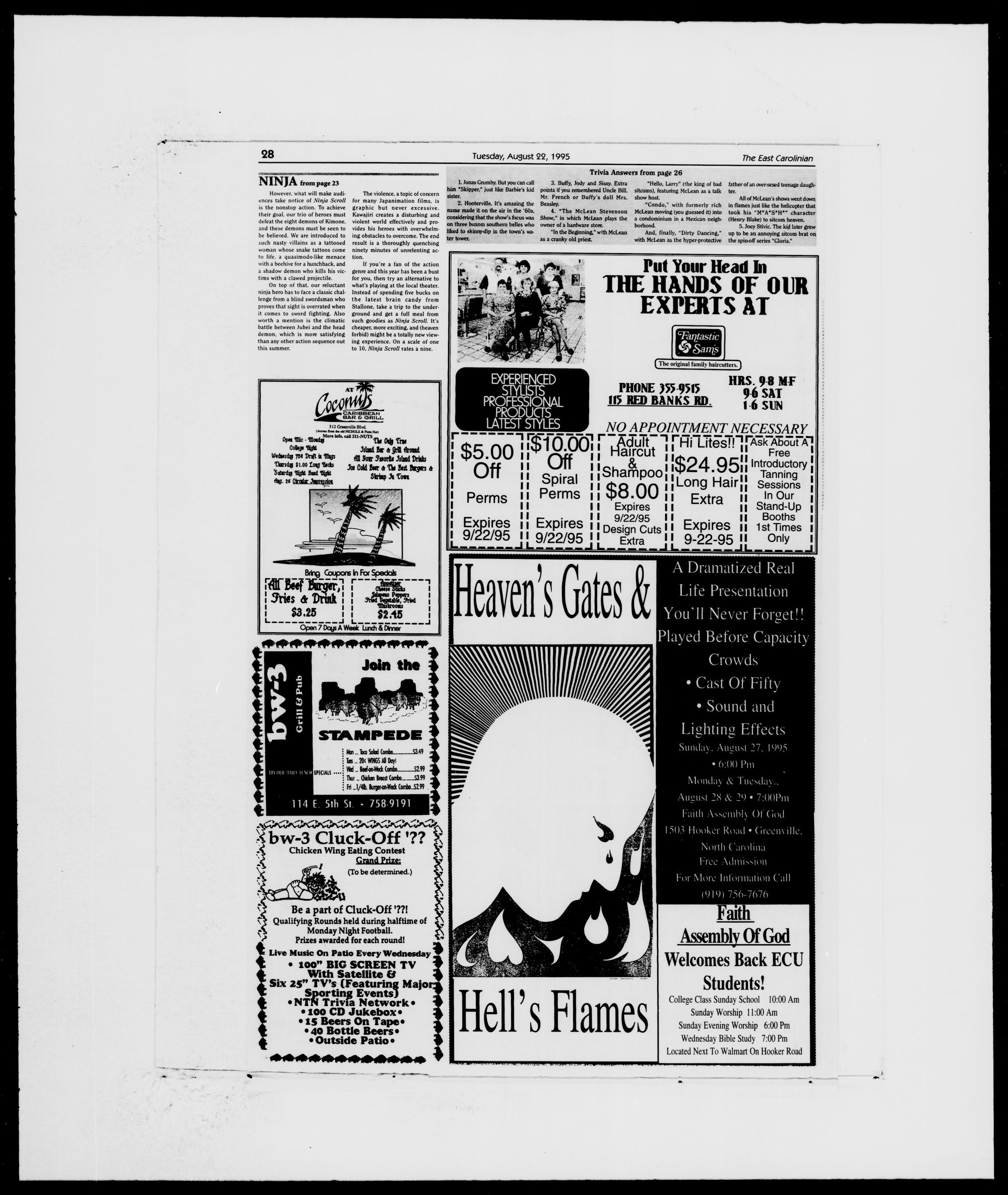 matchups. (Bottom), ECU student Jennifer Hart swelters in