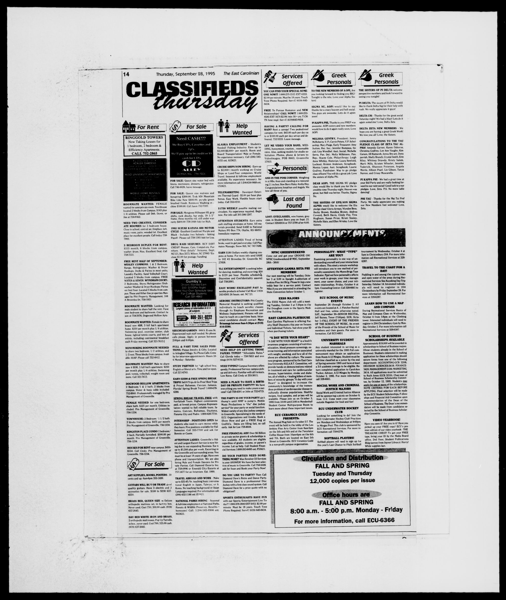 Bldg (across from Joyner Library). Hurry!