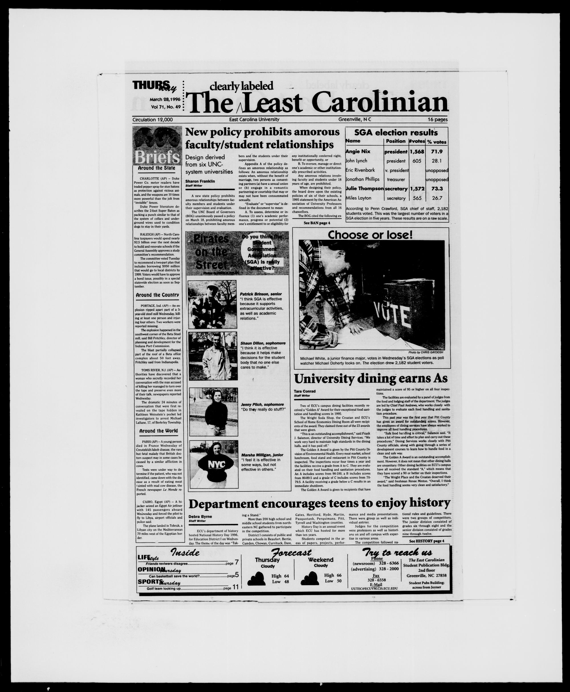 The East Carolinian, March 28, 1996