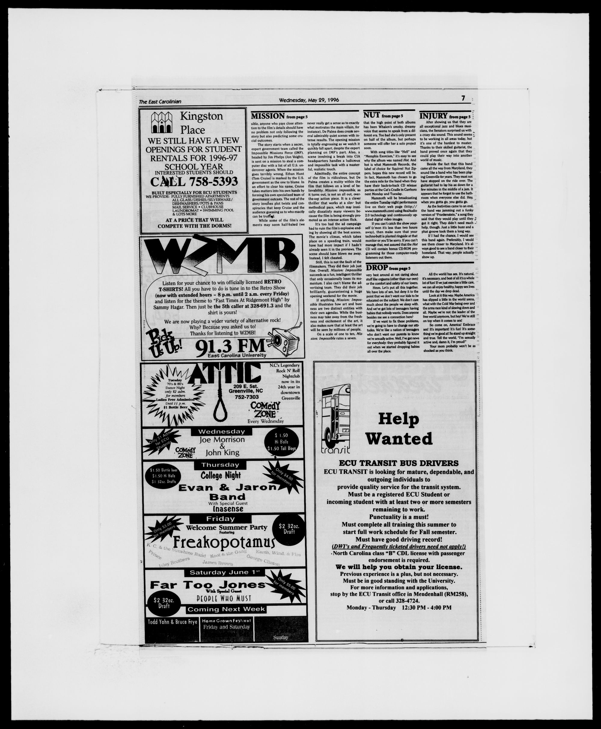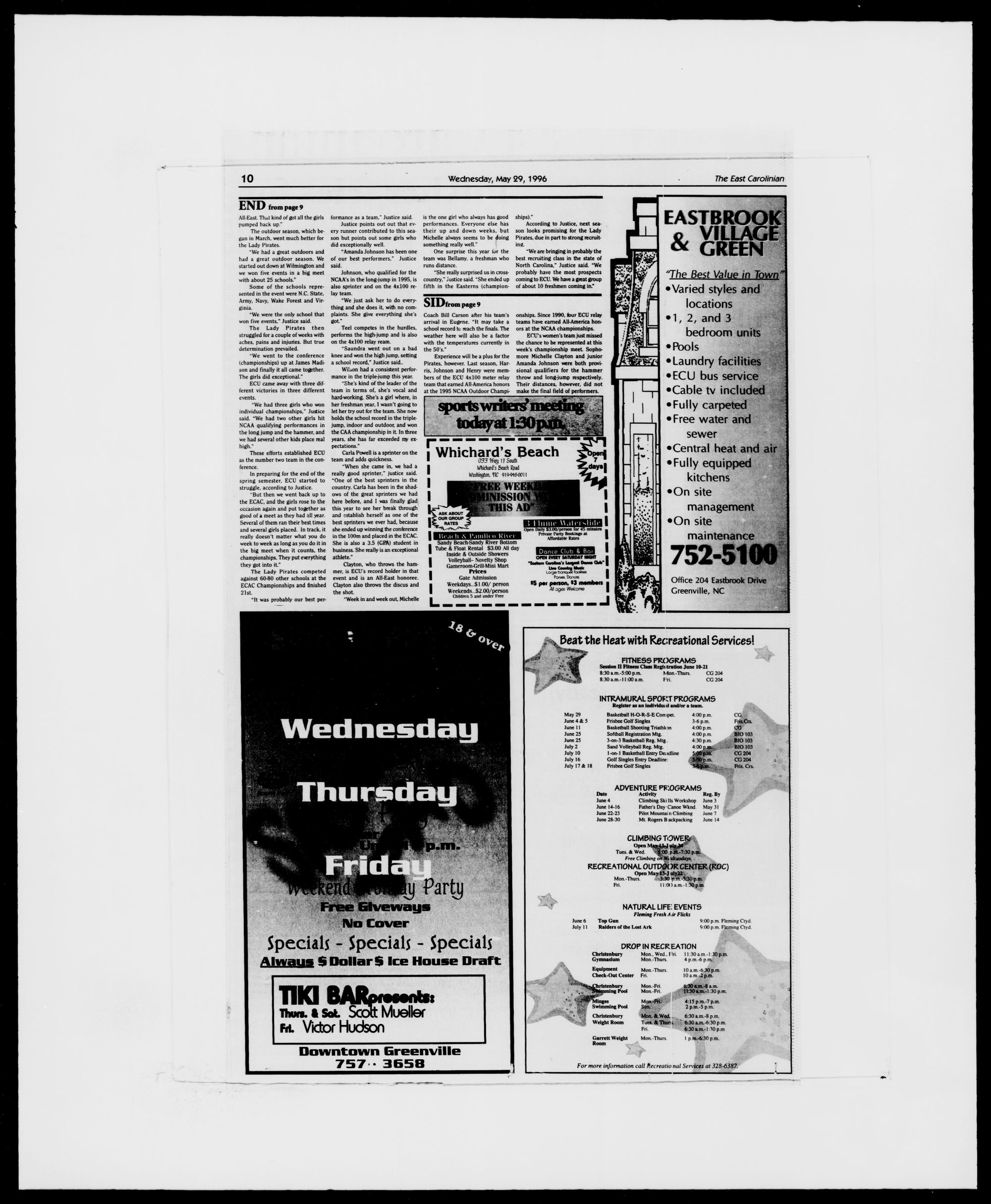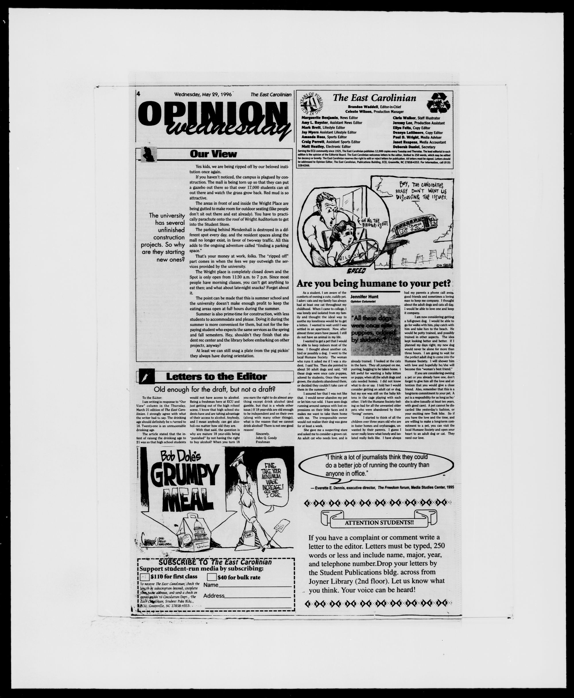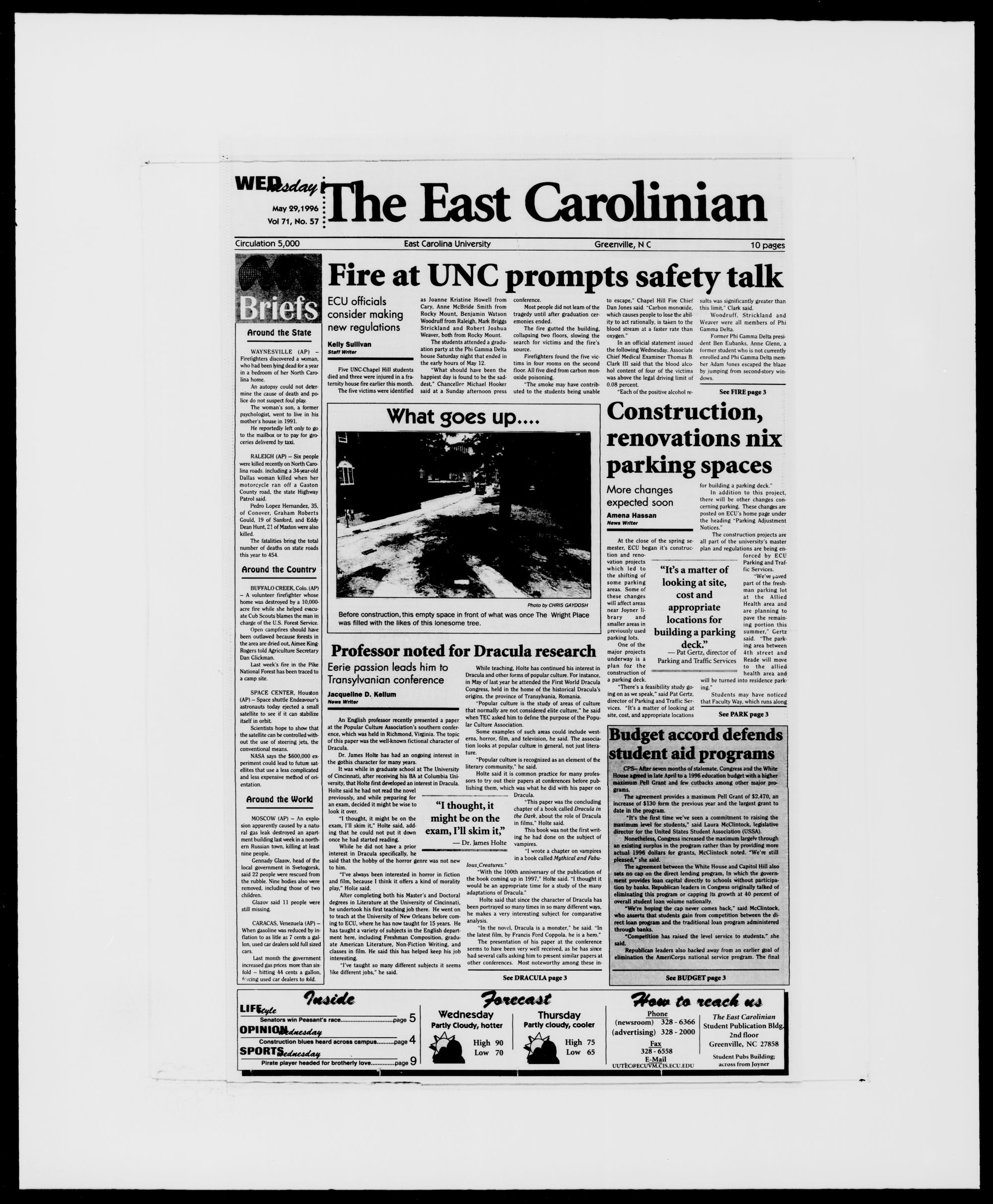 East Carolina's student-run campus newspaper was first published in 1923 as the East Carolina Teachers College News (1923-1925). It has been re-named as The Teco Echo (1925, 1926-1952), East Carolinian (1952-1969), Fountainhead (1969-1979), and The East Carolinian (1969, 1979-present). It includes local, state, national, and international stories with a focus on campus events.