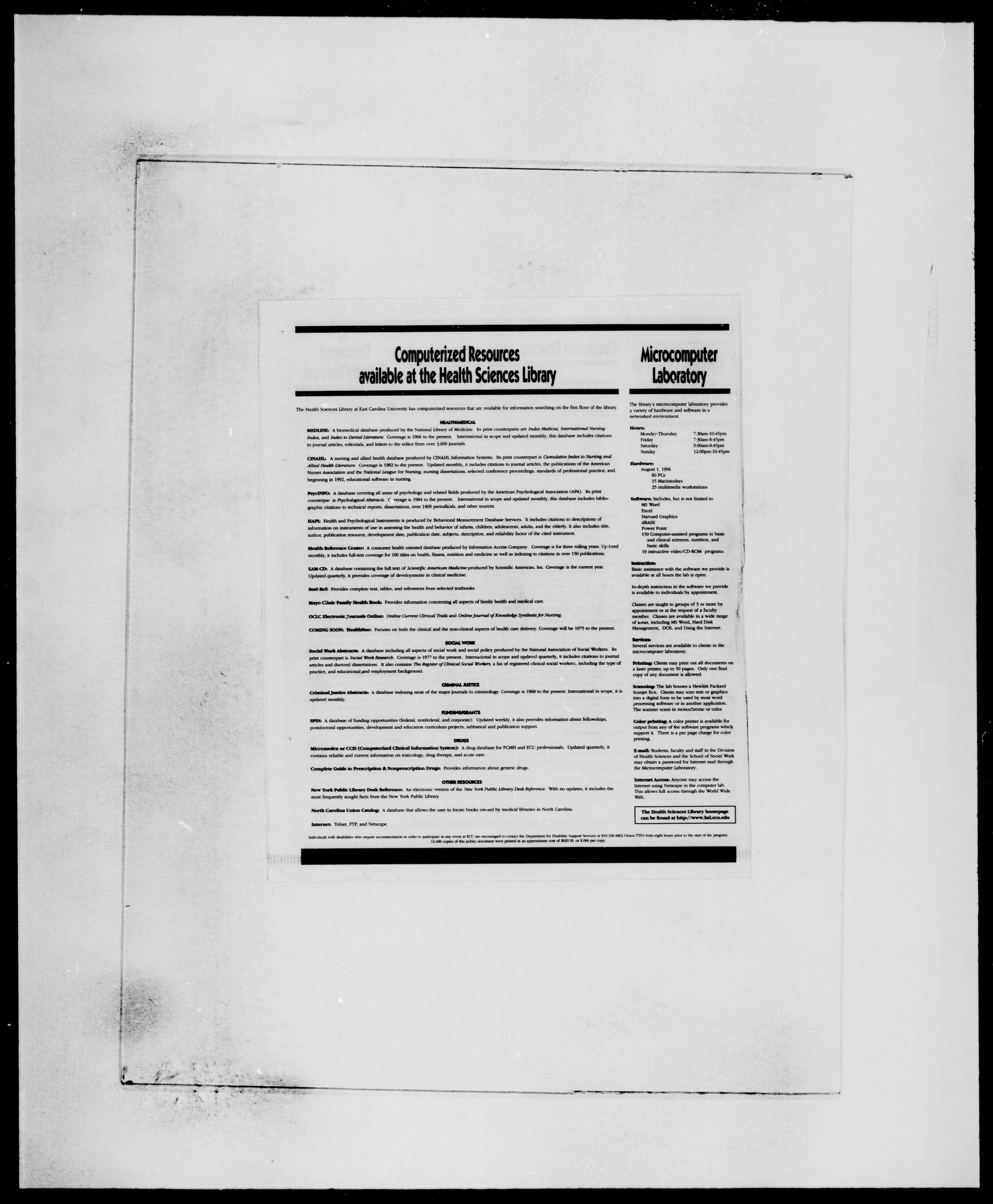 articles and doctoral dissertations. It also contains The Register of Clinical Social Workers, a list of registered clinical social worker including the type of