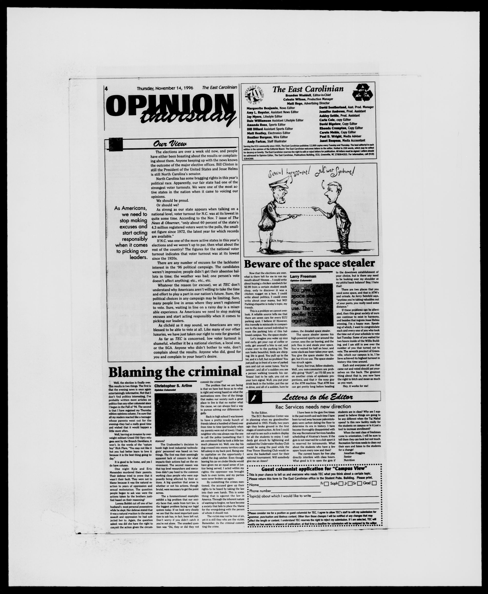Public access is provided to these resources to preserve the historical record. The content represents the opinions and actions of their creators and the culture in which they were produced. Therefore, some materials may contain language and imagery that is outdated, offensive and/or harmful. The content does not reflect the opinions, values, or beliefs of ECU Libraries.