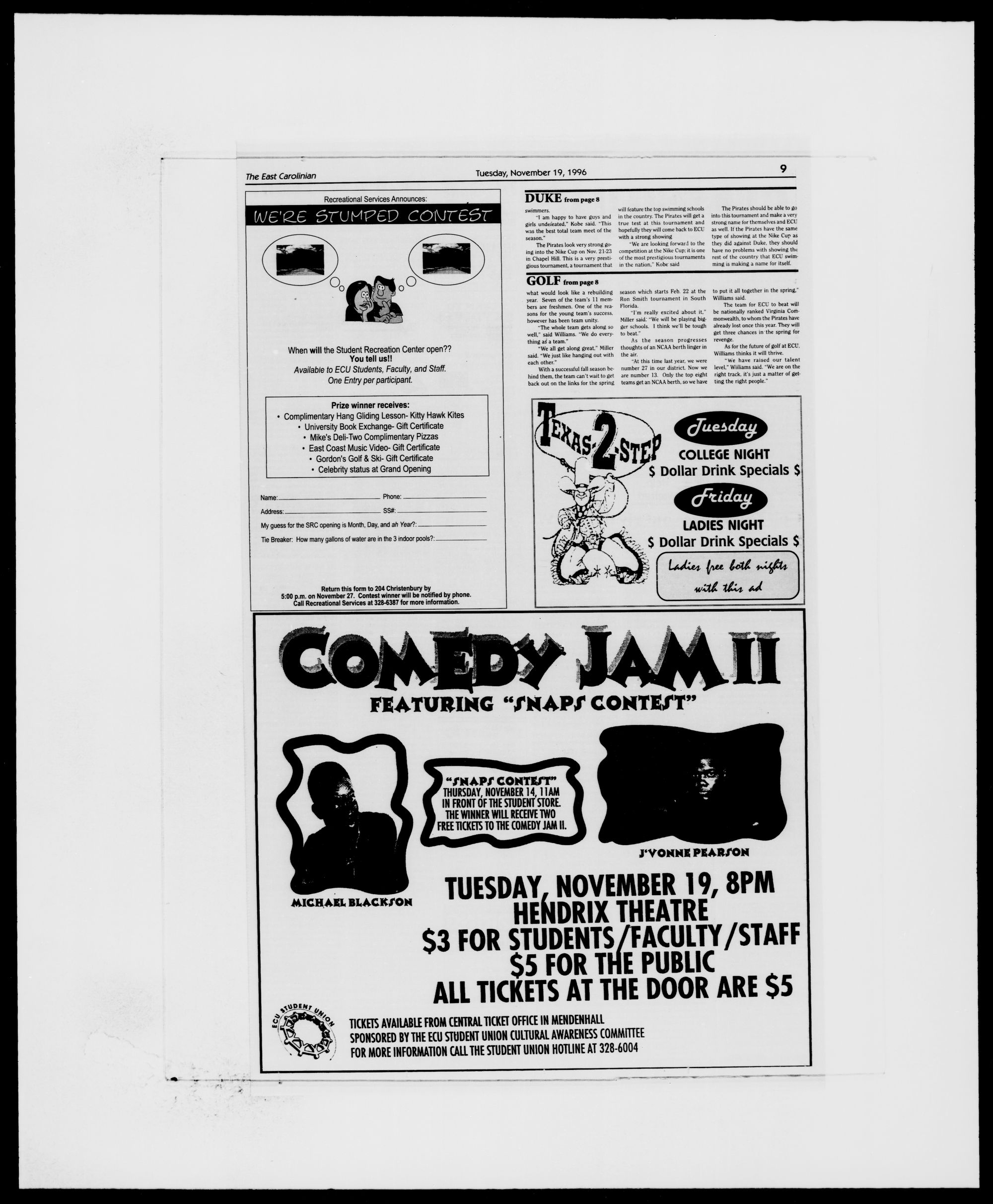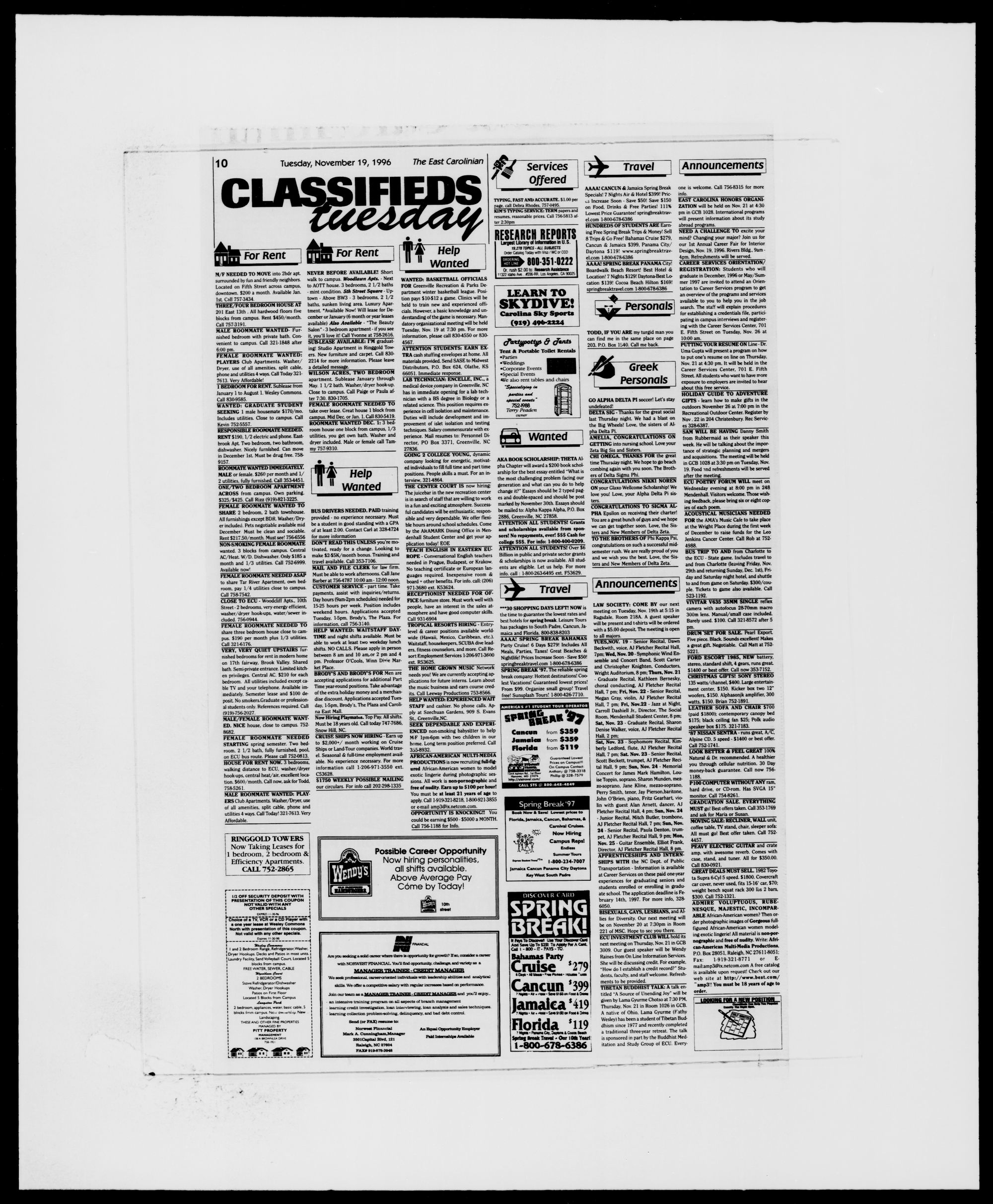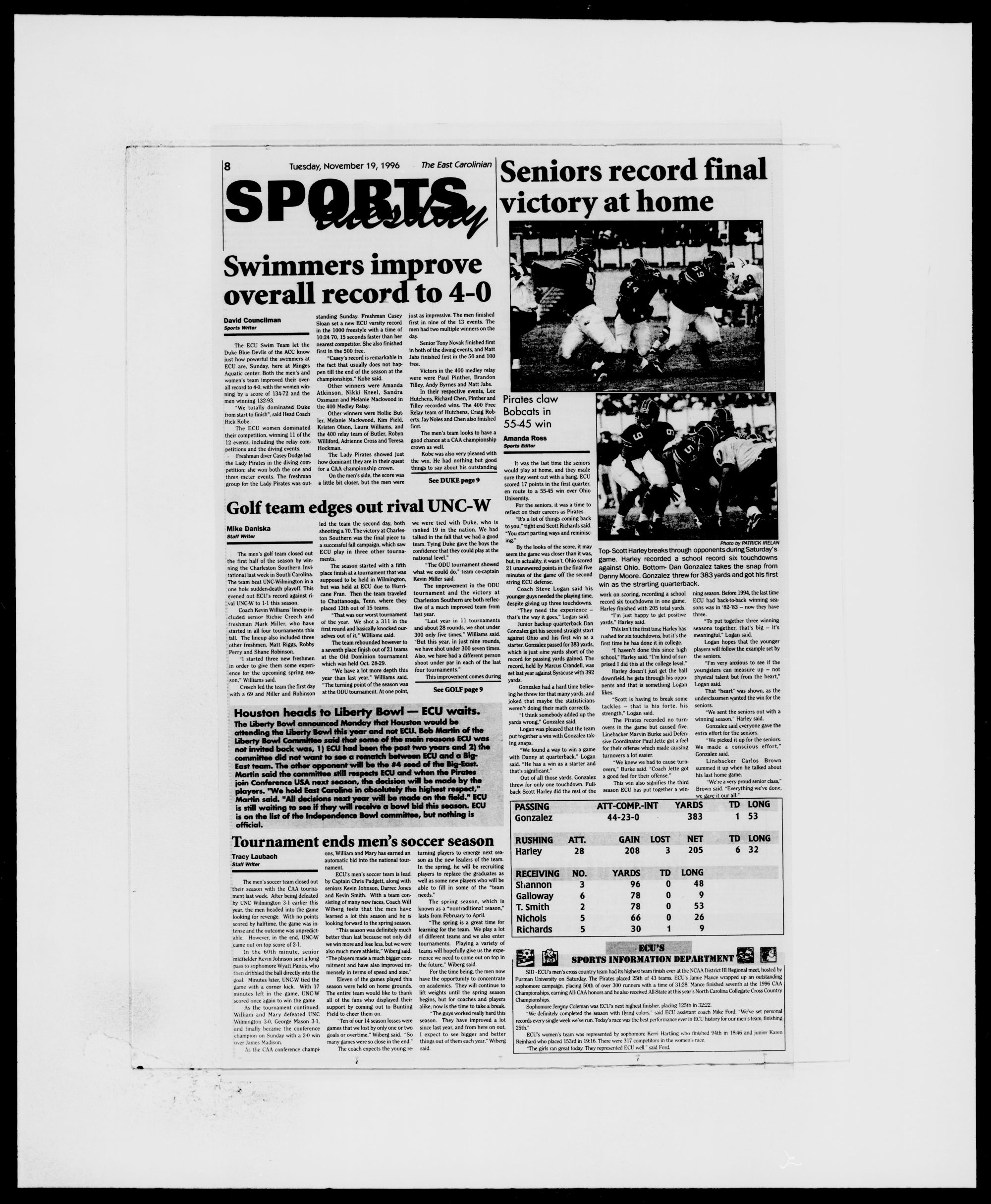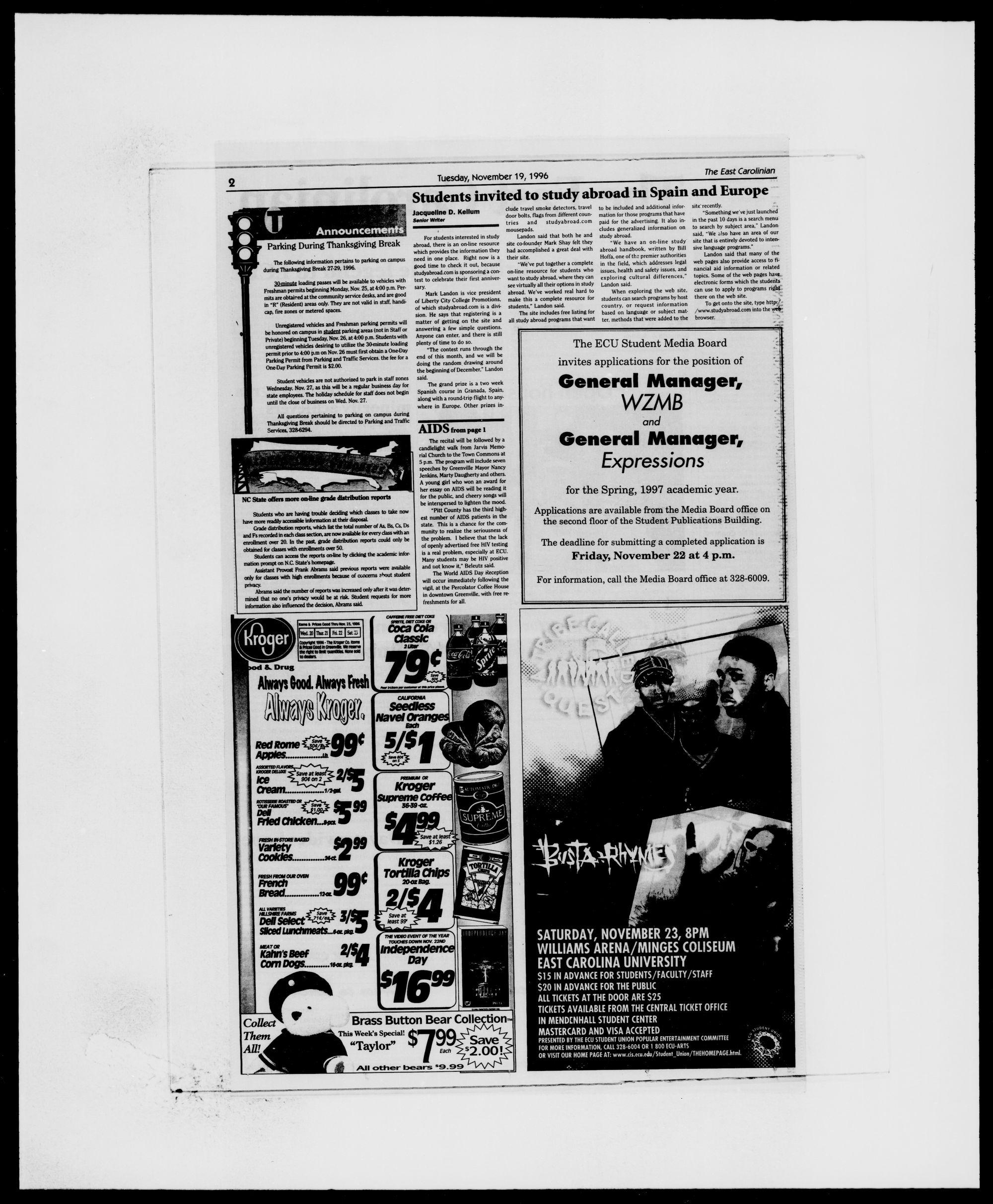 East Carolina's student-run campus newspaper was first published in 1923 as the East Carolina Teachers College News (1923-1925). It has been re-named as The Teco Echo (1925, 1926-1952), East Carolinian (1952-1969), Fountainhead (1969-1979), and The East Carolinian (1969, 1979-present). It includes local, state, national, and international stories with a focus on campus events.