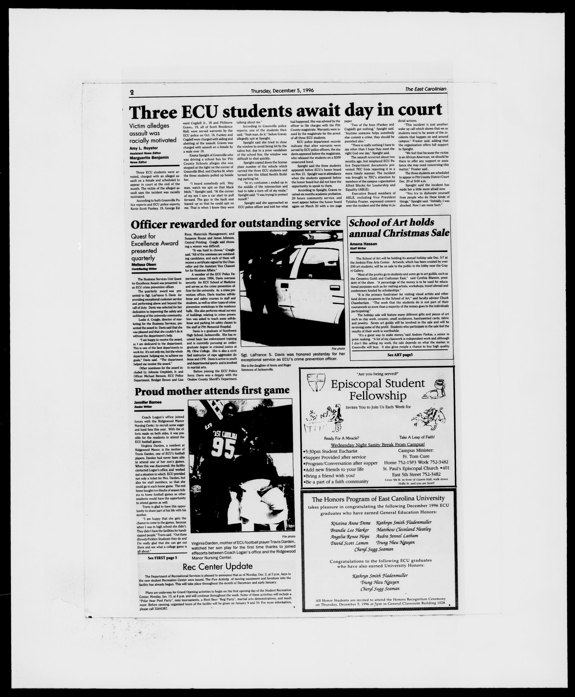 Three ECU students were ar-