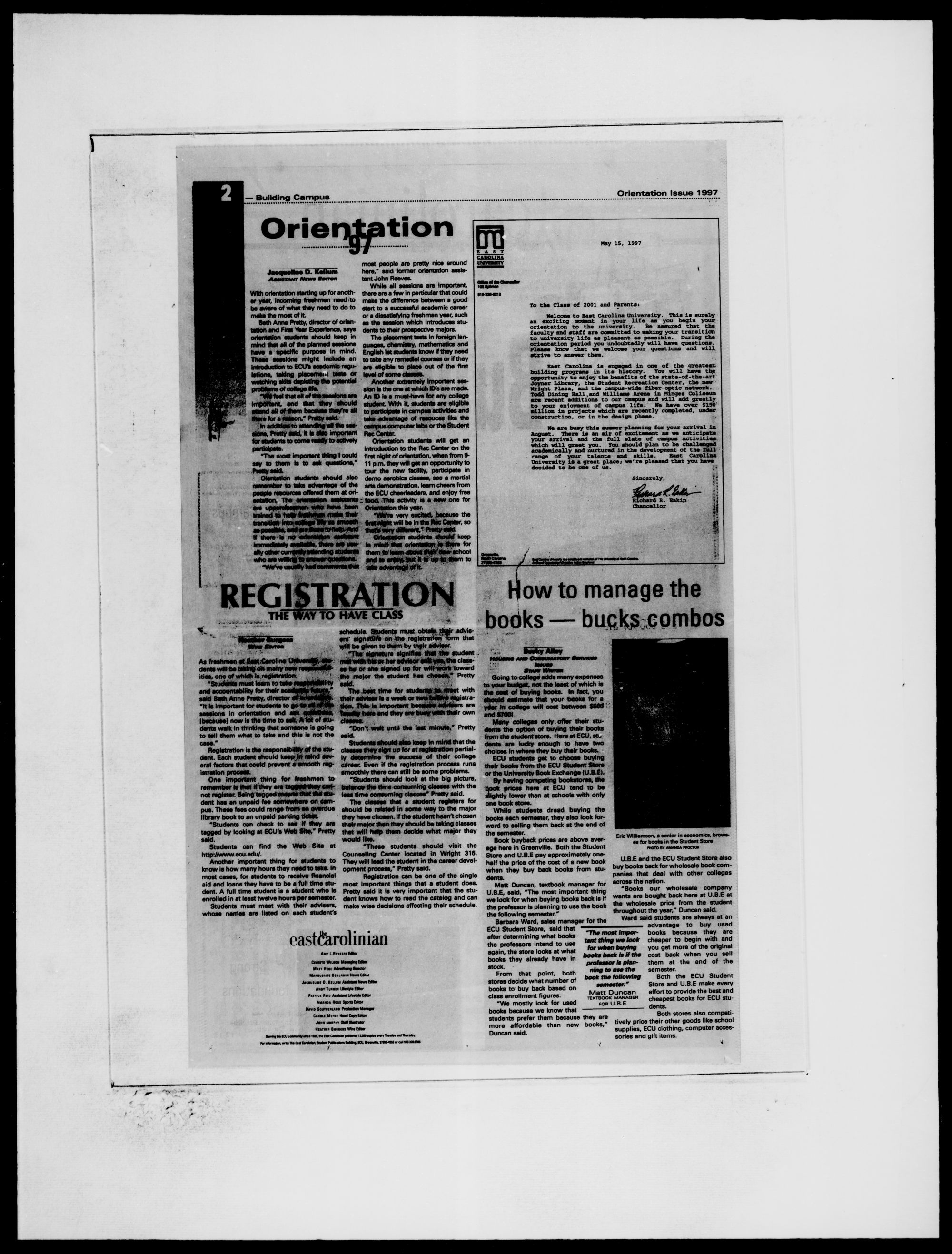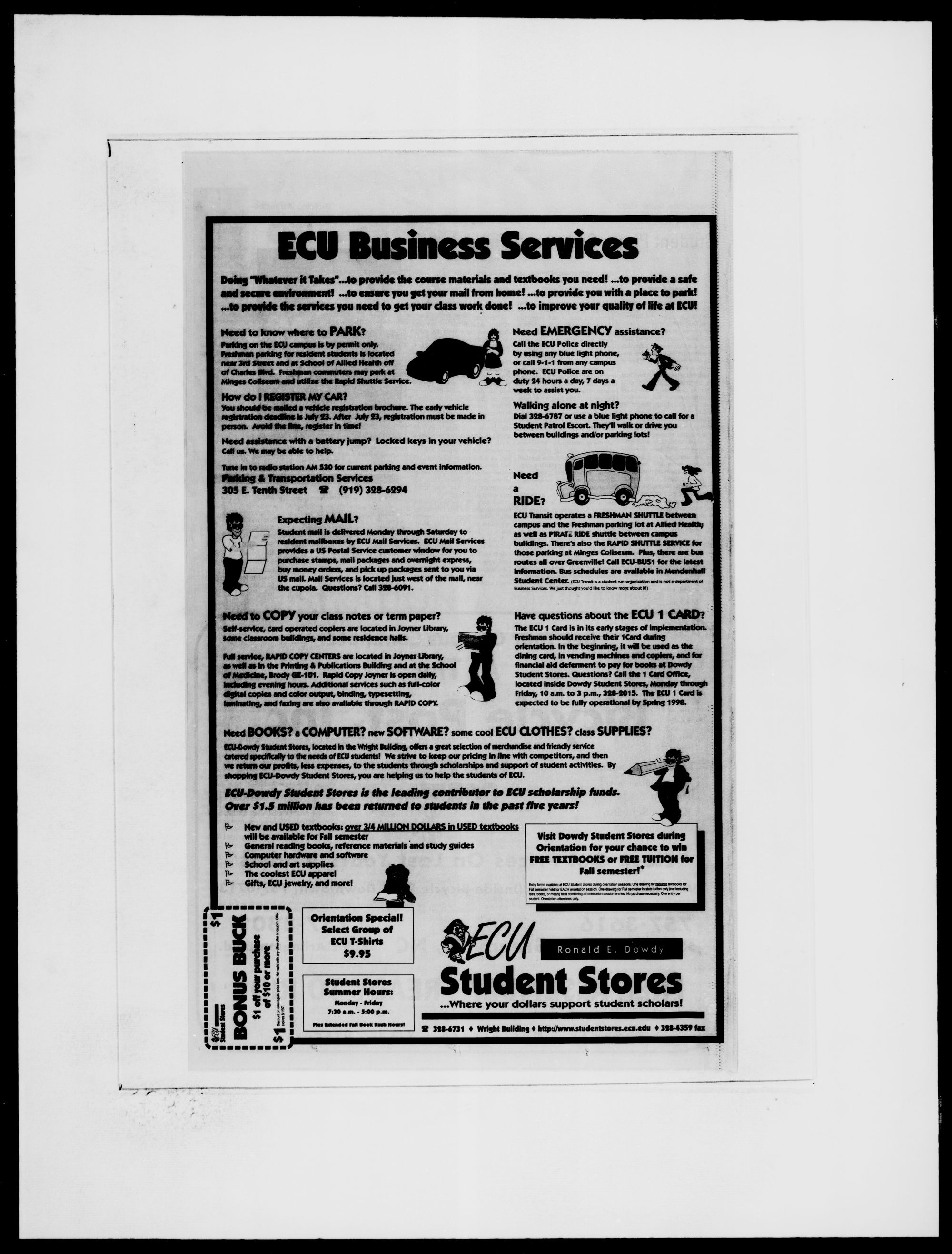 Entry lorms available at ECU Student Stores dunng orientation sessions. One drawing torreojjiigfj textbooks tor