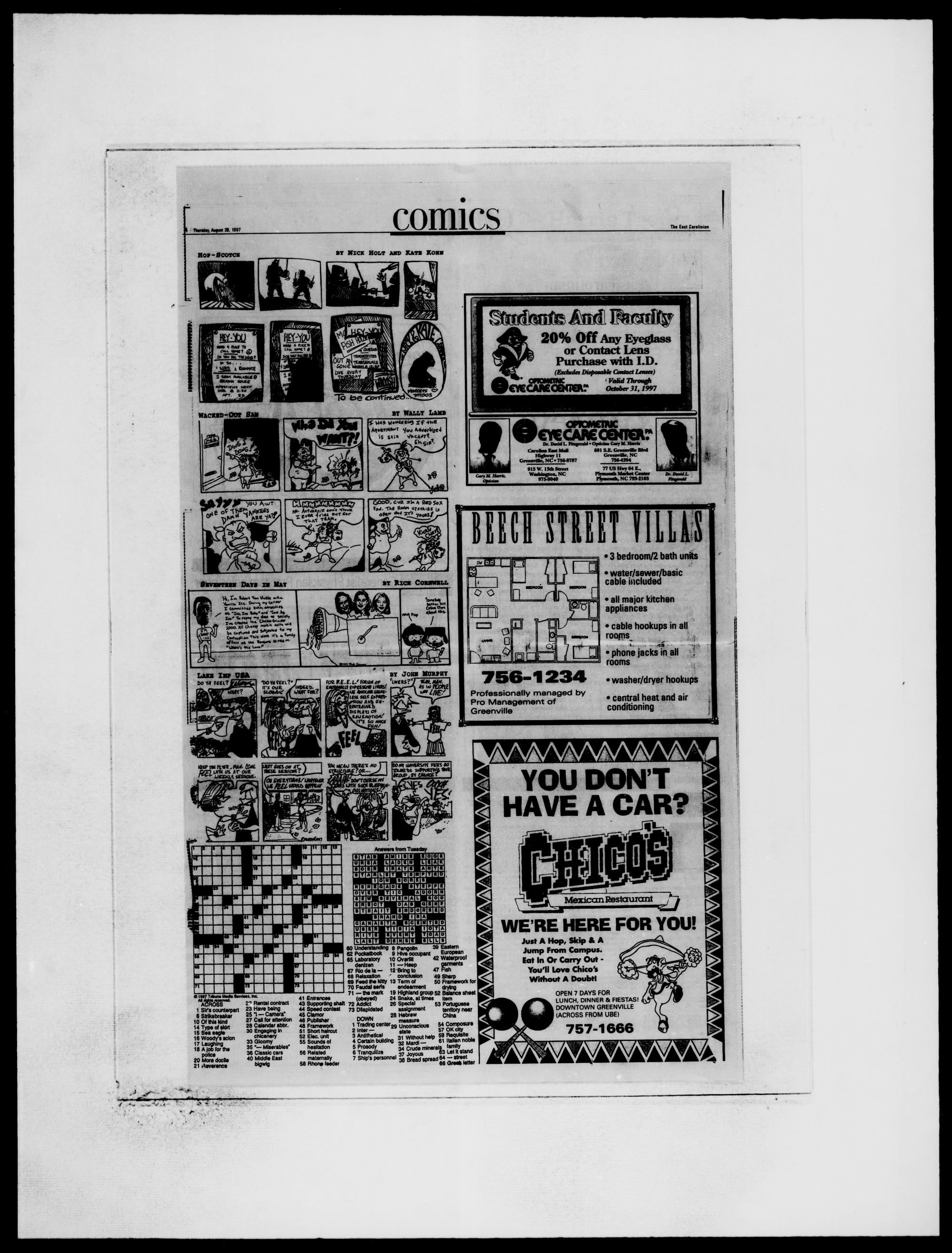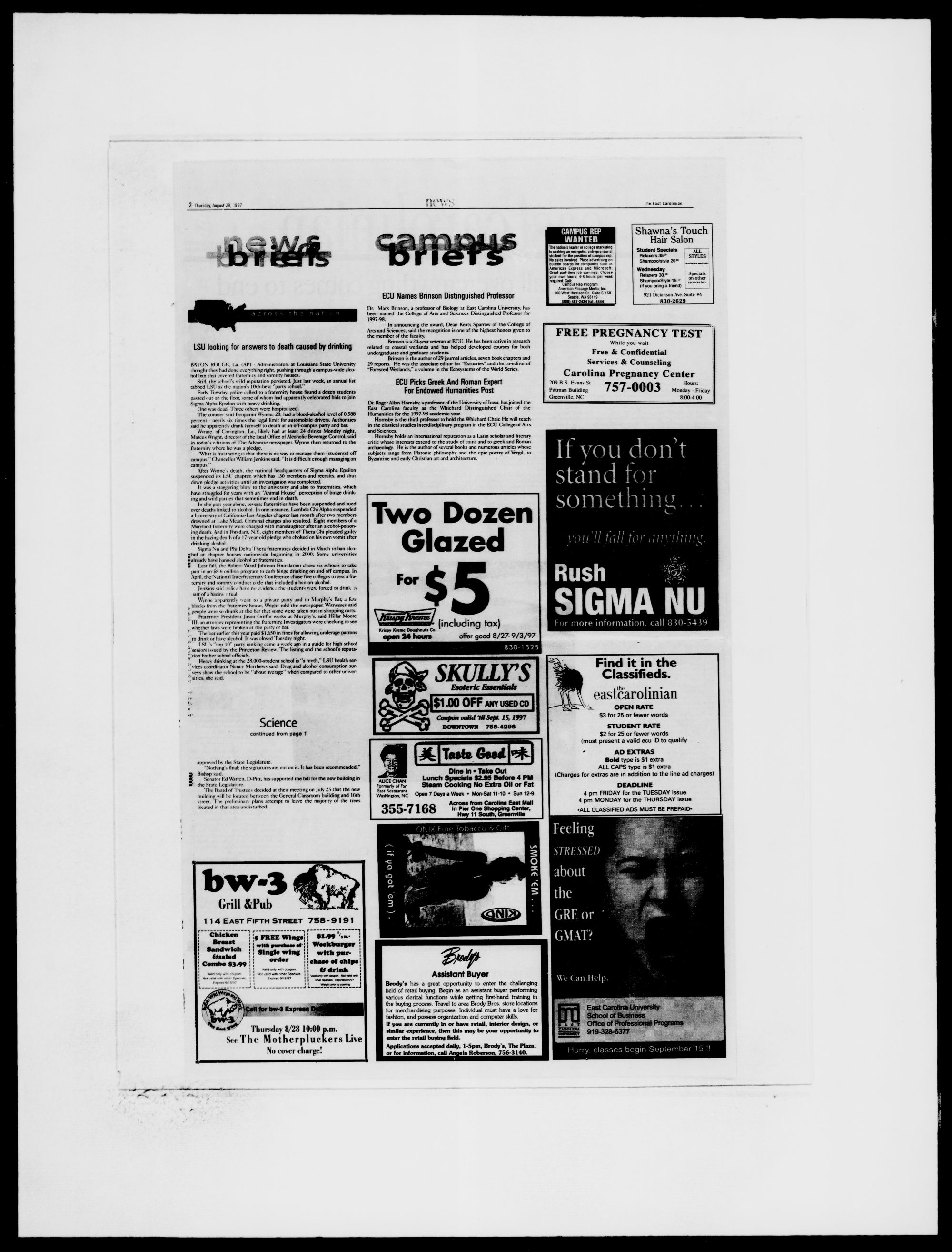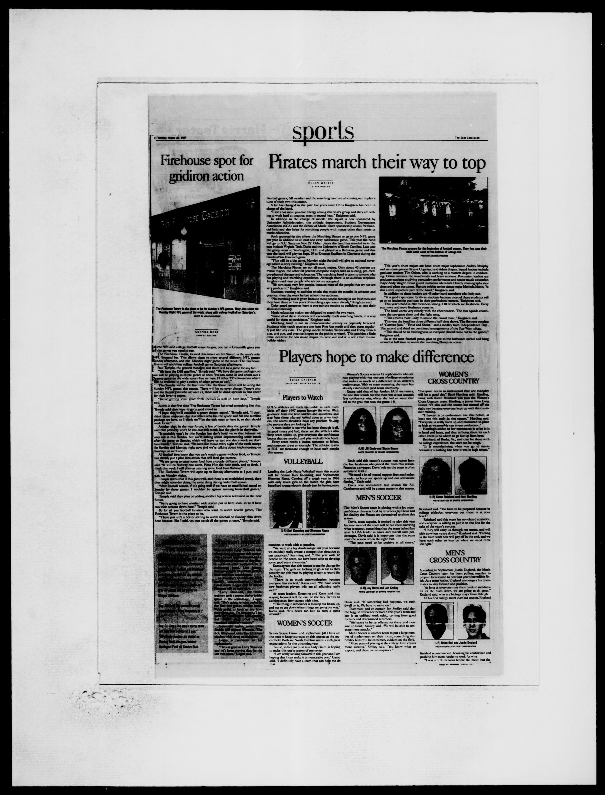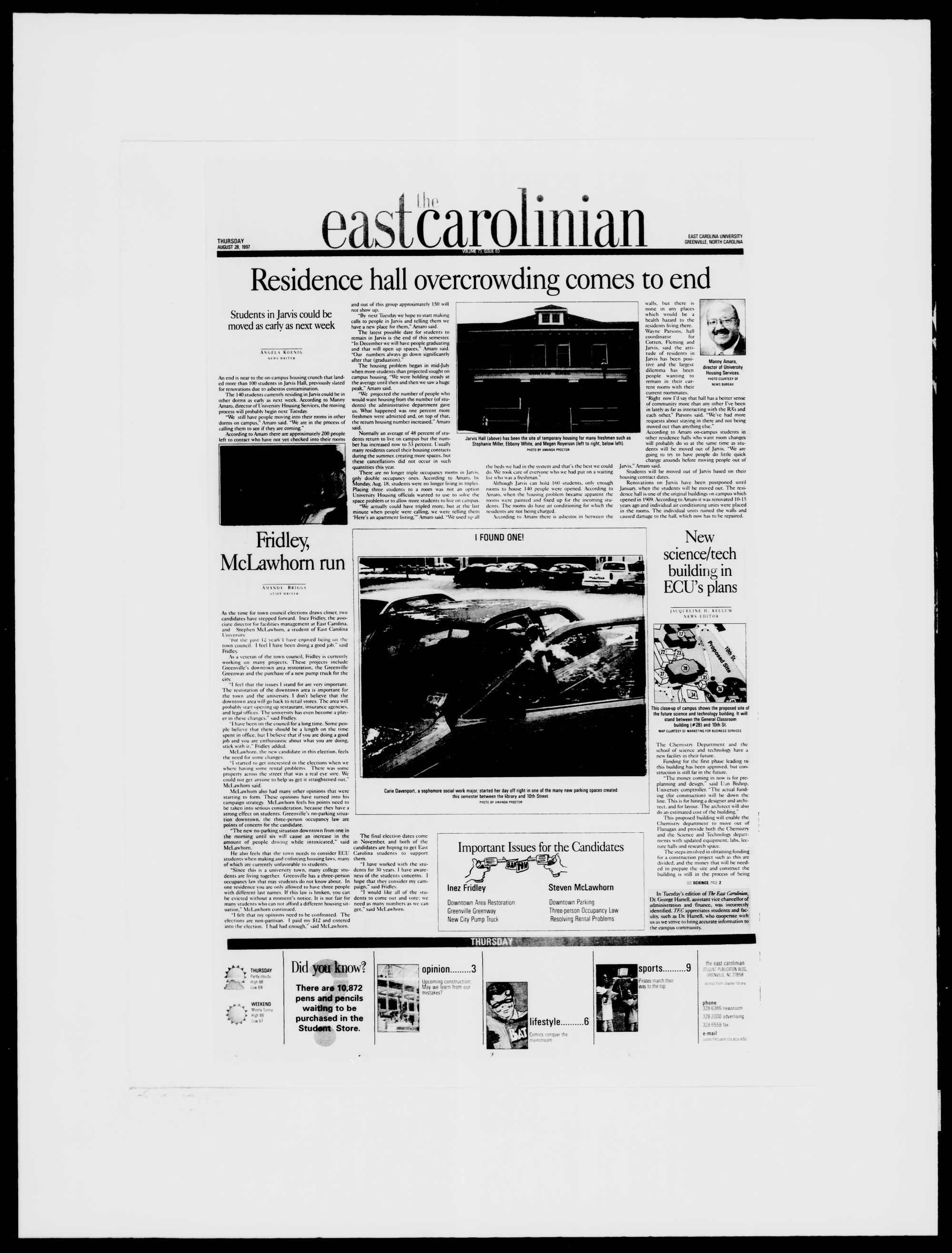 East Carolina's student-run campus newspaper was first published in 1923 as the East Carolina Teachers College News (1923-1925). It has been re-named as The Teco Echo (1925, 1926-1952), East Carolinian (1952-1969), Fountainhead (1969-1979), and The East Carolinian (1969, 1979-present). It includes local, state, national, and international stories with a focus on campus events.