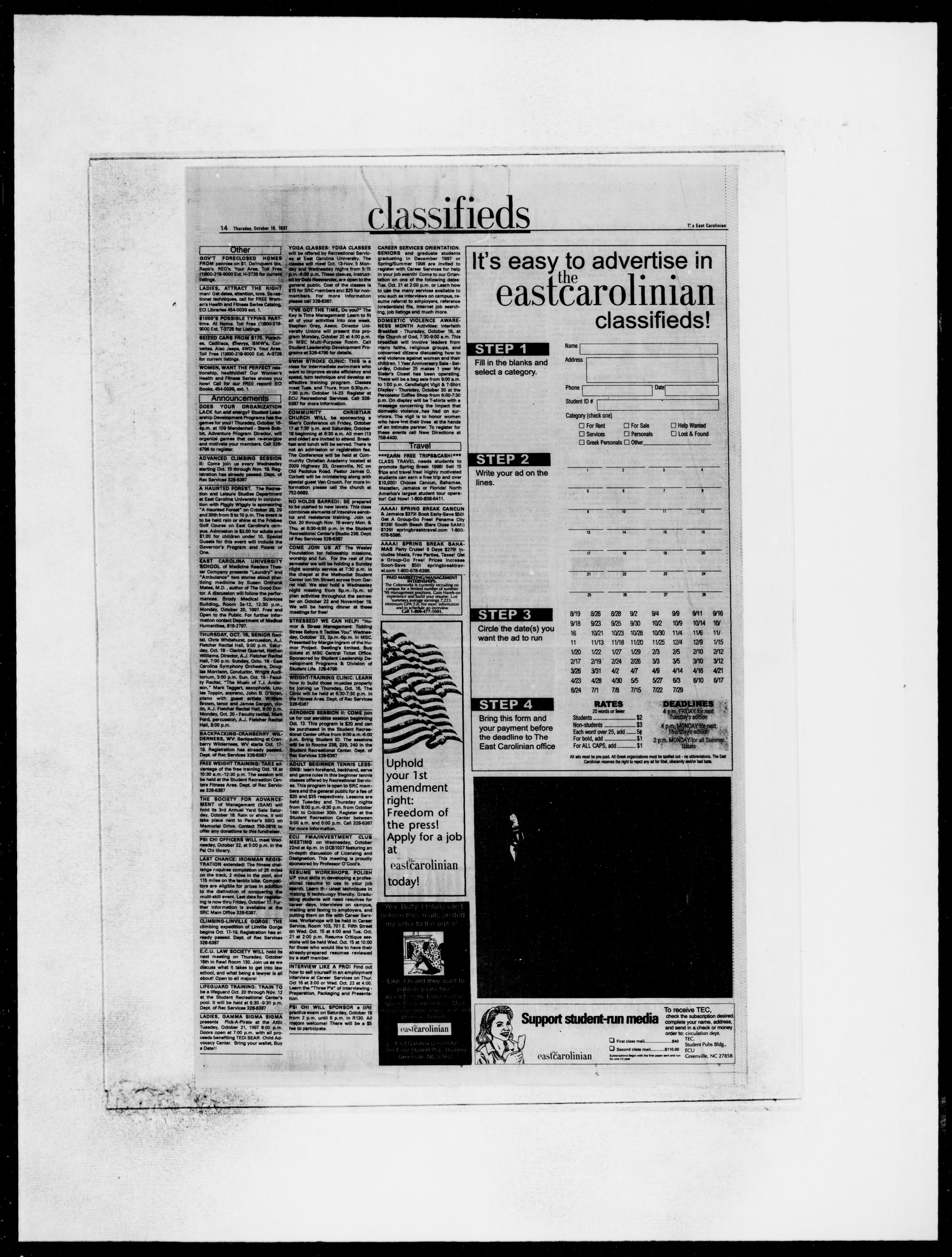 Ail ads must be pre-pad. All Greek organizations must be spelled out - no abbreviations. The East