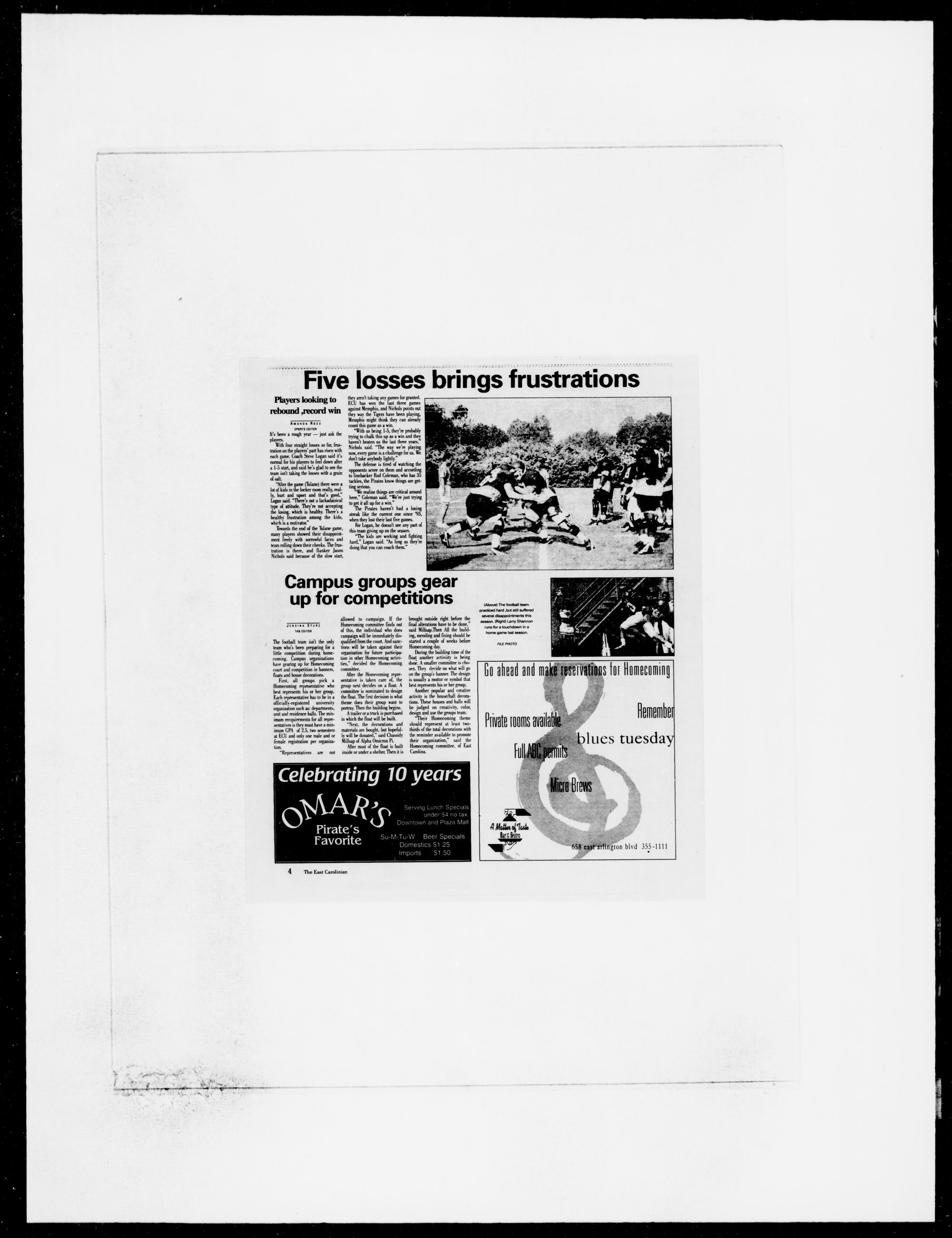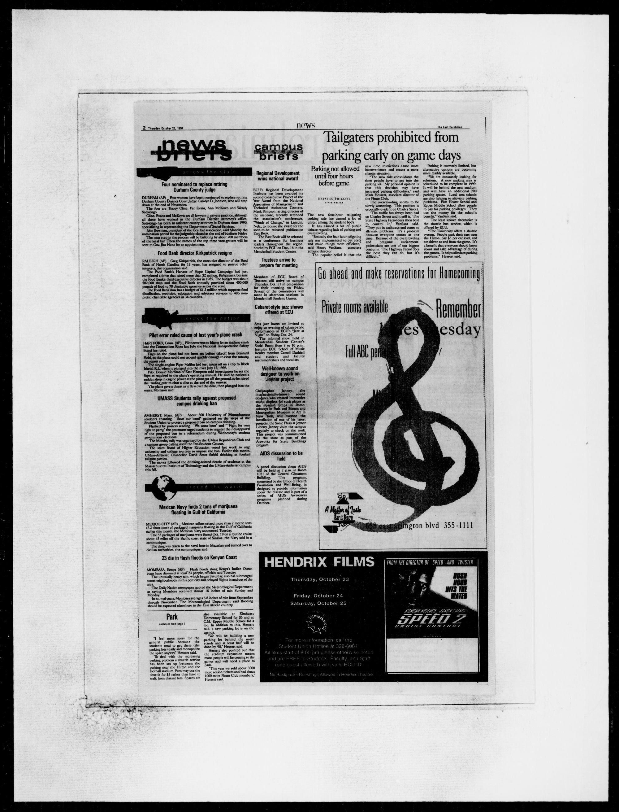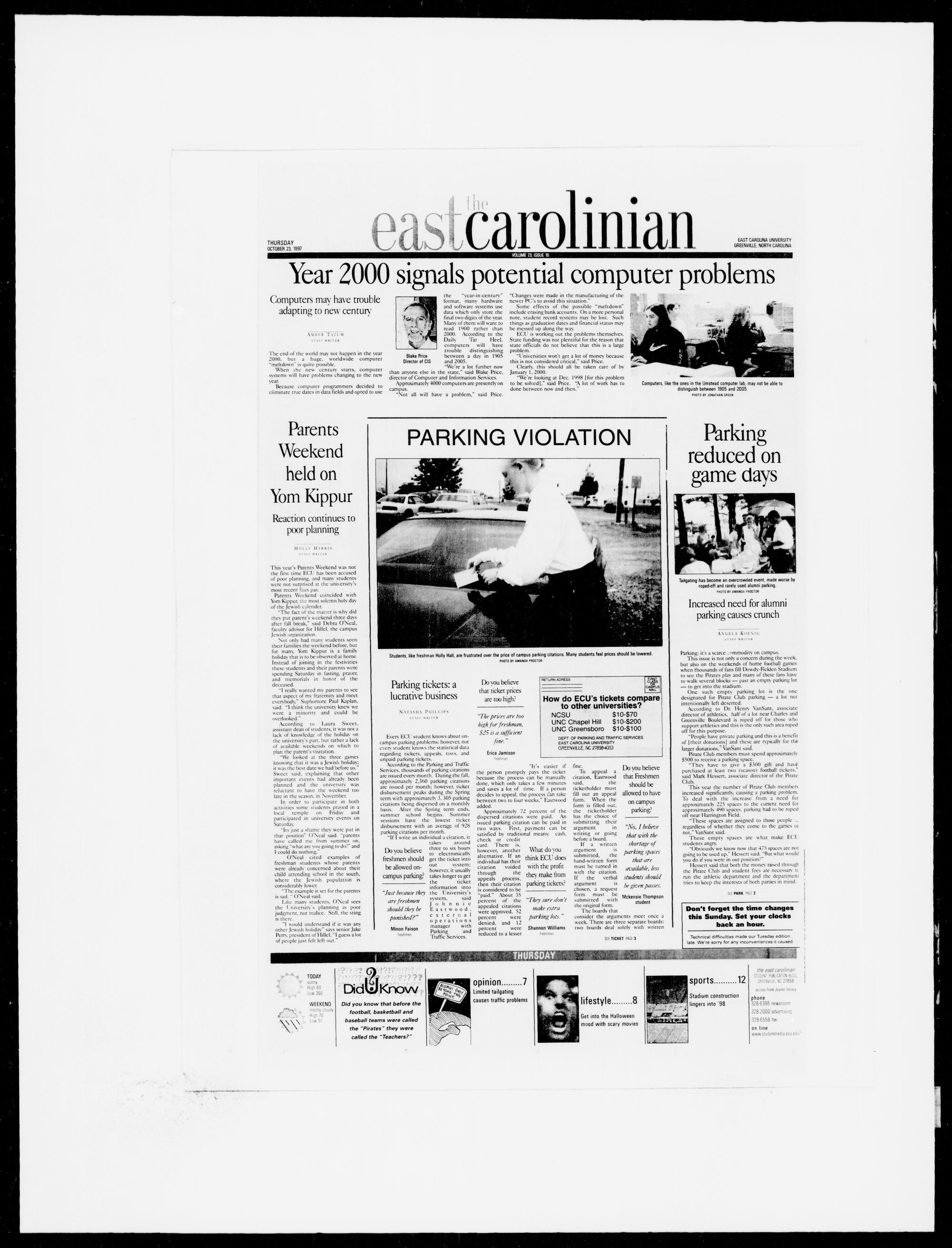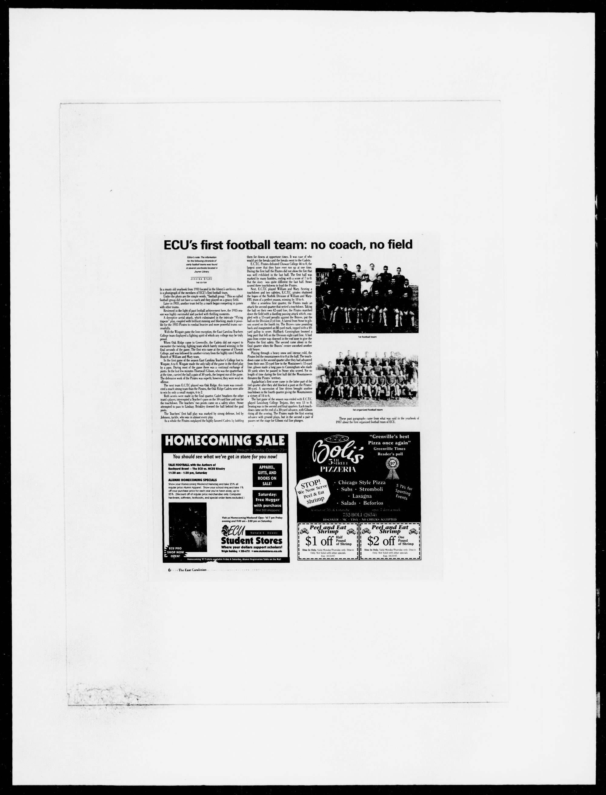 East Carolina's student-run campus newspaper was first published in 1923 as the East Carolina Teachers College News (1923-1925). It has been re-named as The Teco Echo (1925, 1926-1952), East Carolinian (1952-1969), Fountainhead (1969-1979), and The East Carolinian (1969, 1979-present). It includes local, state, national, and international stories with a focus on campus events.