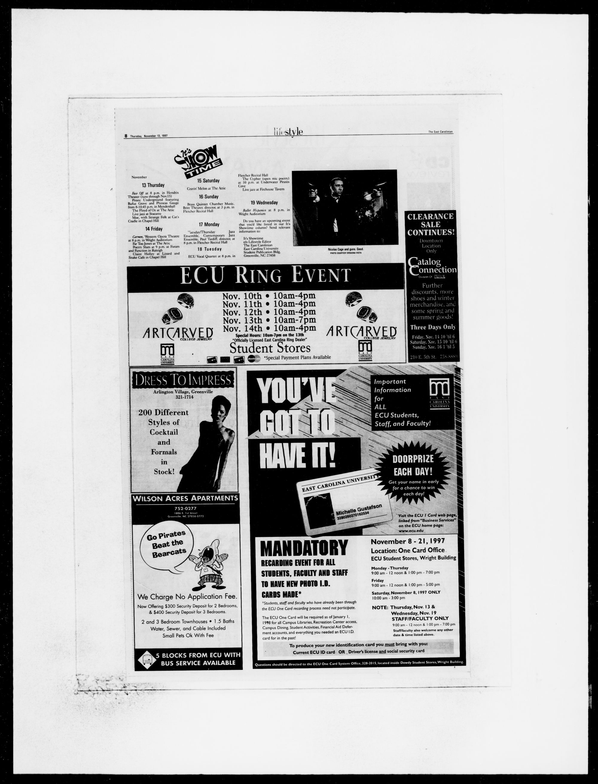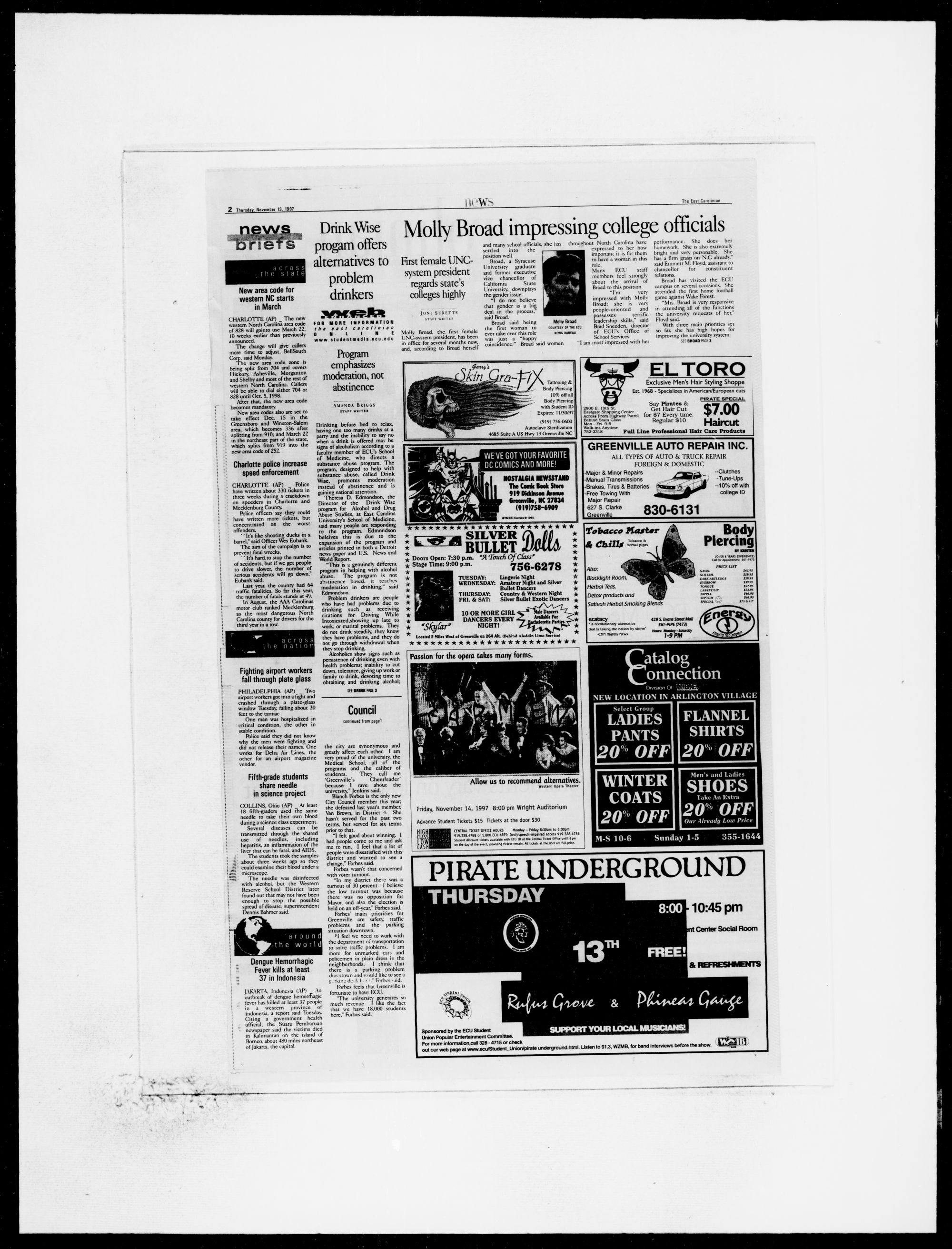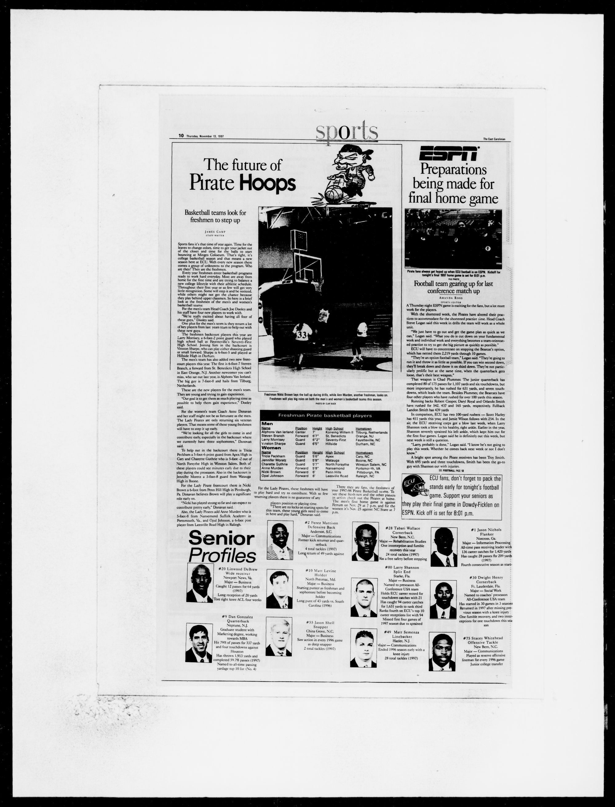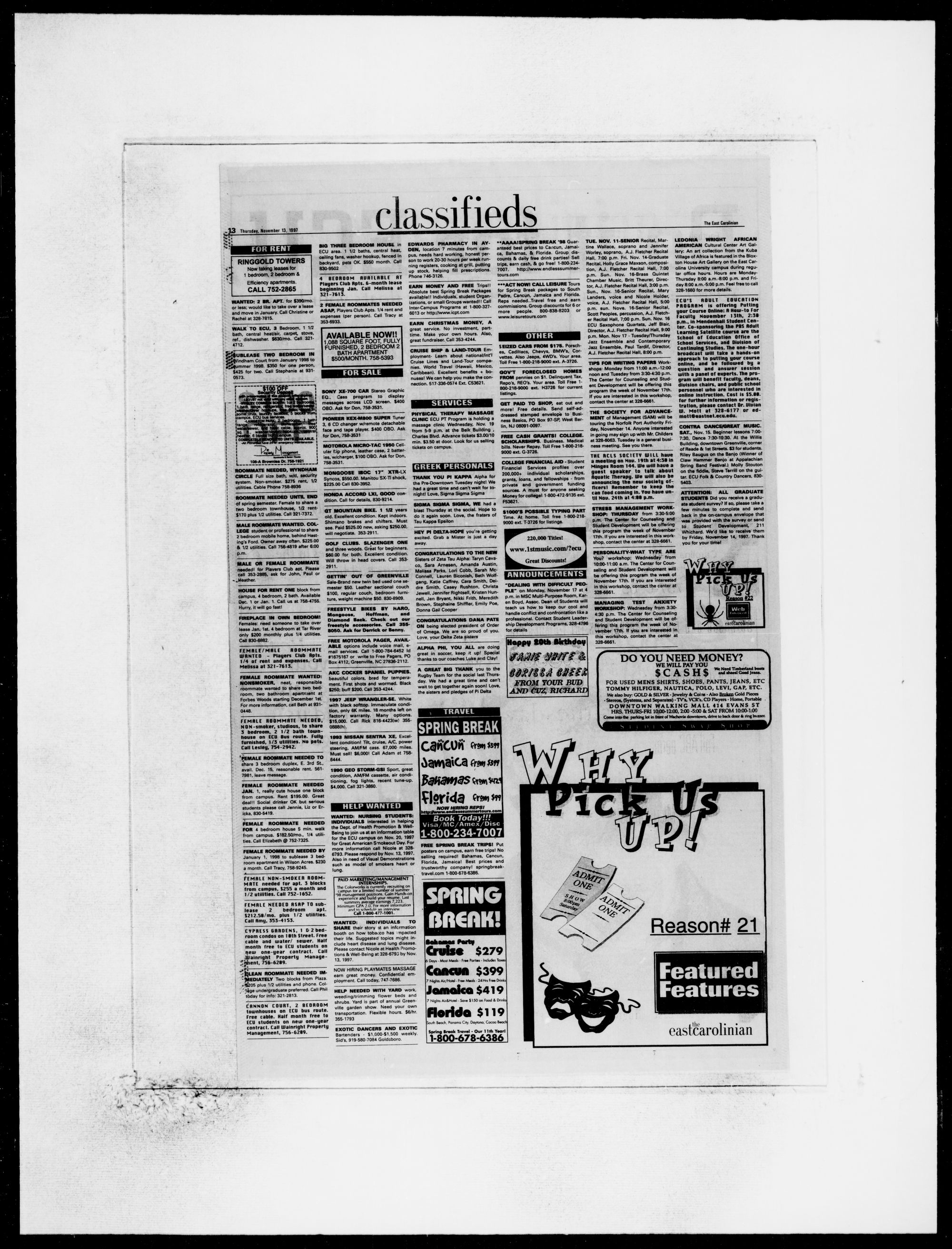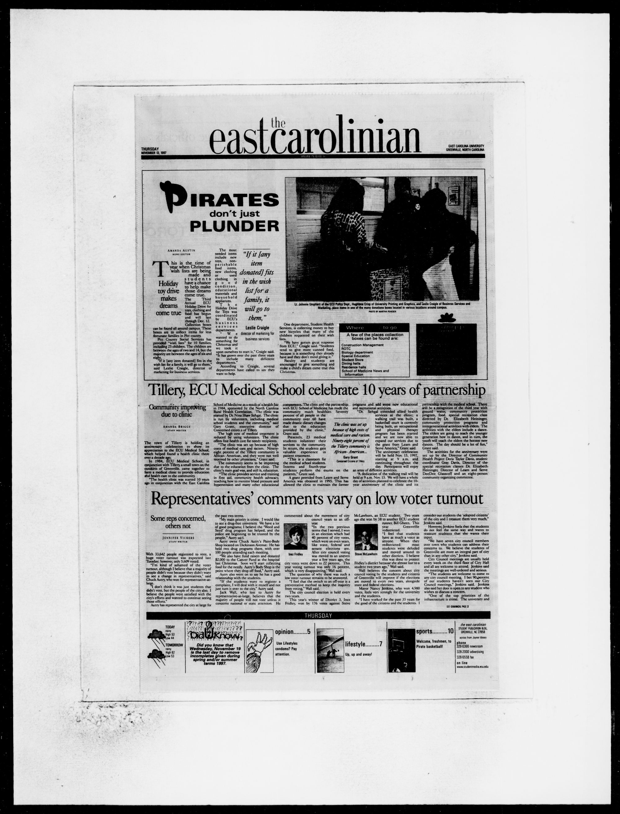 East Carolina's student-run campus newspaper was first published in 1923 as the East Carolina Teachers College News (1923-1925). It has been re-named as The Teco Echo (1925, 1926-1952), East Carolinian (1952-1969), Fountainhead (1969-1979), and The East Carolinian (1969, 1979-present). It includes local, state, national, and international stories with a focus on campus events.