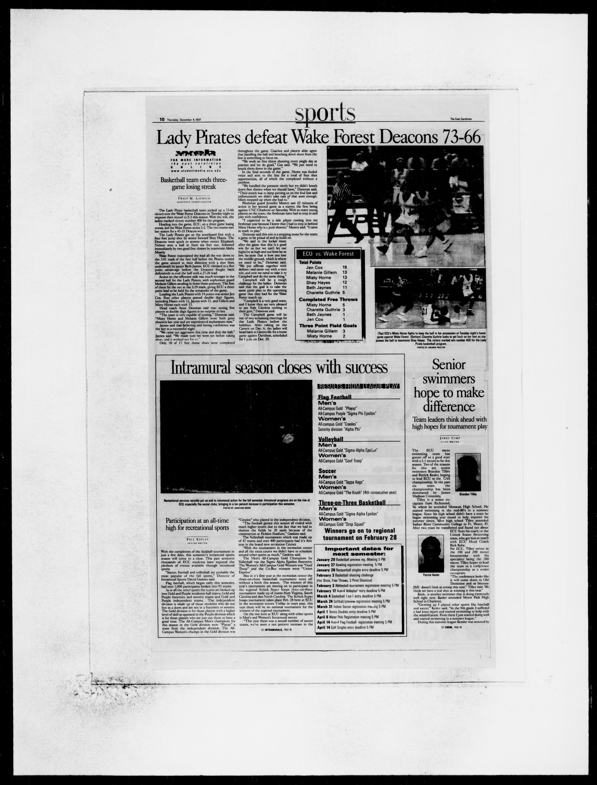 recreational club sports. "That's why the