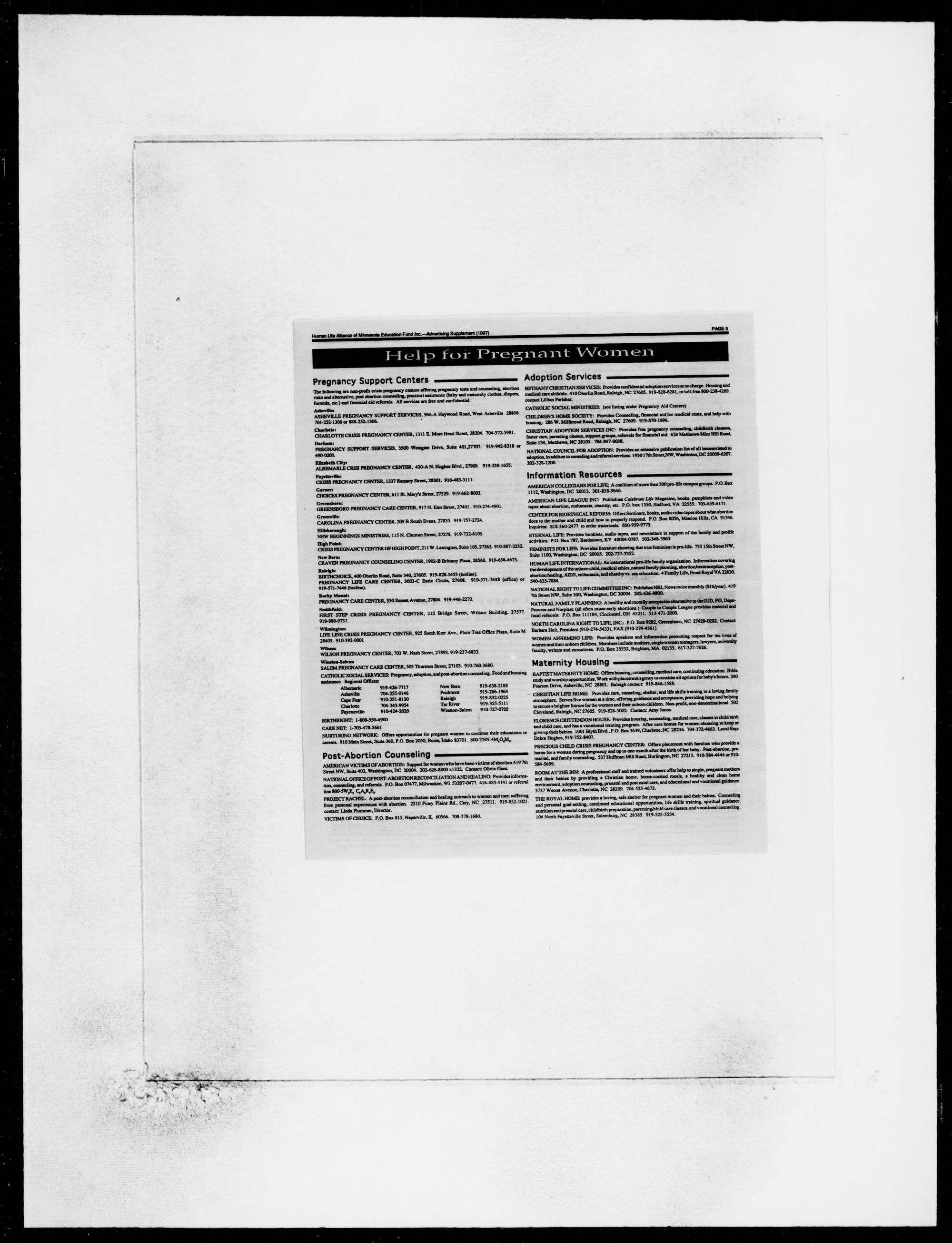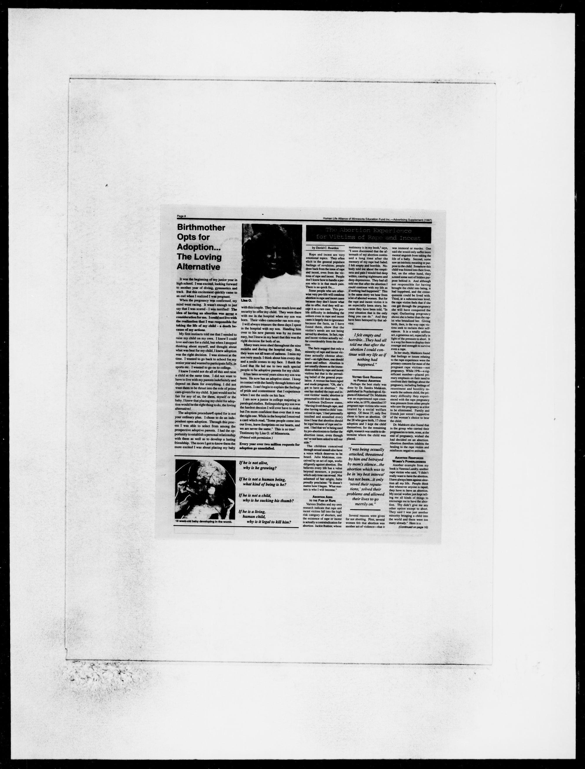 See pages 5 & 8 for alternatives to abortion!