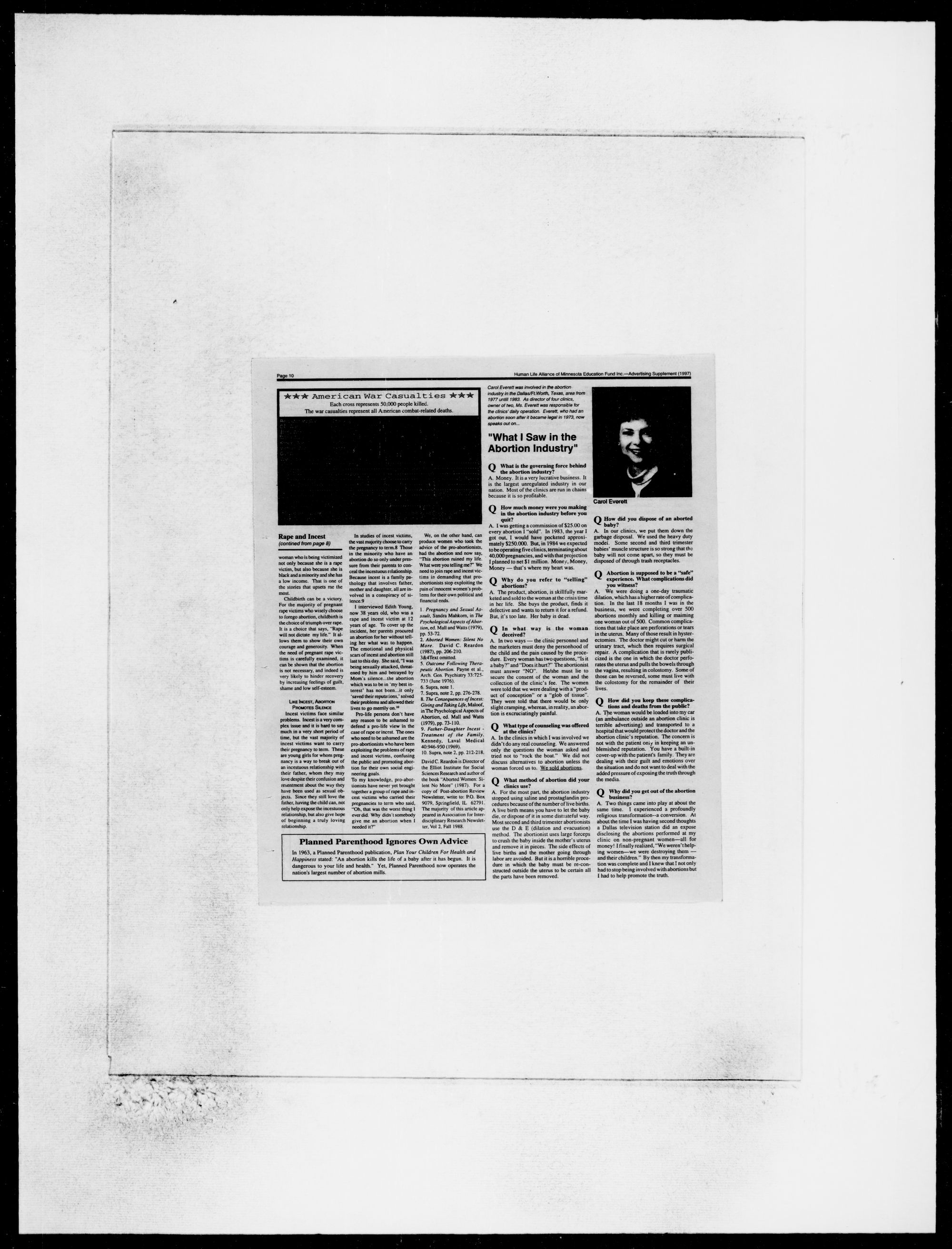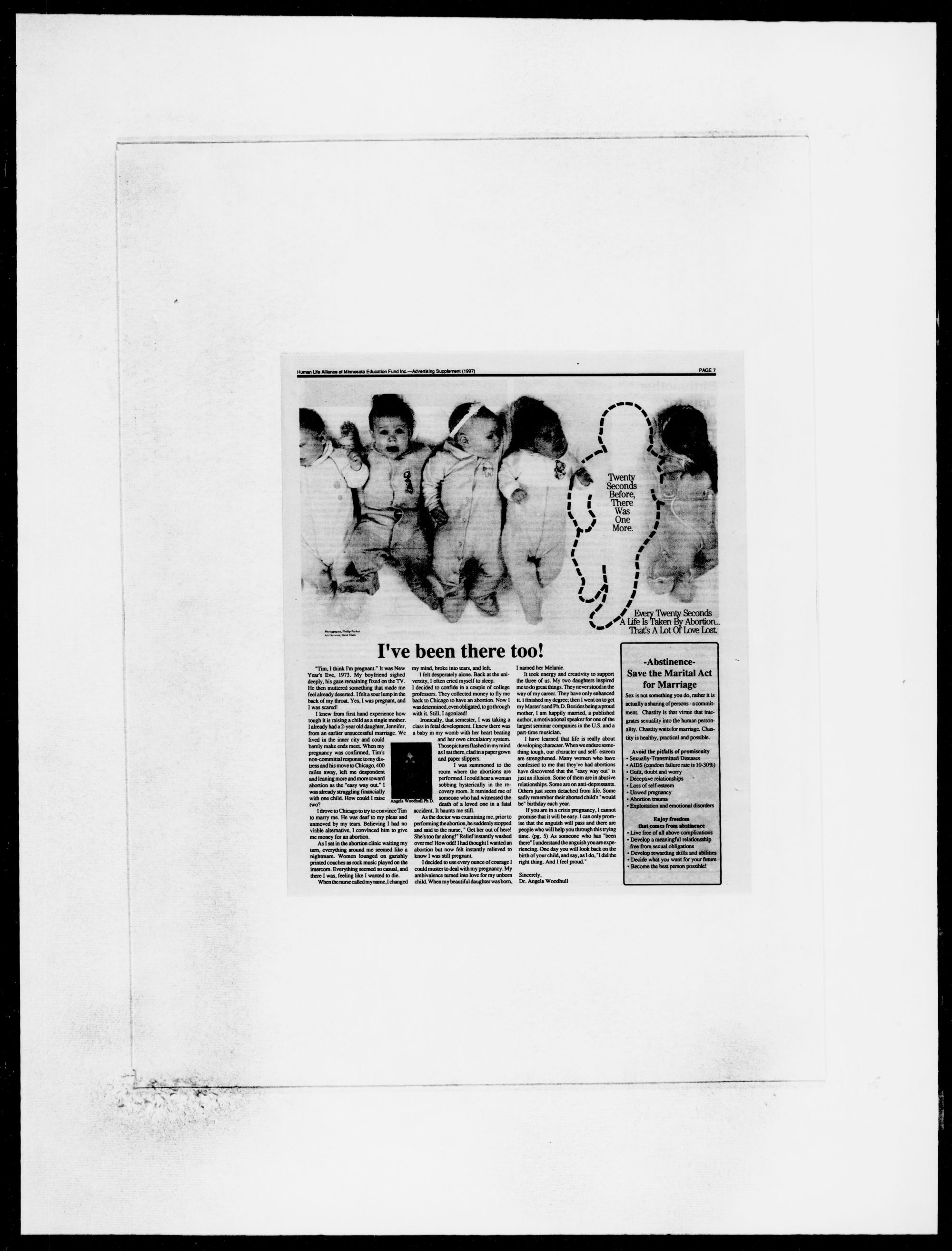 involved in pro-life activism. She helped me a lot. 1 went through a post-abortion