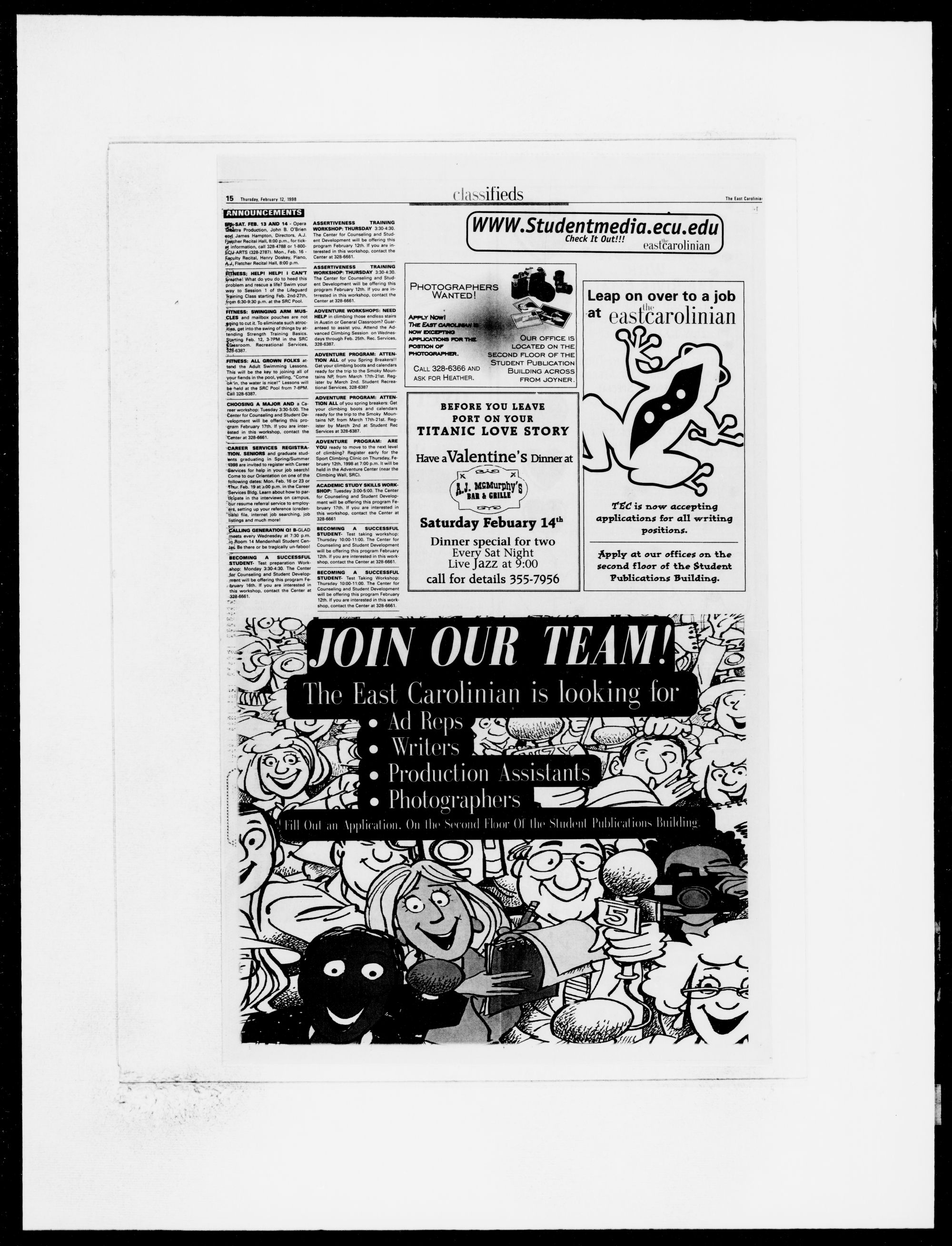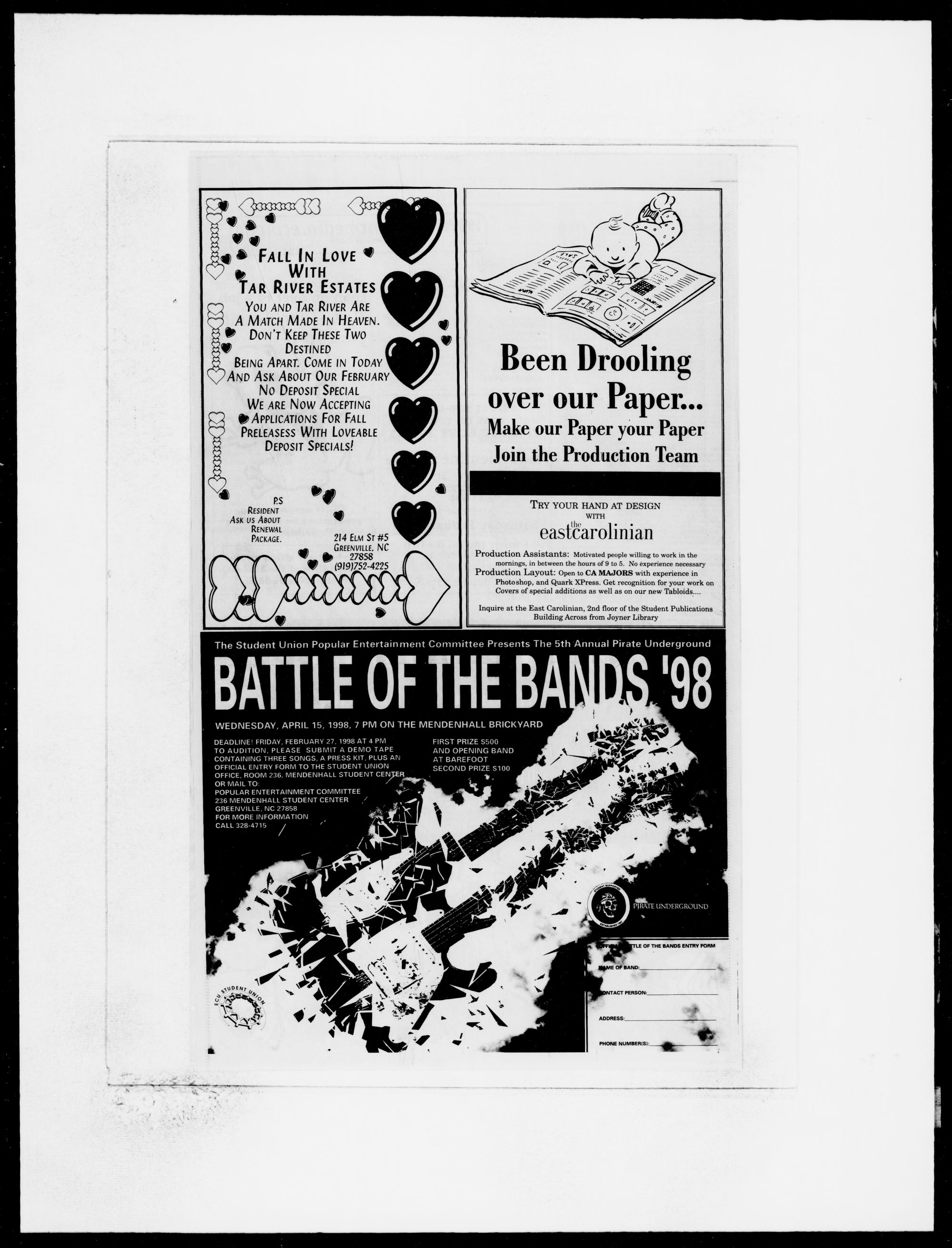 Inquire at the East Carolinian, 2nd floor of the Student Publications