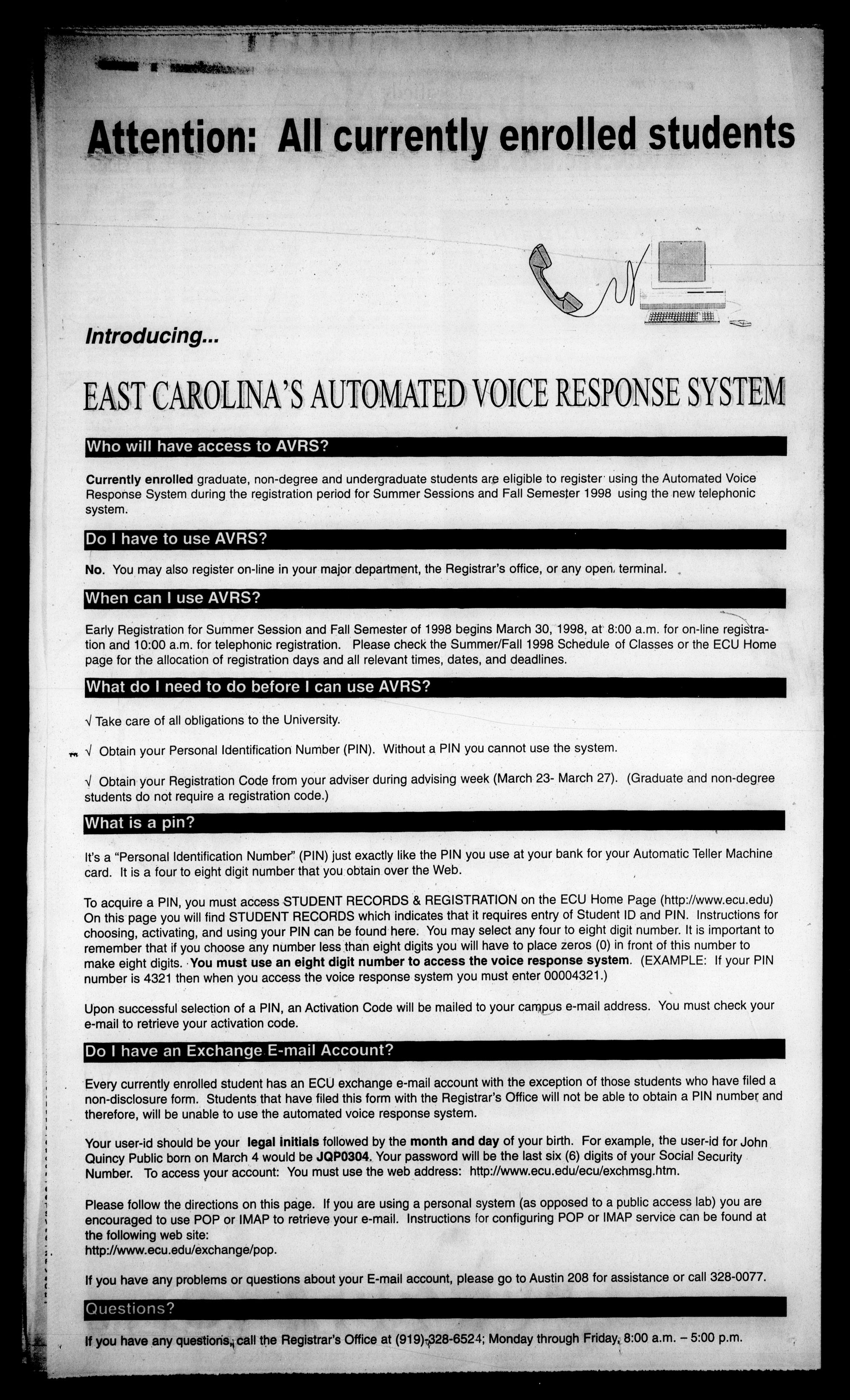 EAST CAROLINA'S AUTOMATED VOICE RESPONSE SYSTEM