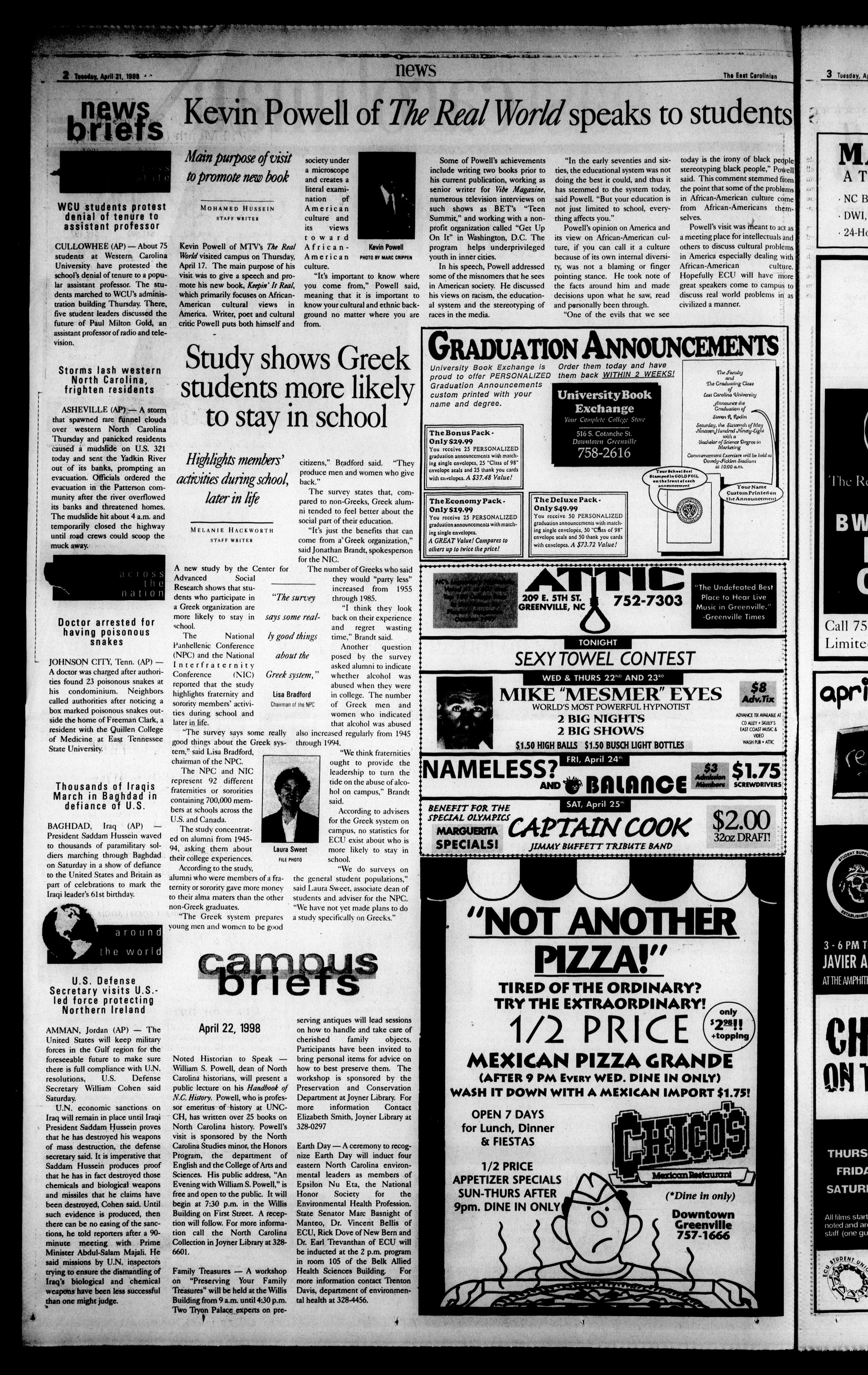 The East Carolinian, April 21, 1998