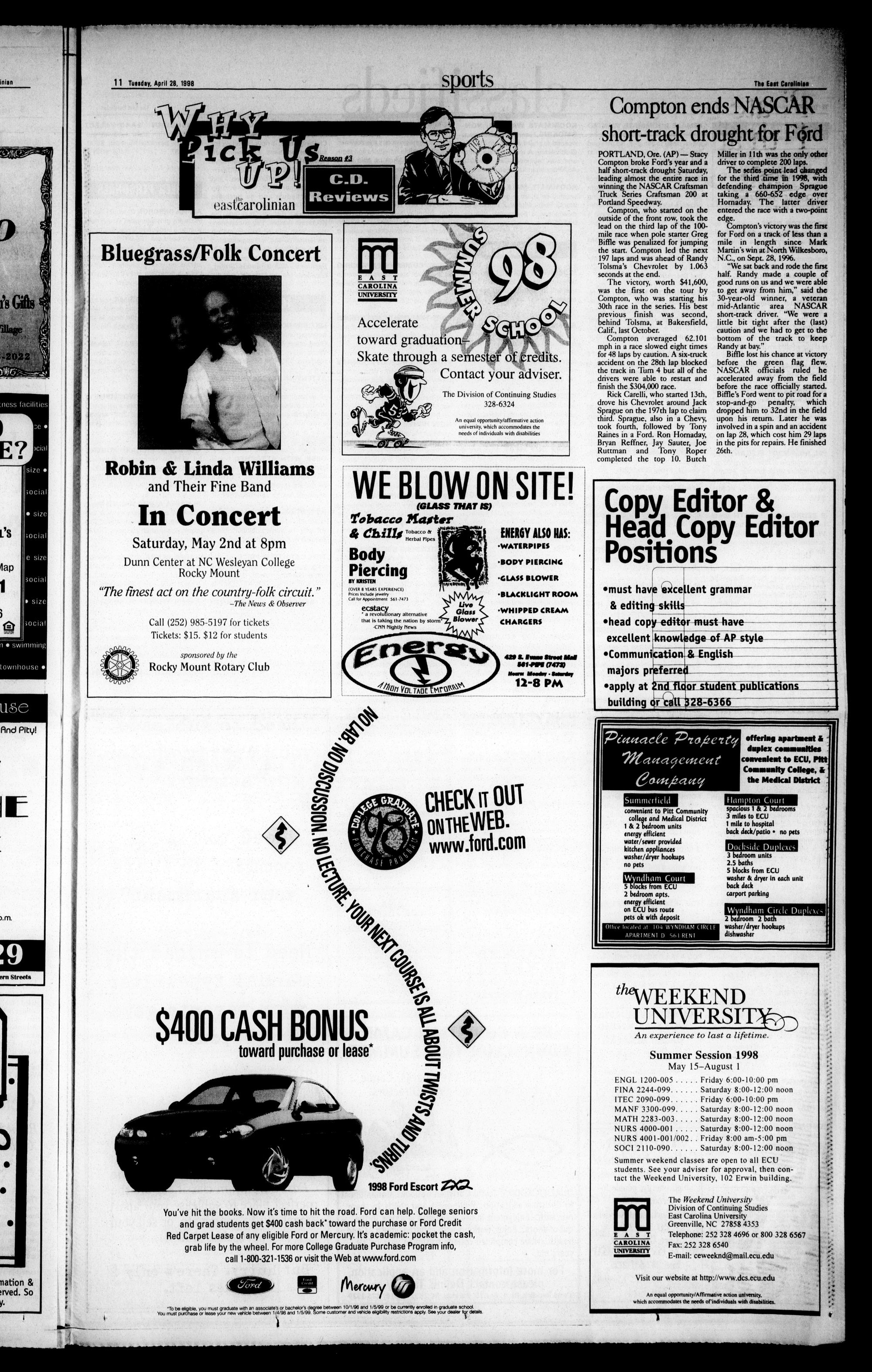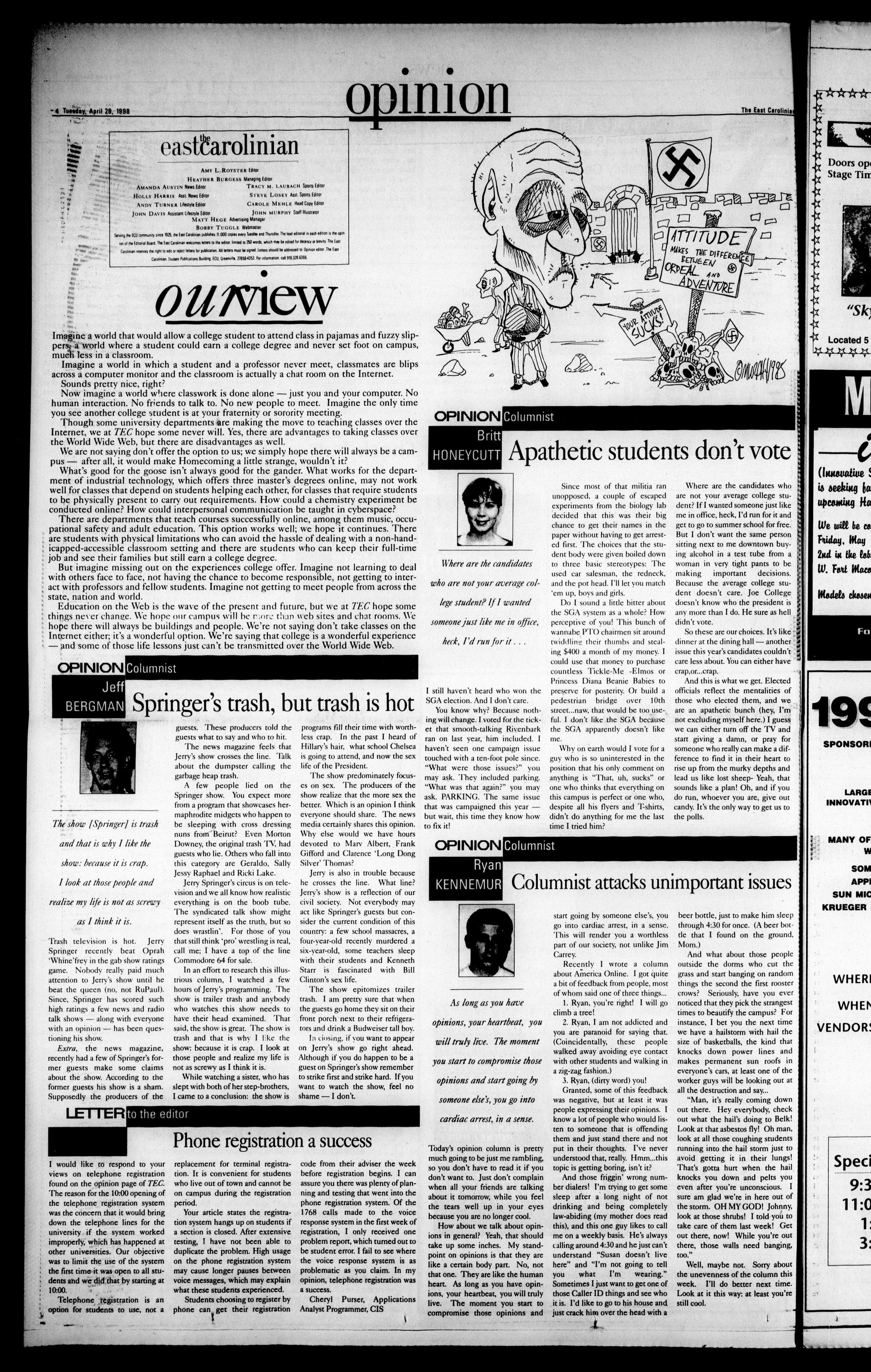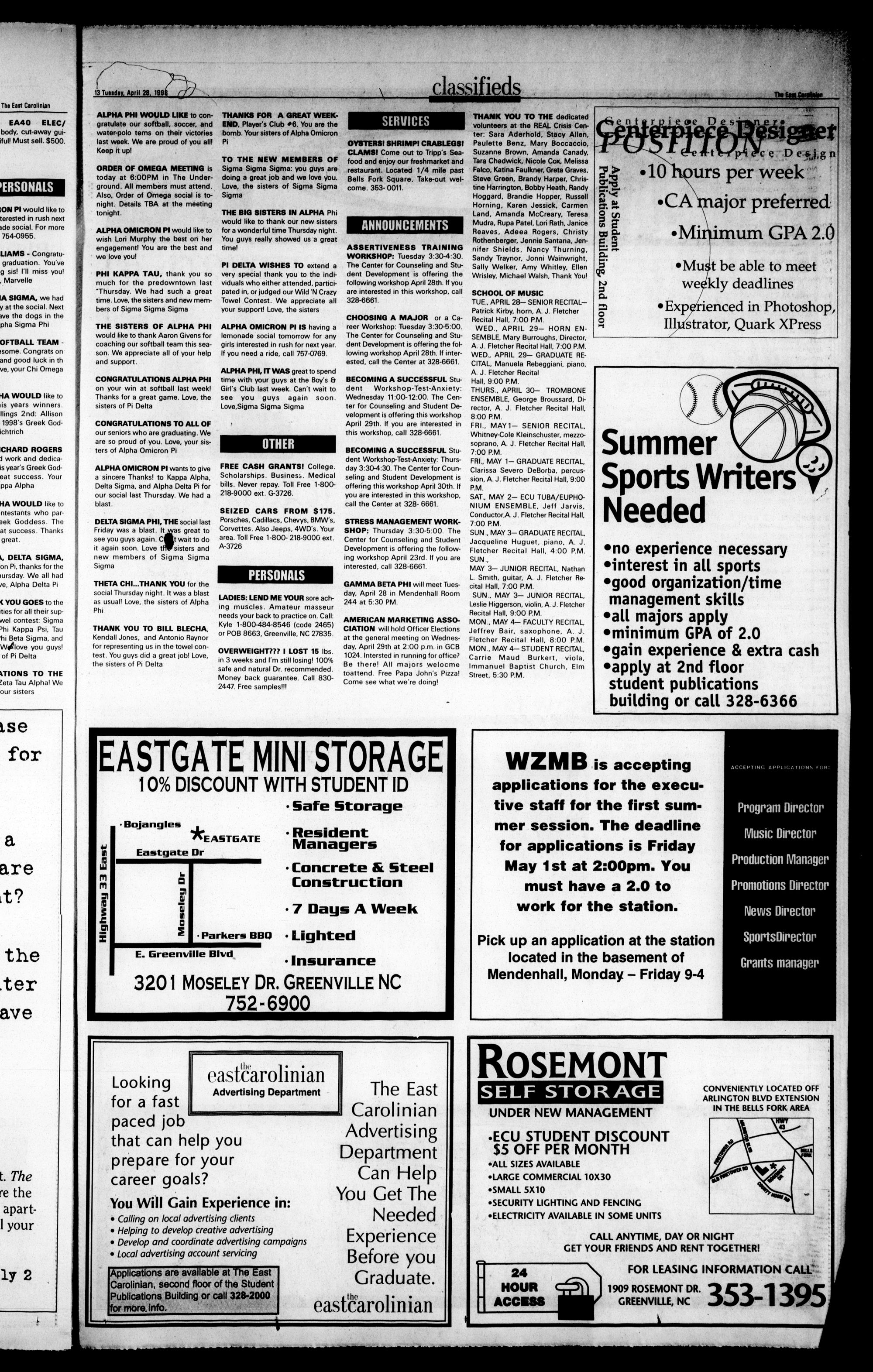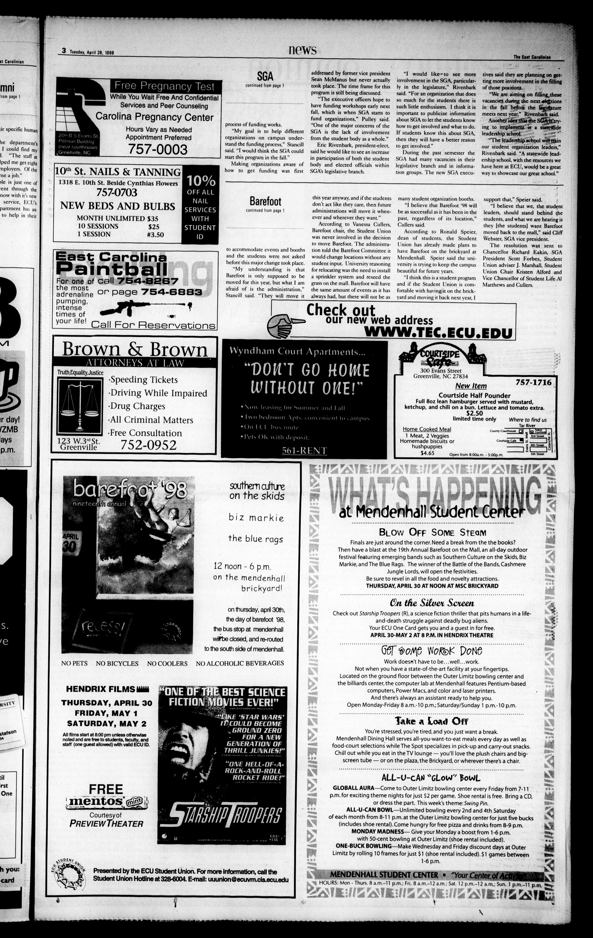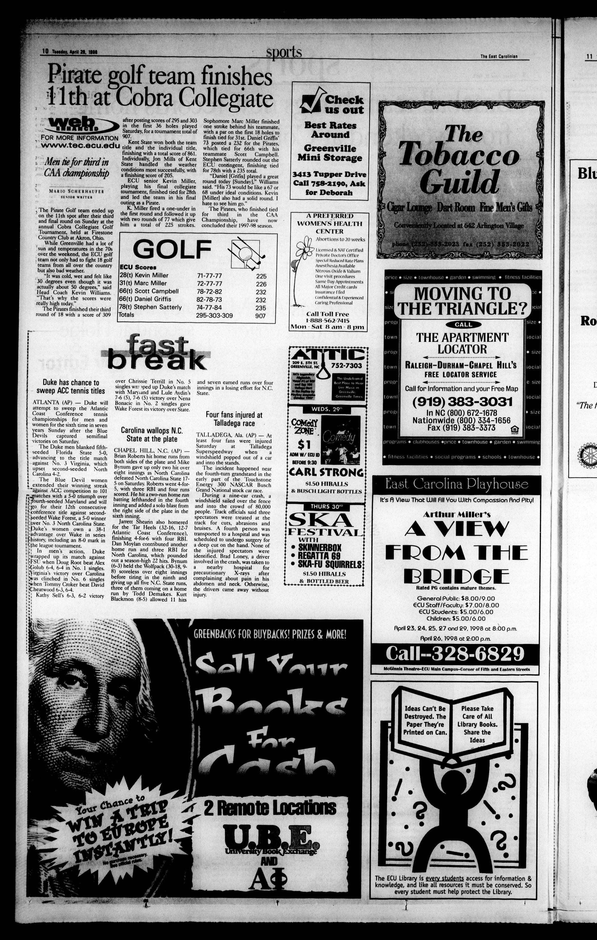 East Carolina's student-run campus newspaper was first published in 1923 as the East Carolina Teachers College News (1923-1925). It has been re-named as The Teco Echo (1925, 1926-1952), East Carolinian (1952-1969), Fountainhead (1969-1979), and The East Carolinian (1969, 1979-present). It includes local, state, national, and international stories with a focus on campus events.