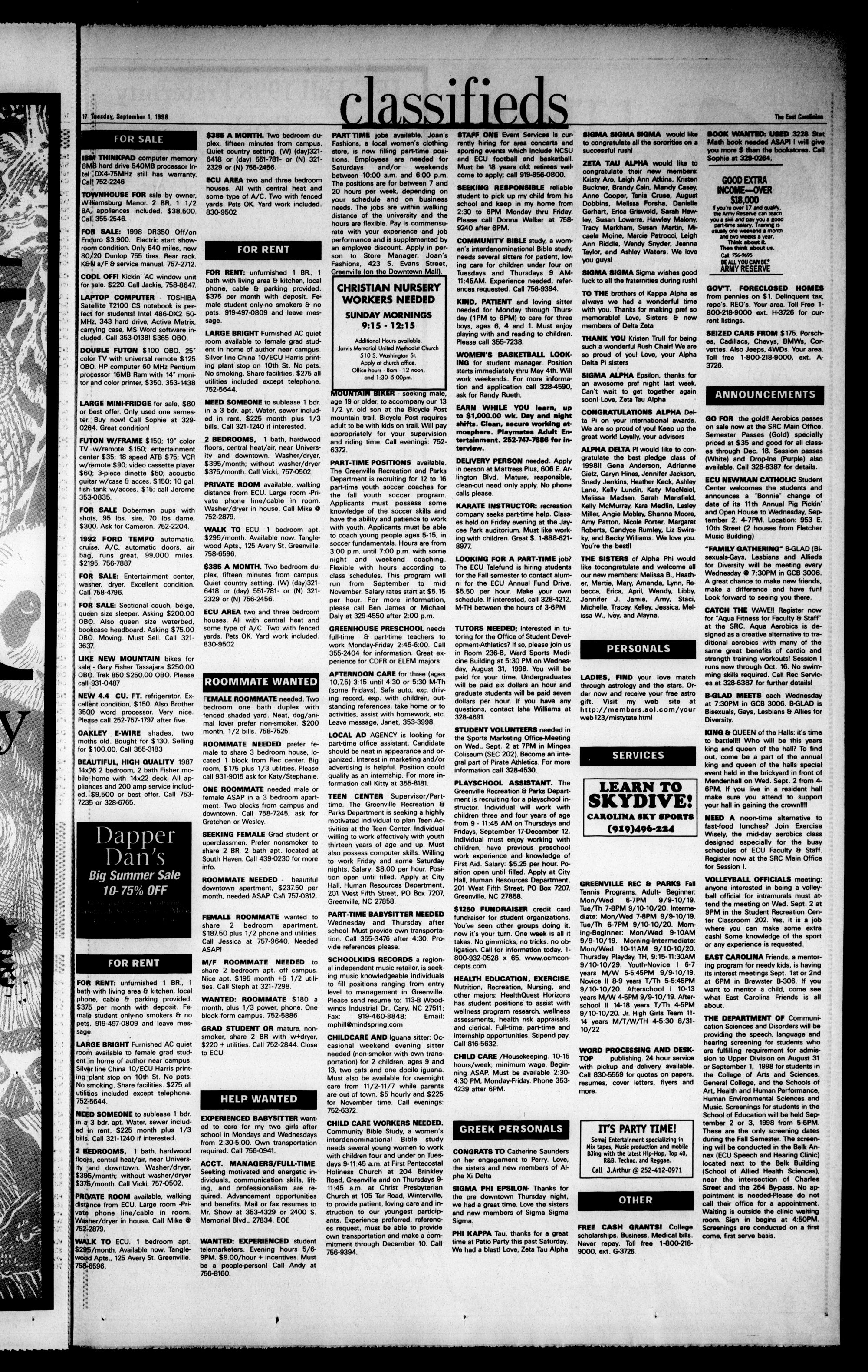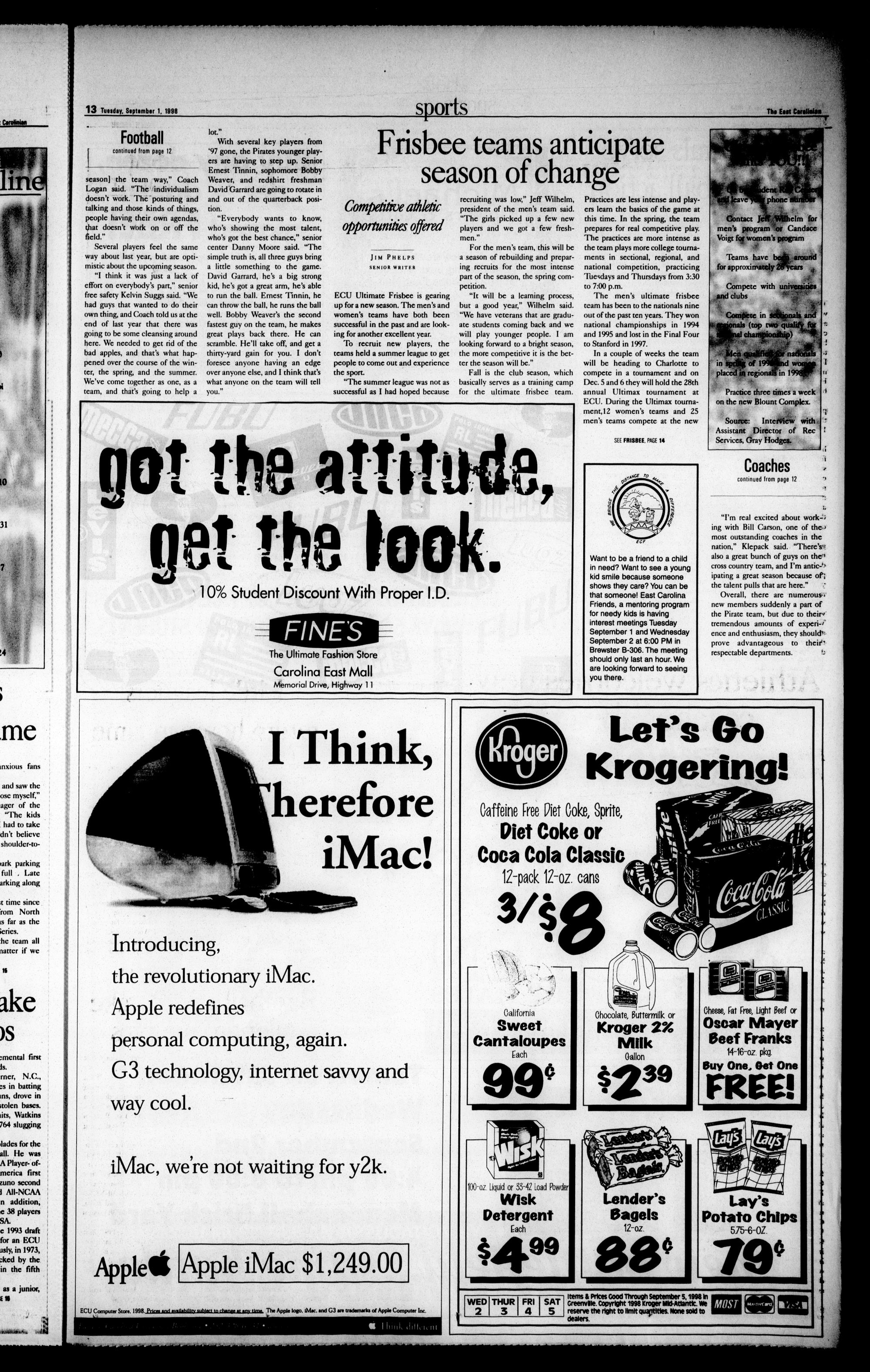 The East Carolinian, September 1, 1998