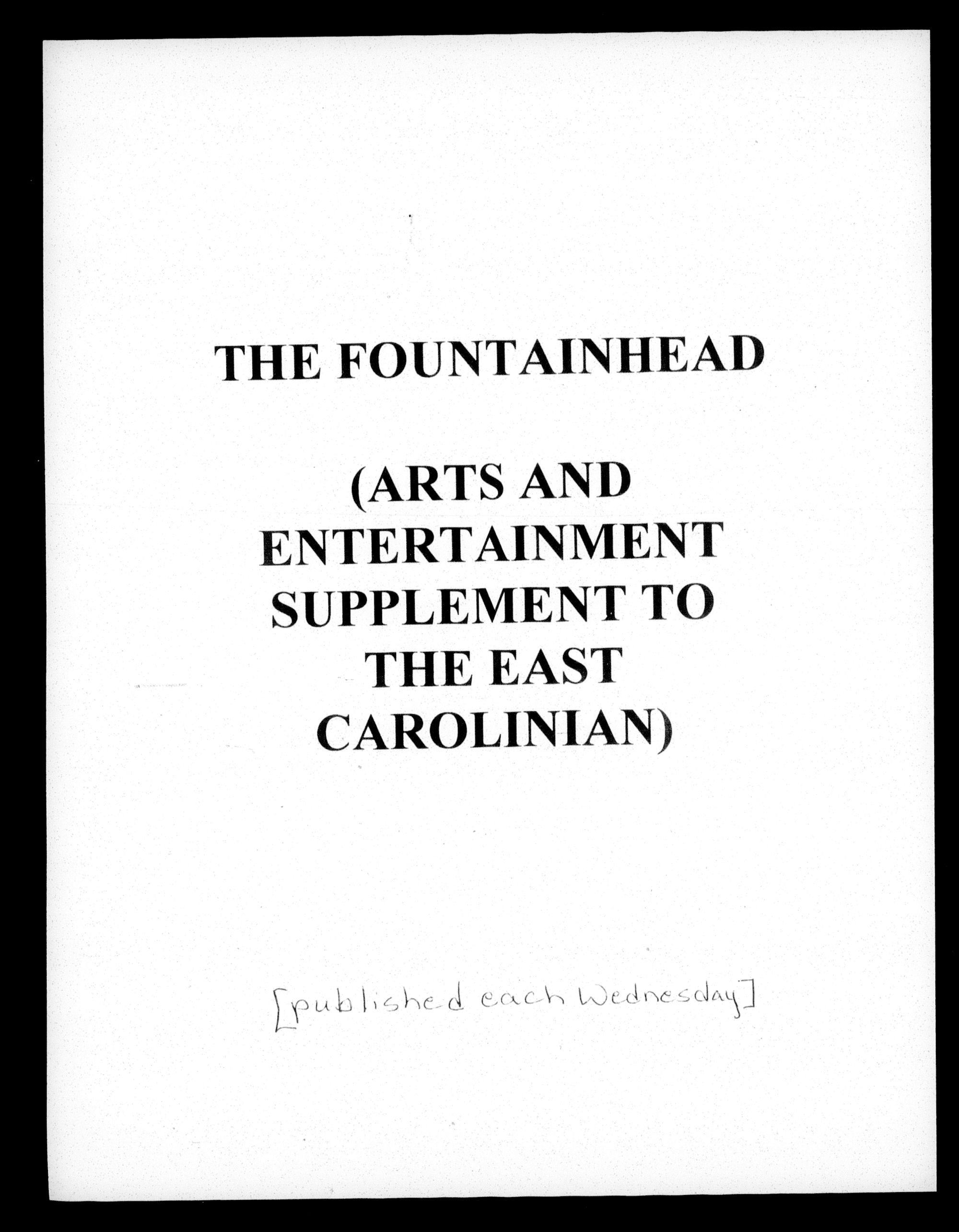 East Carolina's student-run campus newspaper was first published in 1923 as the East Carolina Teachers College News (1923-1925). It has been re-named as The Teco Echo (1925, 1926-1952), East Carolinian (1952-1969), Fountainhead (1969-1979), and The East Carolinian (1969, 1979-present). It includes local, state, national, and international stories with a focus on campus events.