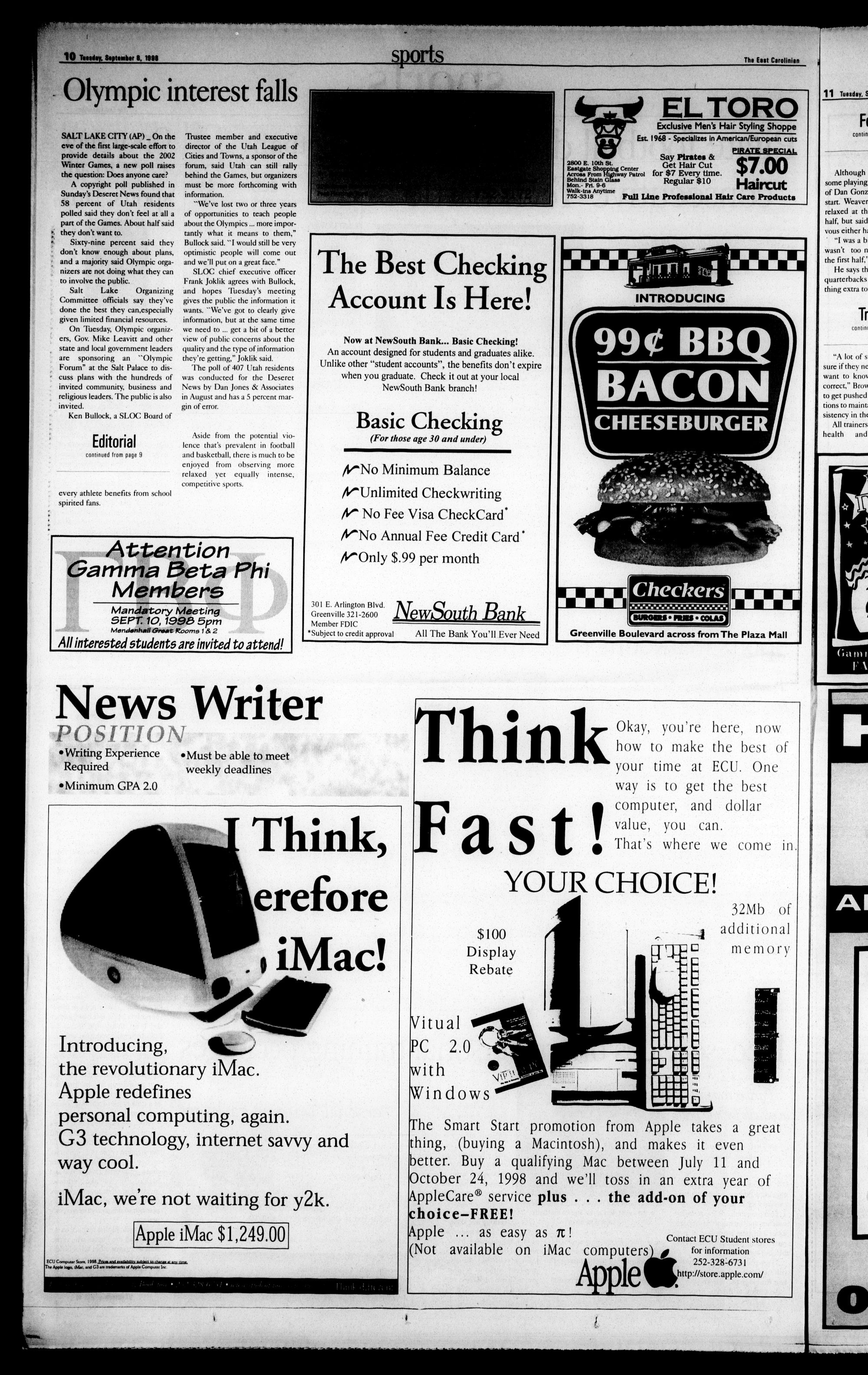TUESDAY. SEPTEMBER 8 ,1998 VOLUME 74, ISSUE 05