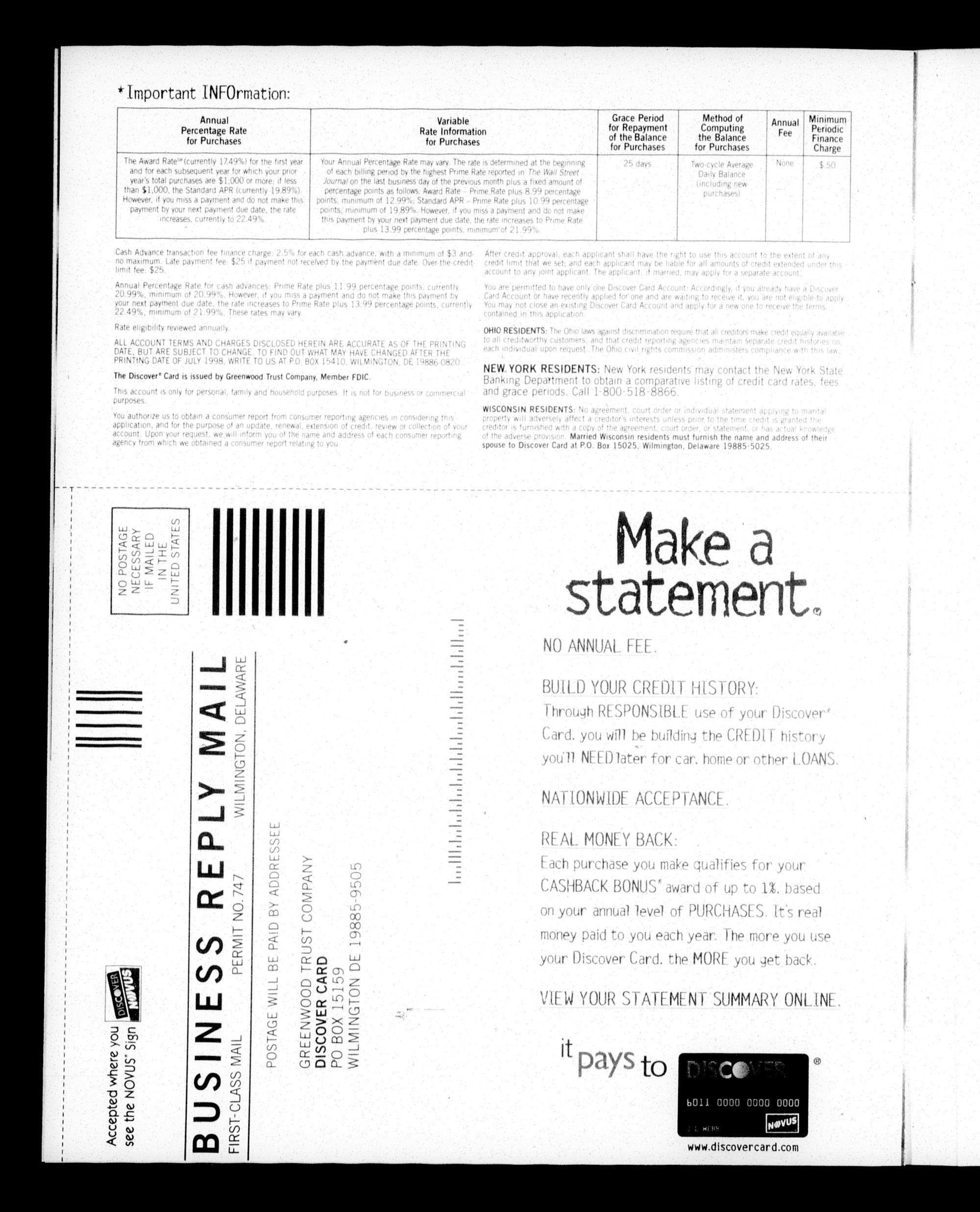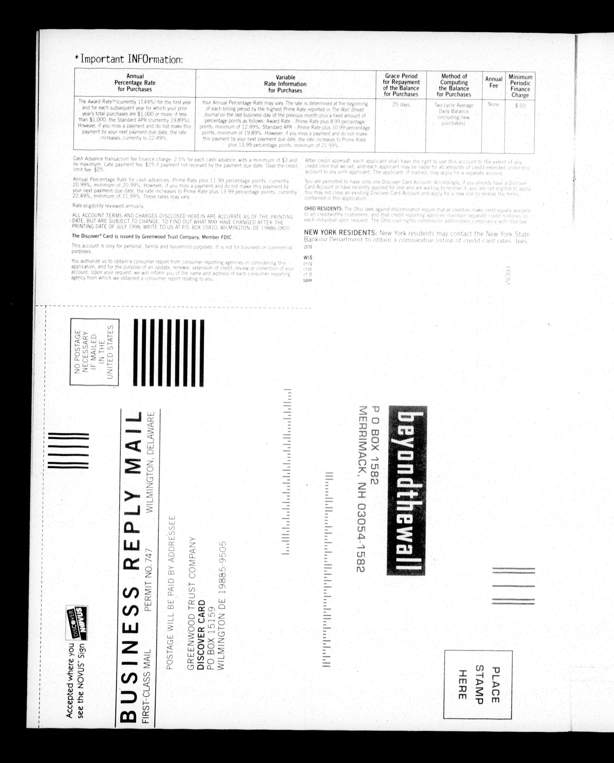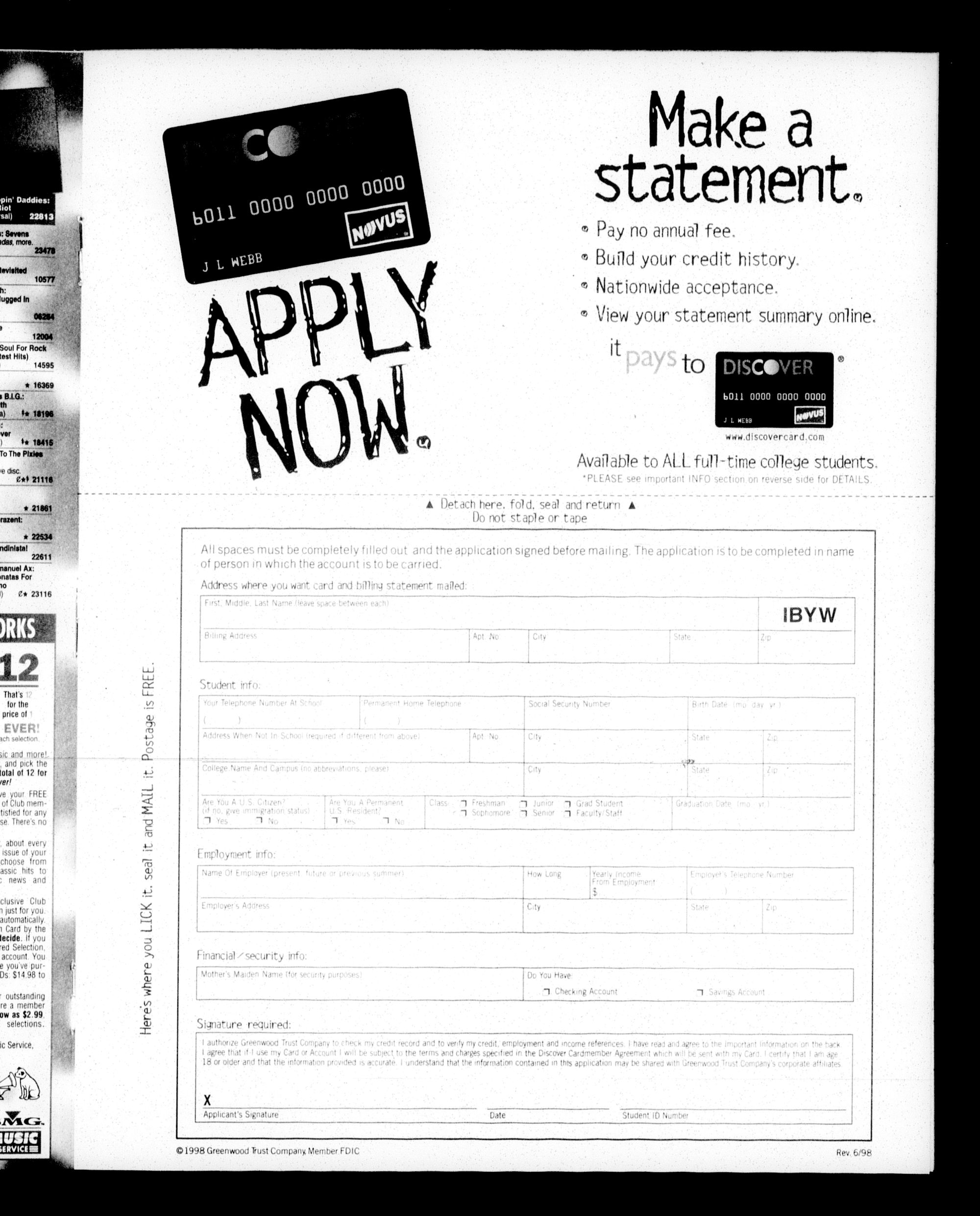 ORDER NO. 1016 "COLLEGE CREDIT" VISA USA 27"f. 29"