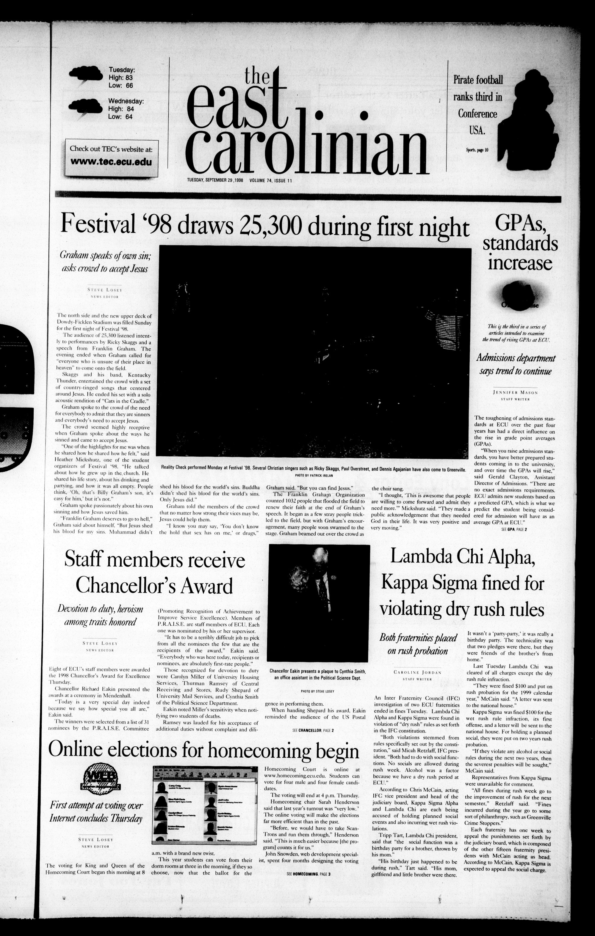 TUESDAY. SEPTEMBER 29,1998 VOLUME 74, ISSUE 11