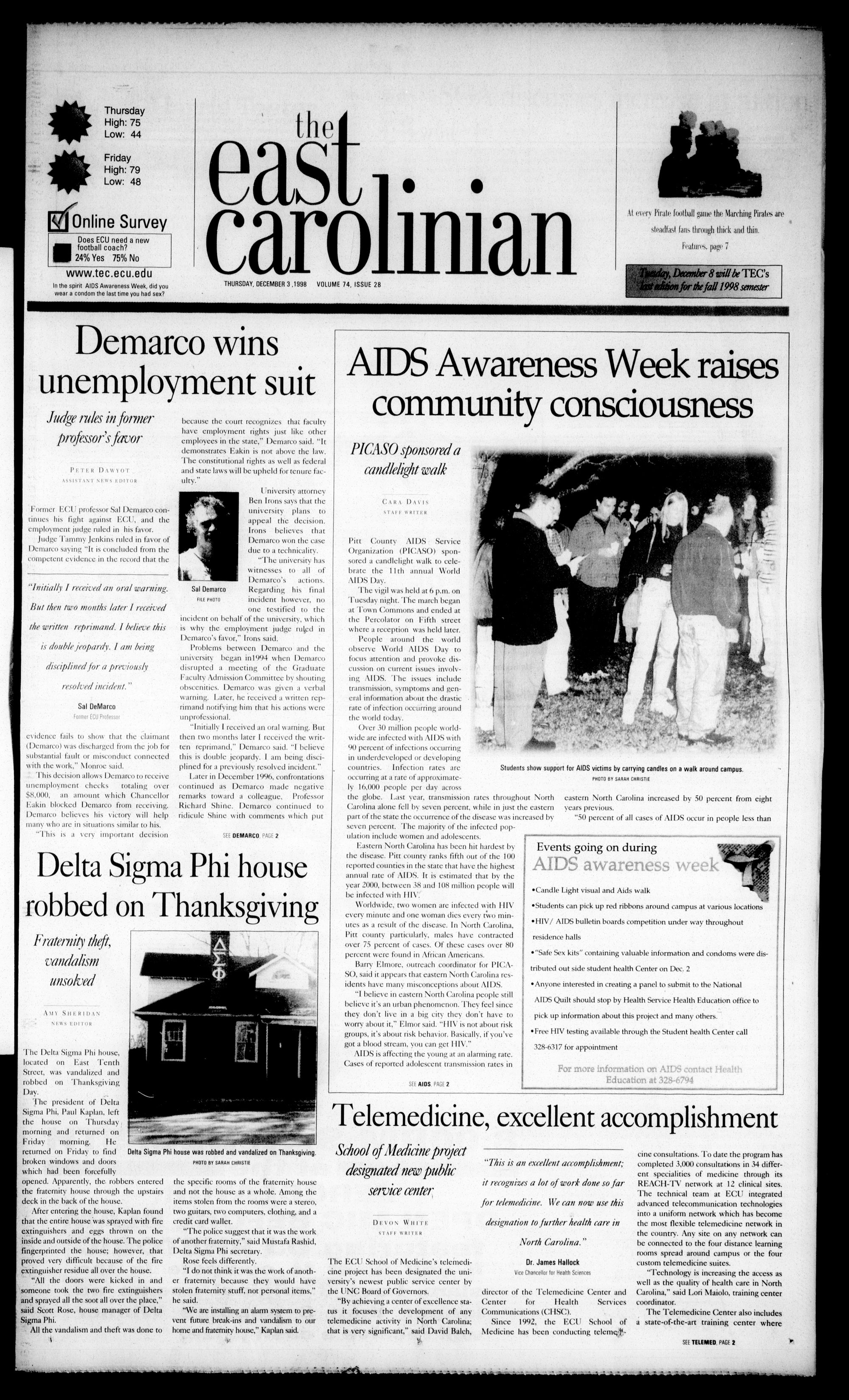 THURSDAY, DECEMBER 3.1998 VOLUME 74, ISSUE 28