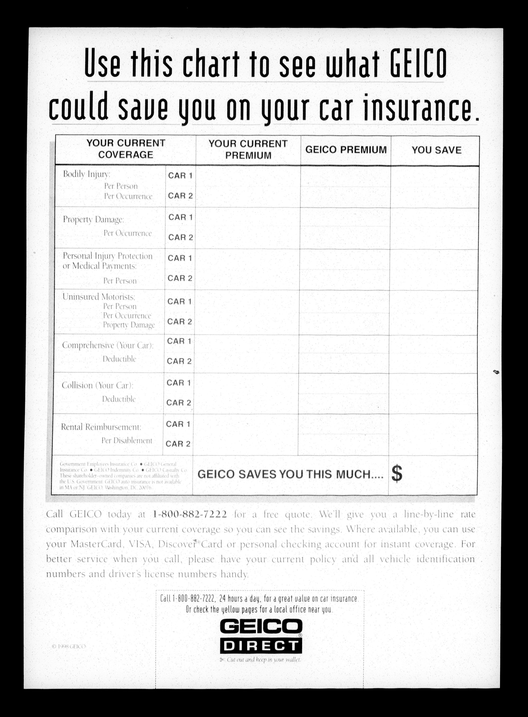 chart on the back and call GEICO