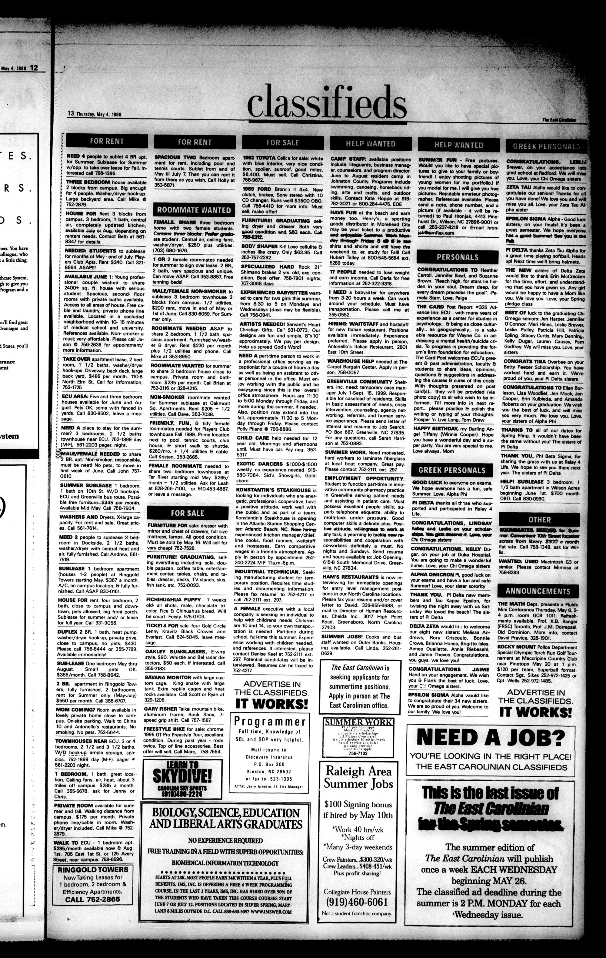 THE EAST CAROLINIAN CLASSIFIEDS