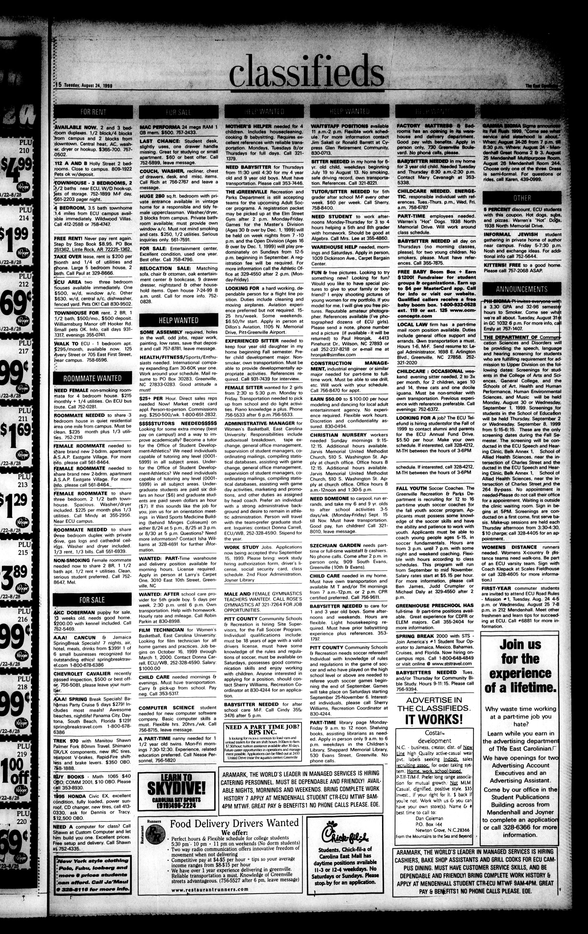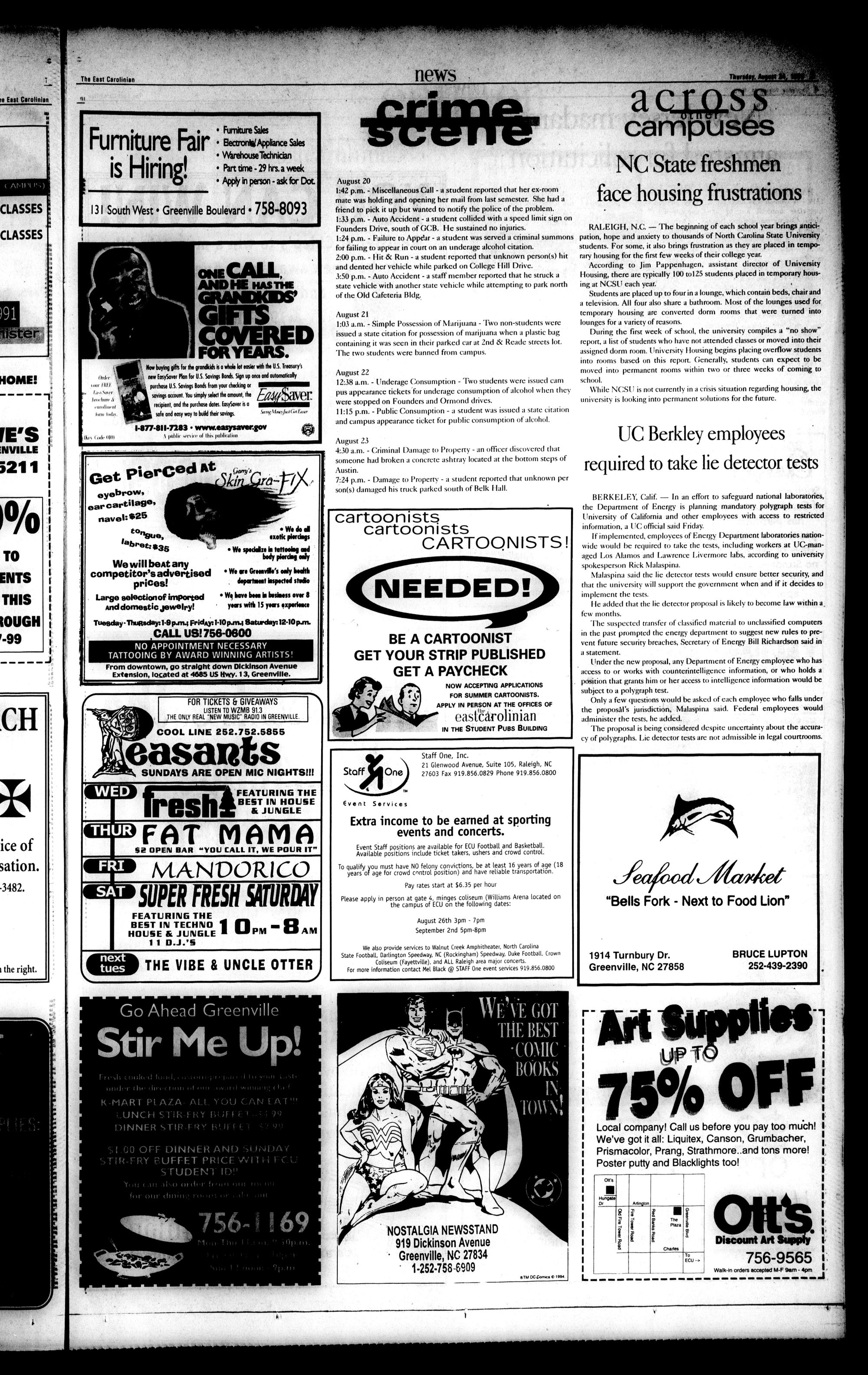 APPLY AT MENDENHALL STUDENT CTR-ECU MTWF 9AM4PM. GREAT