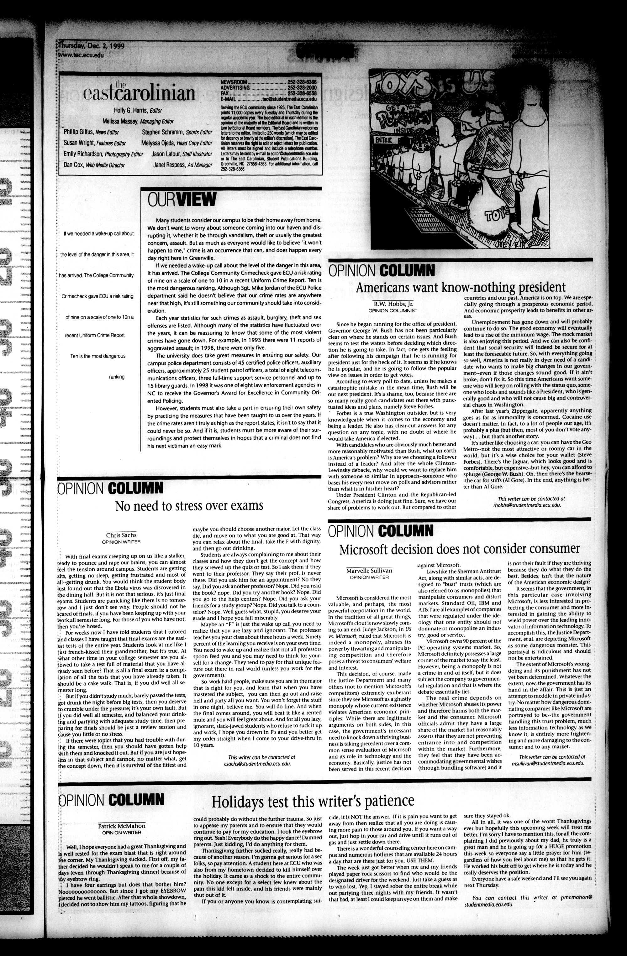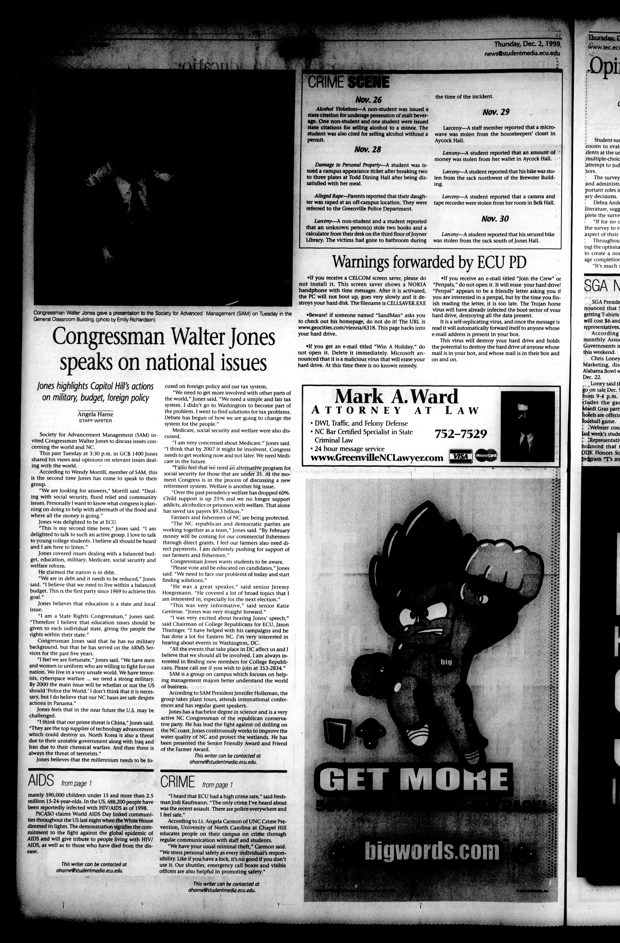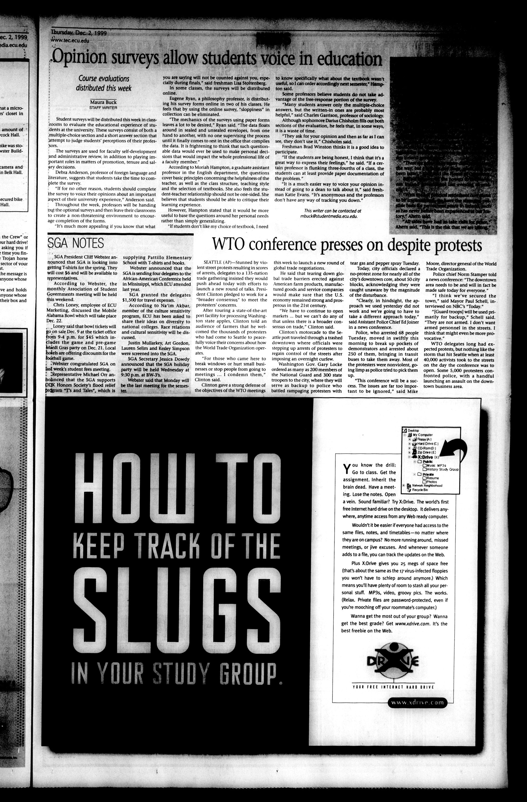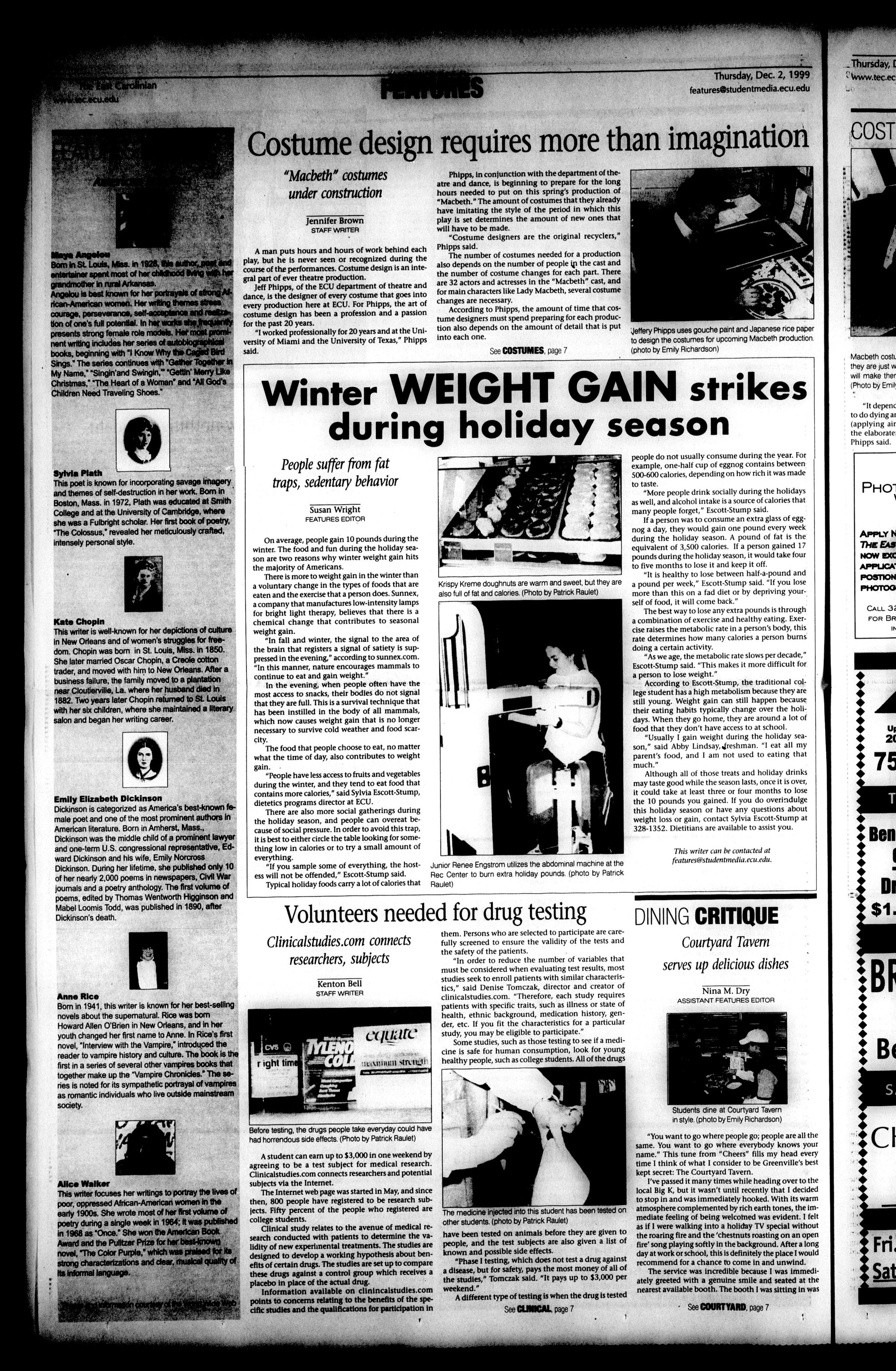 East Carolina's student-run campus newspaper was first published in 1923 as the East Carolina Teachers College News (1923-1925). It has been re-named as The Teco Echo (1925, 1926-1952), East Carolinian (1952-1969), Fountainhead (1969-1979), and The East Carolinian (1969, 1979-present). It includes local, state, national, and international stories with a focus on campus events.