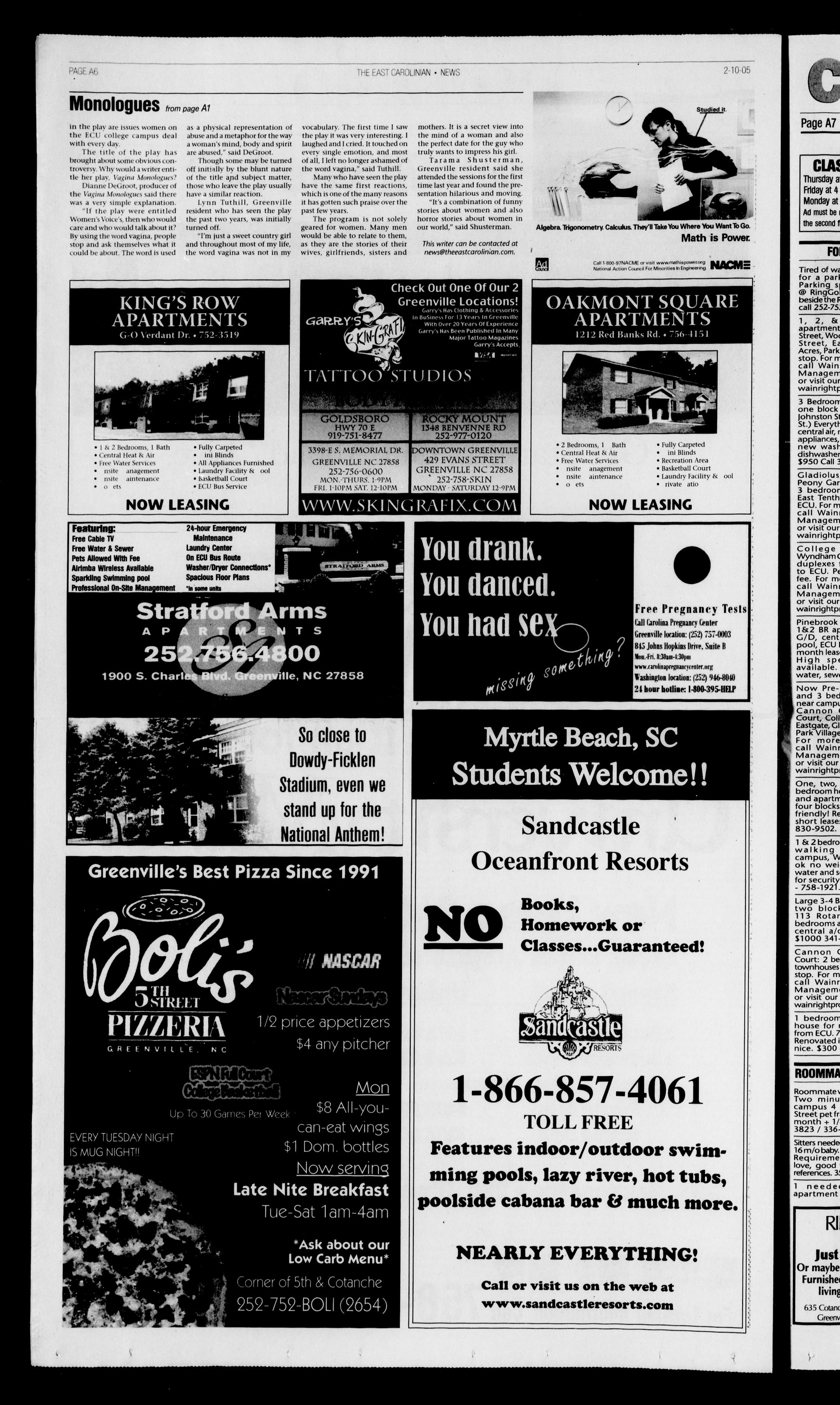 East Carolina's student-run campus newspaper was first published in 1923 as the East Carolina Teachers College News (1923-1925). It has been re-named as The Teco Echo (1925, 1926-1952), East Carolinian (1952-1969), Fountainhead (1969-1979), and The East Carolinian (1969, 1979-present). It includes local, state, national, and international stories with a focus on campus events.