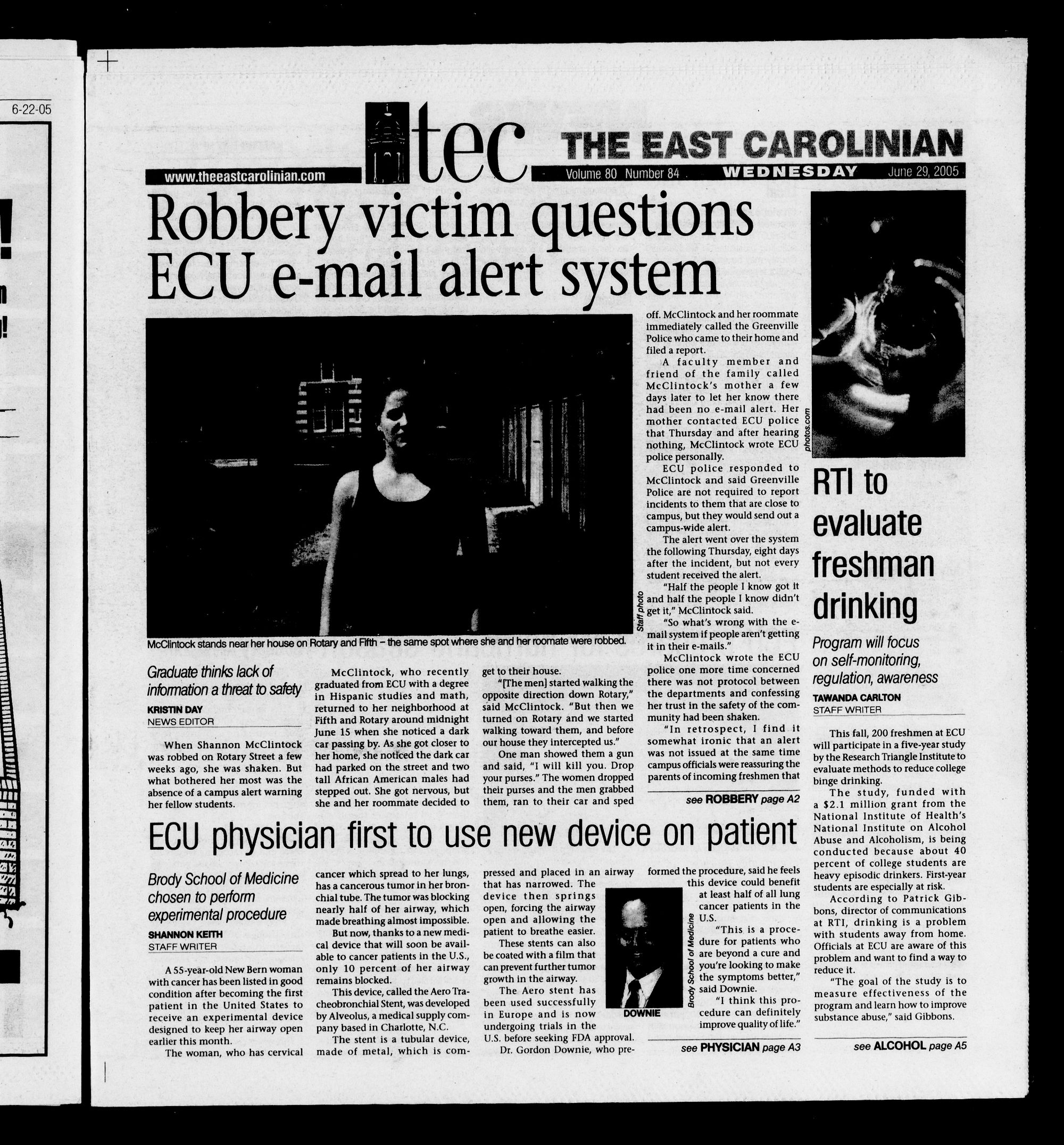 McClintock stands near her house on Rotary and Fifth - the same spot where she and her roomate were robbed,