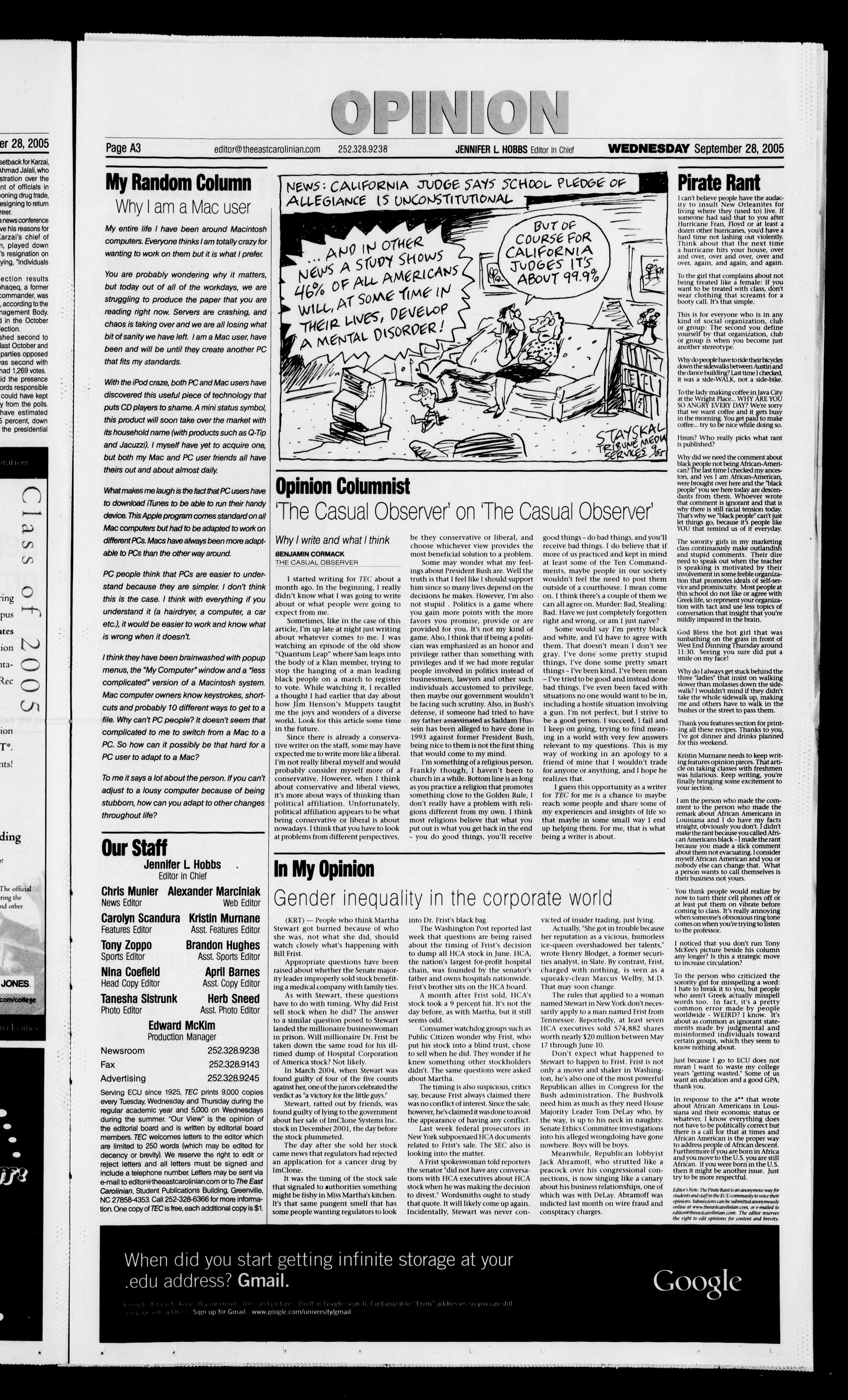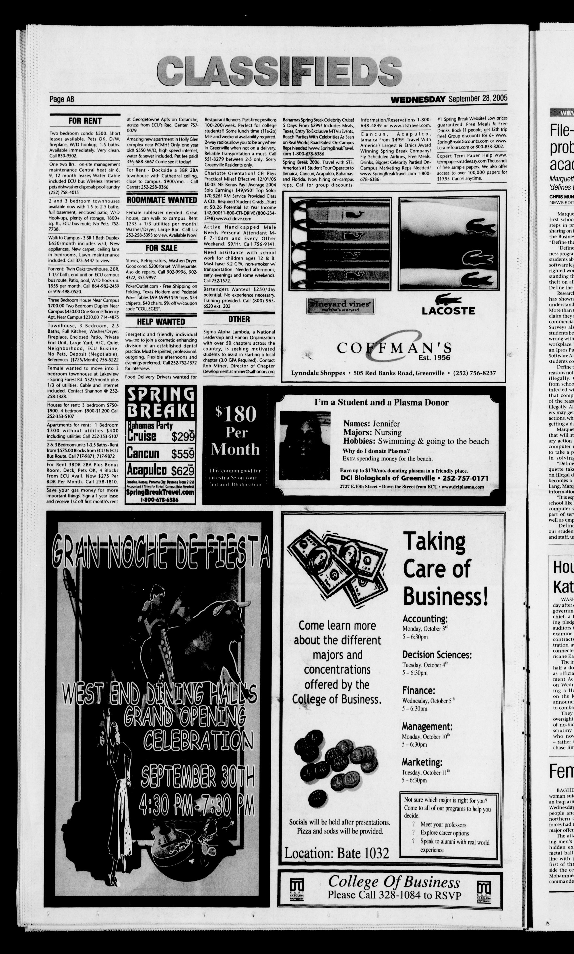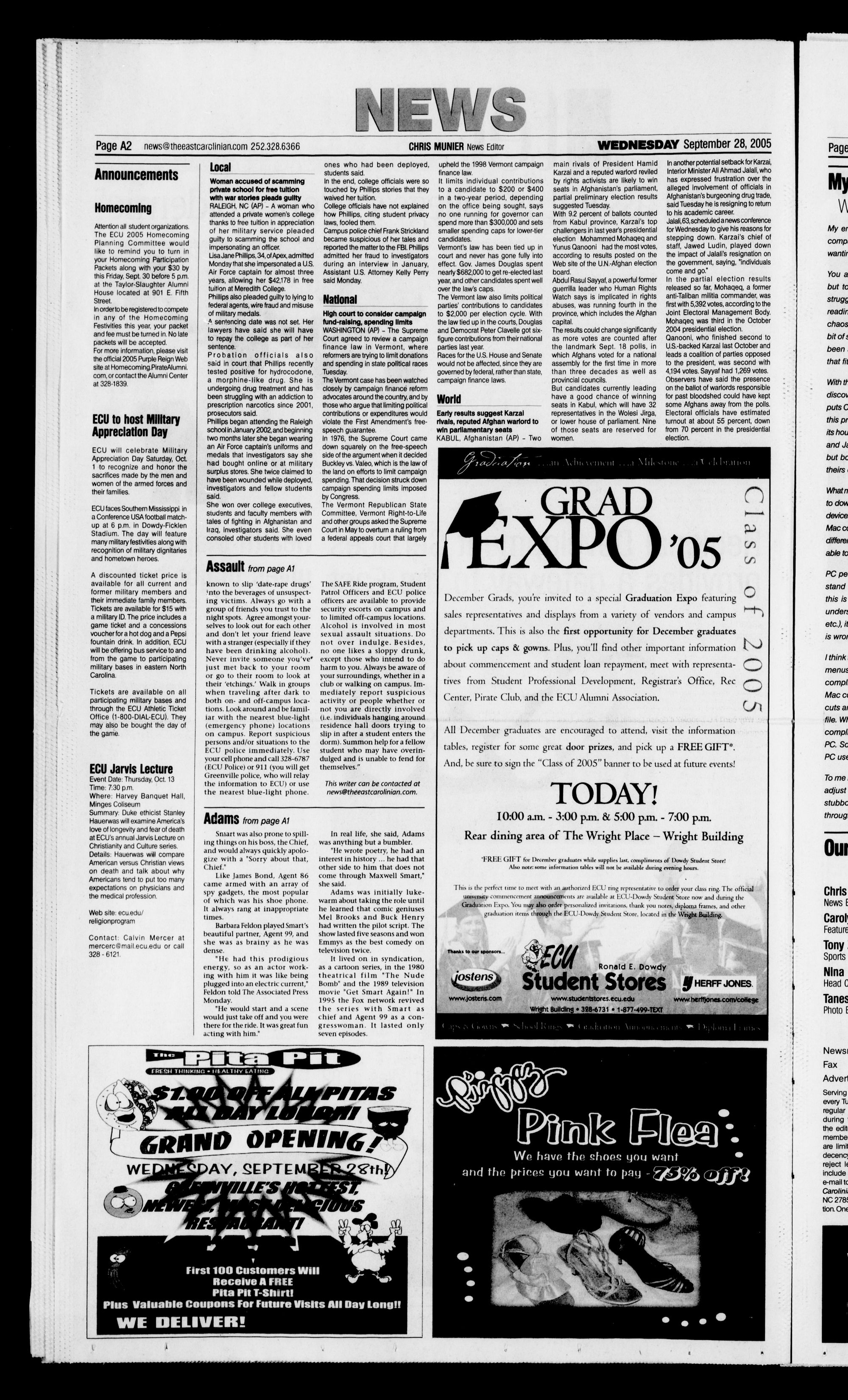 East Carolina's student-run campus newspaper was first published in 1923 as the East Carolina Teachers College News (1923-1925). It has been re-named as The Teco Echo (1925, 1926-1952), East Carolinian (1952-1969), Fountainhead (1969-1979), and The East Carolinian (1969, 1979-present). It includes local, state, national, and international stories with a focus on campus events.