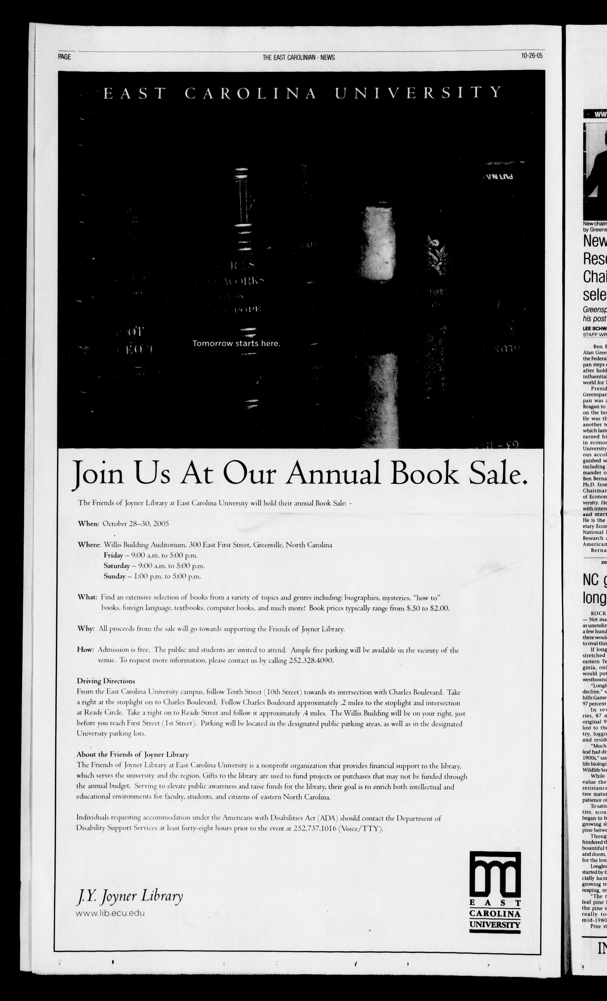 The Friends of Joyner Library at East Carolina University will hold their annual Book Sale: ?