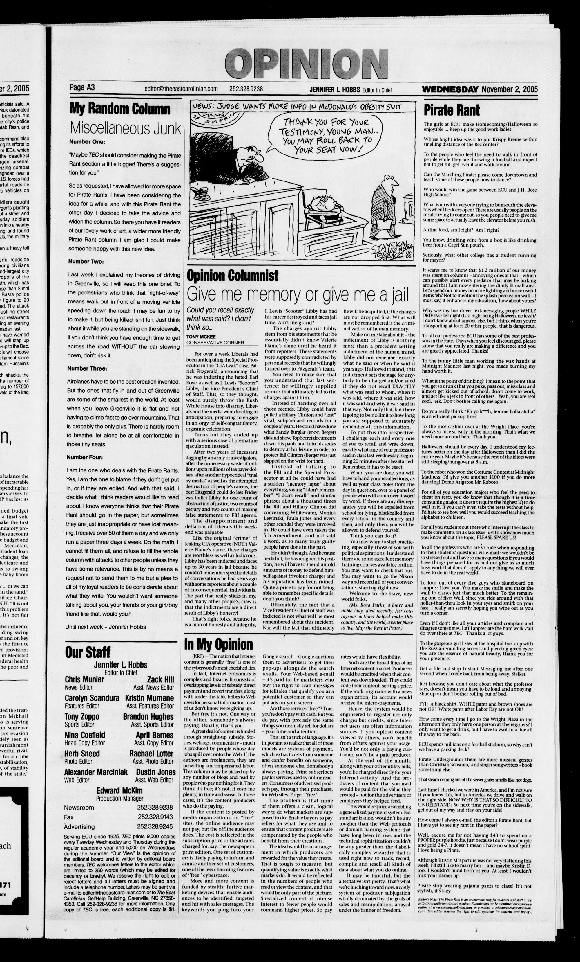The East Carolinian, November 2, 2005