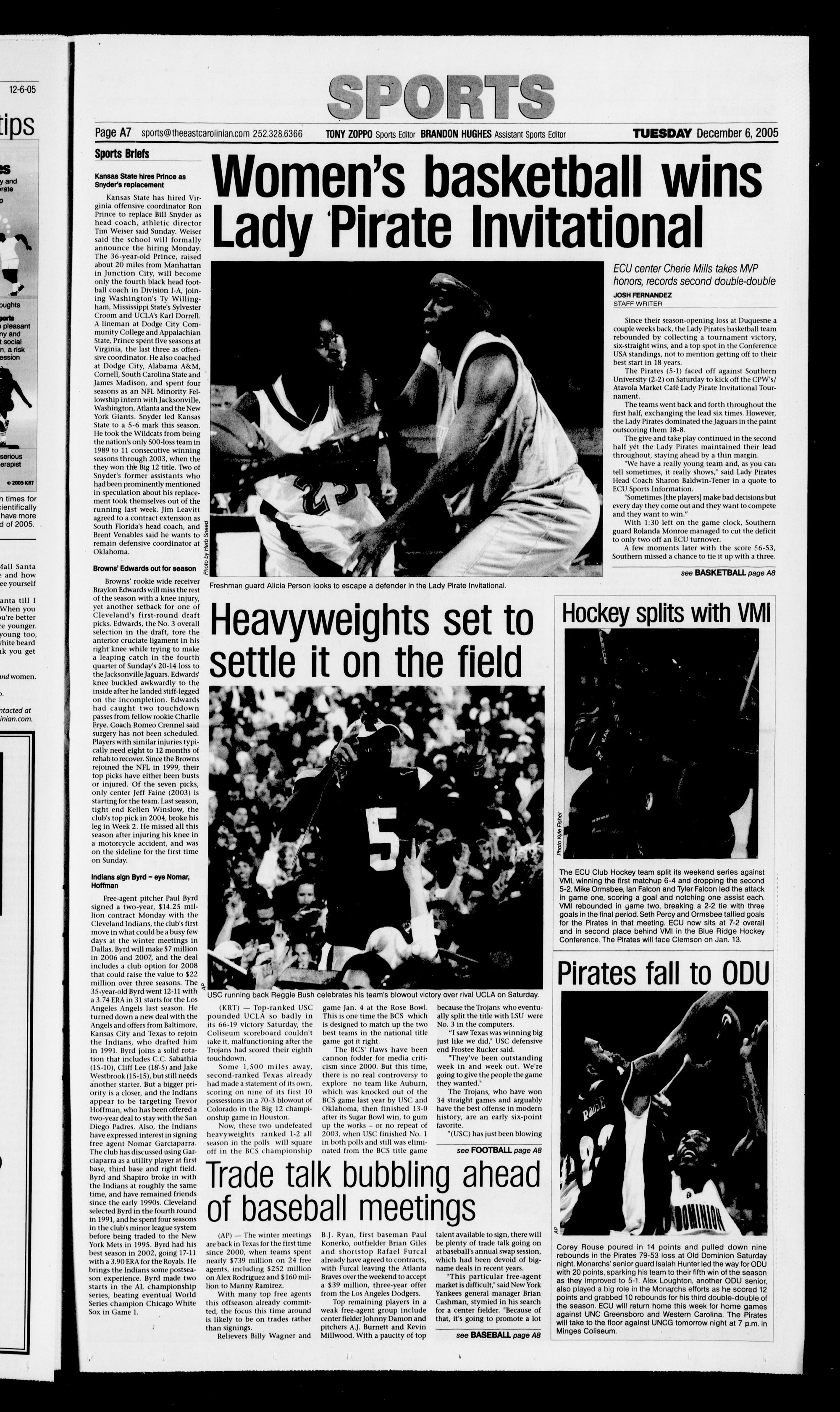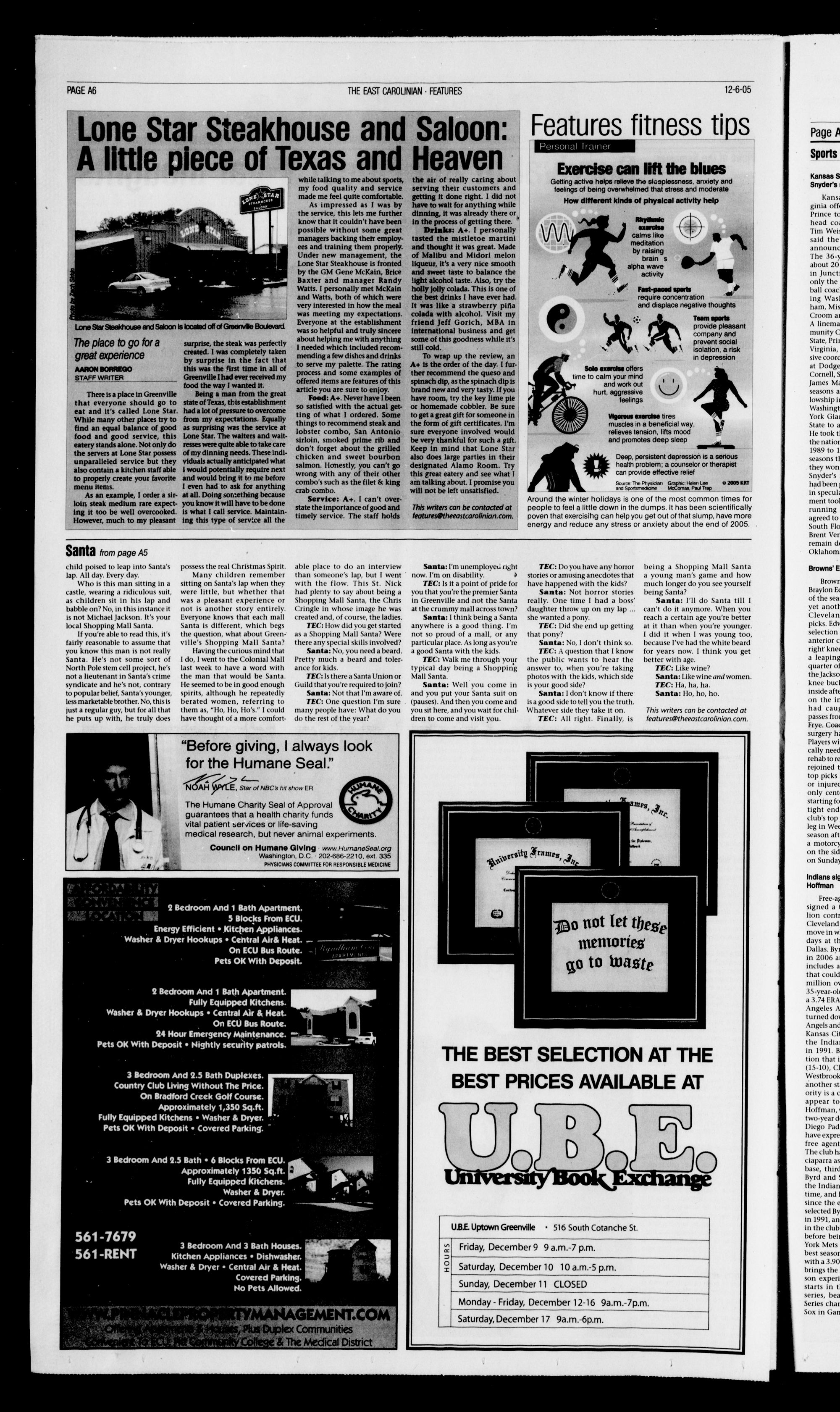 East Carolina's student-run campus newspaper was first published in 1923 as the East Carolina Teachers College News (1923-1925). It has been re-named as The Teco Echo (1925, 1926-1952), East Carolinian (1952-1969), Fountainhead (1969-1979), and The East Carolinian (1969, 1979-present). It includes local, state, national, and international stories with a focus on campus events.