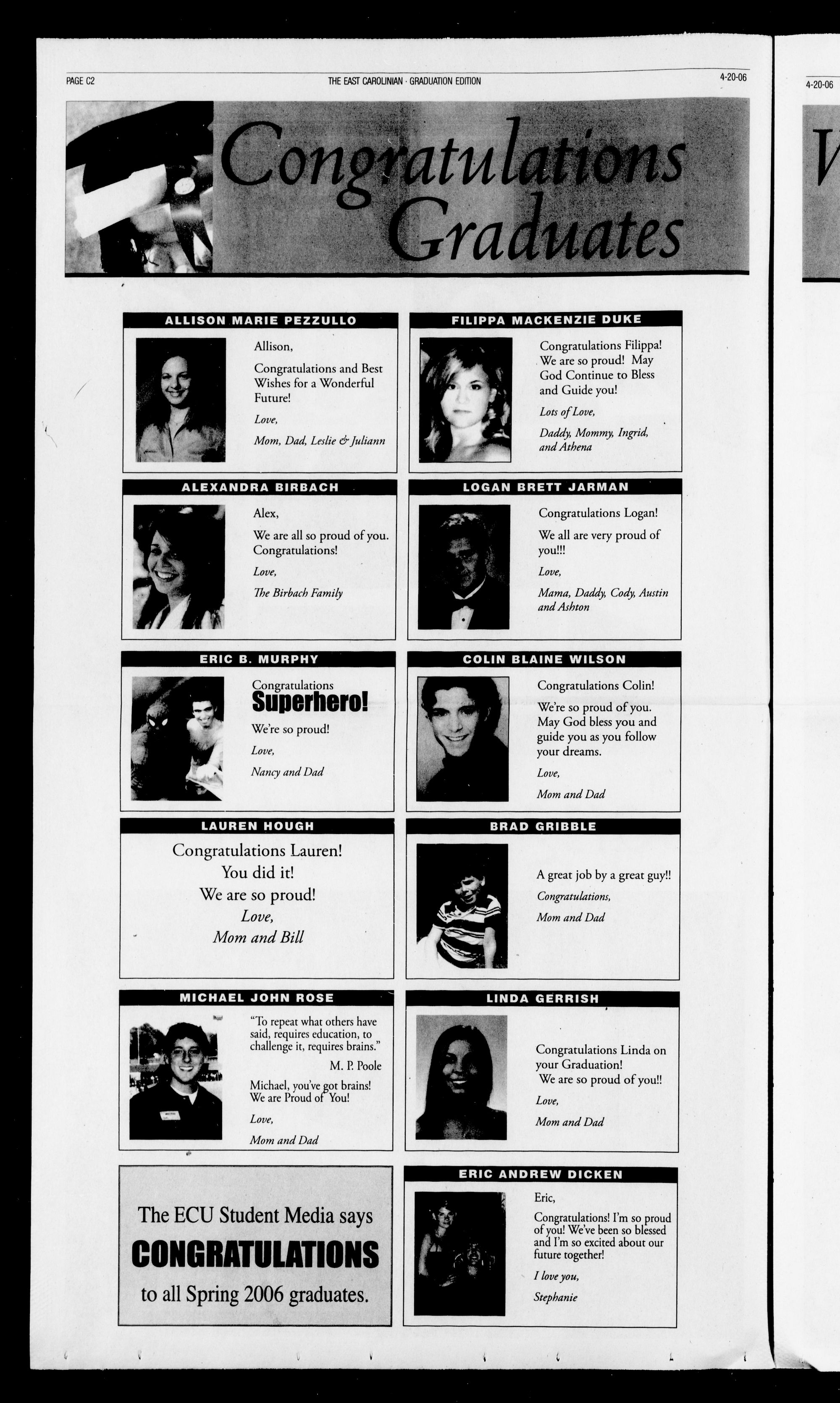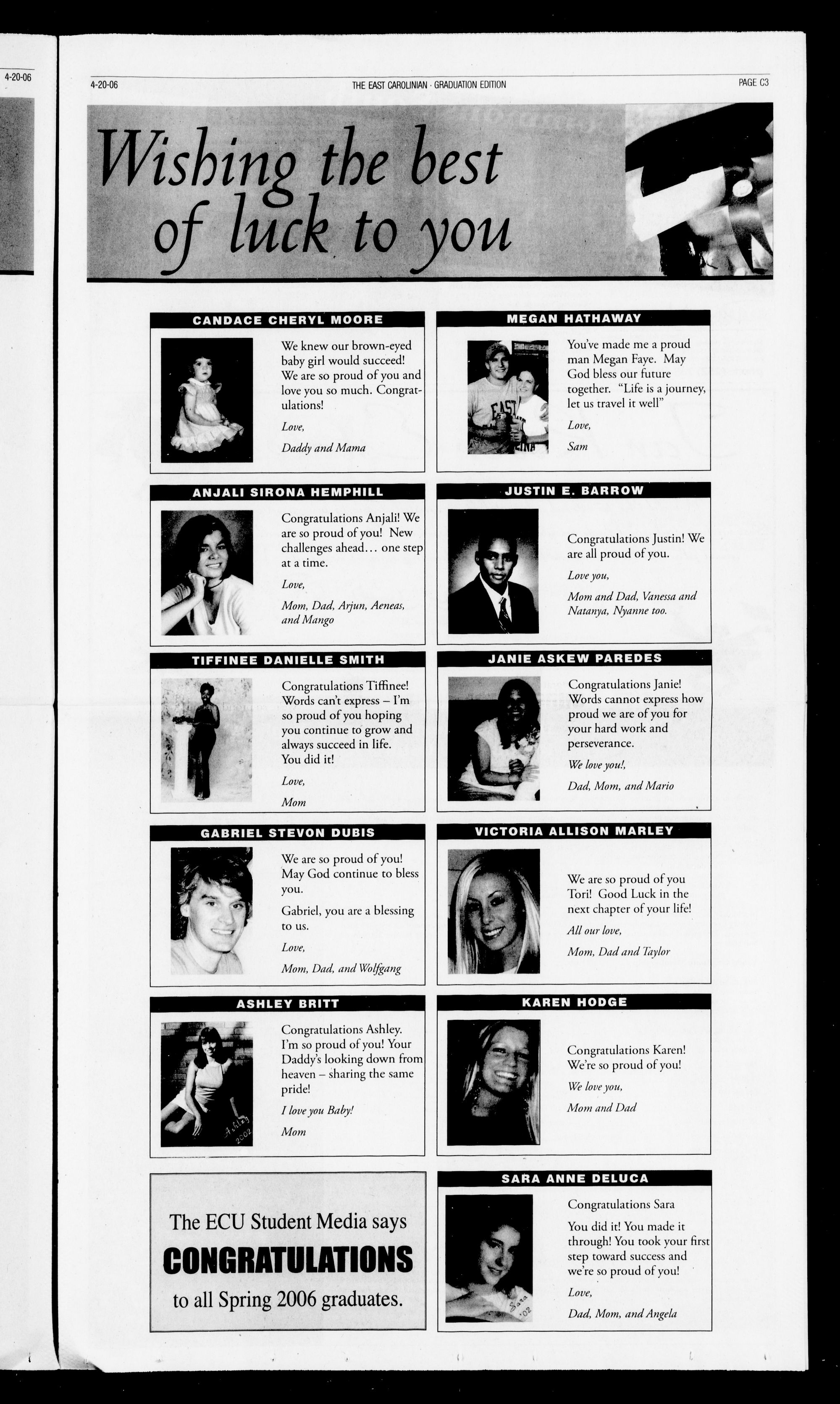 The ECU Student Media savs CONGRATIIIATIONS to all Spring 2006 graduates.