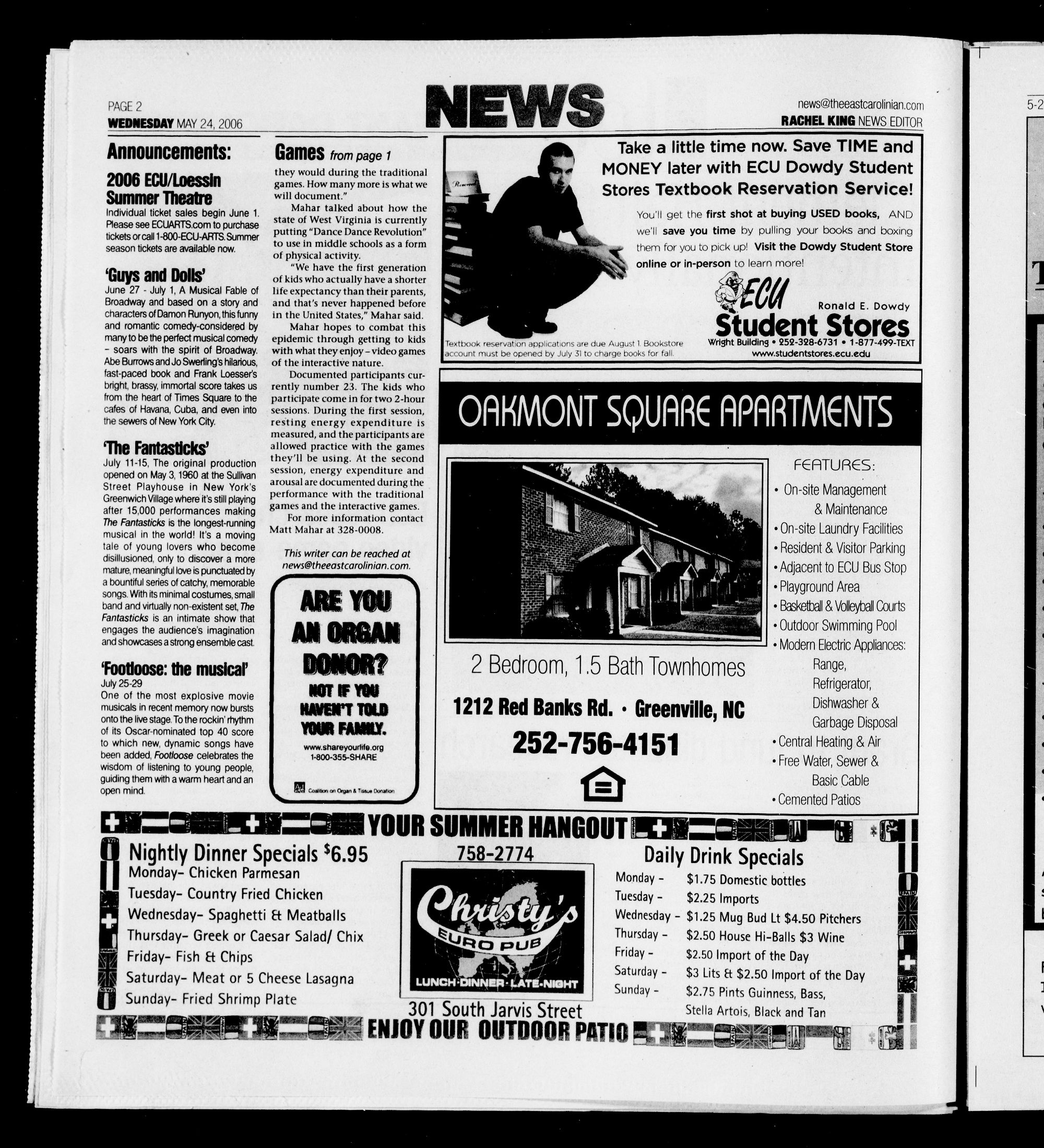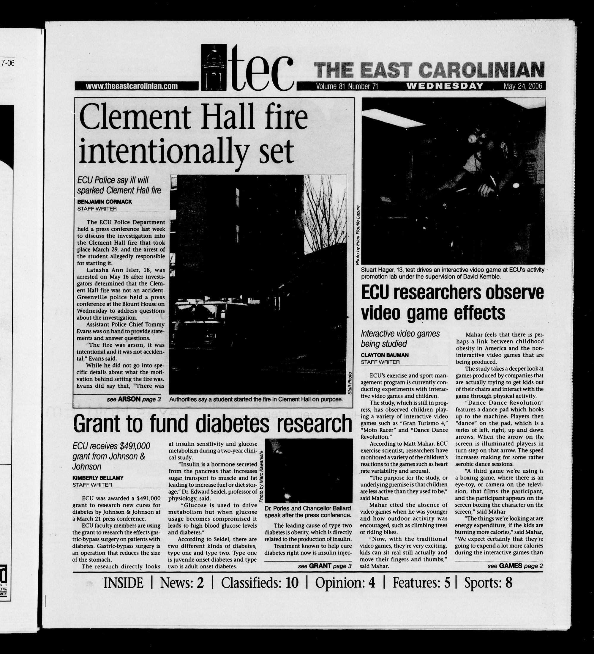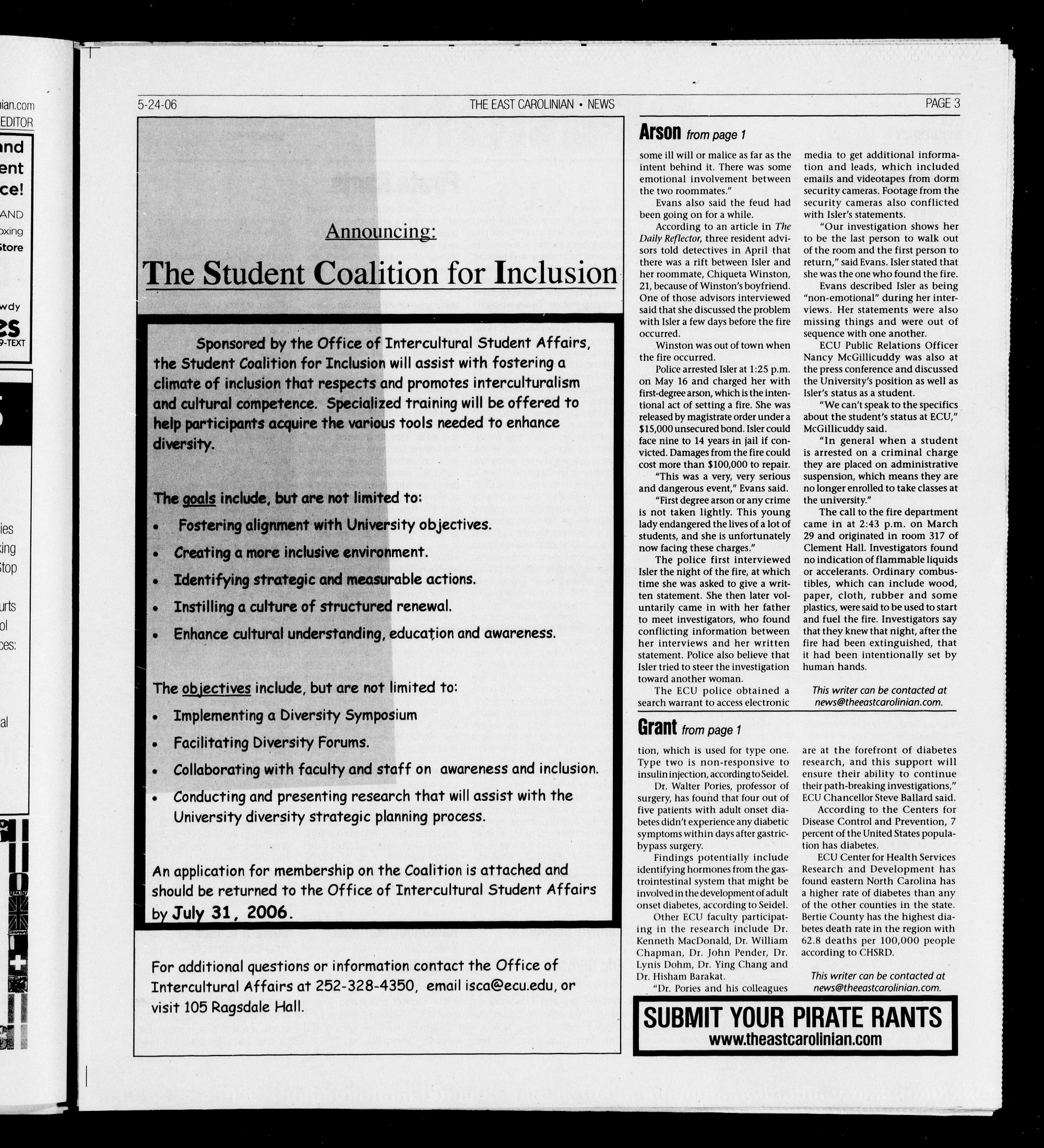 see ARSON page 3 Authorities say a student started the fire in Clement Hall on purpose.