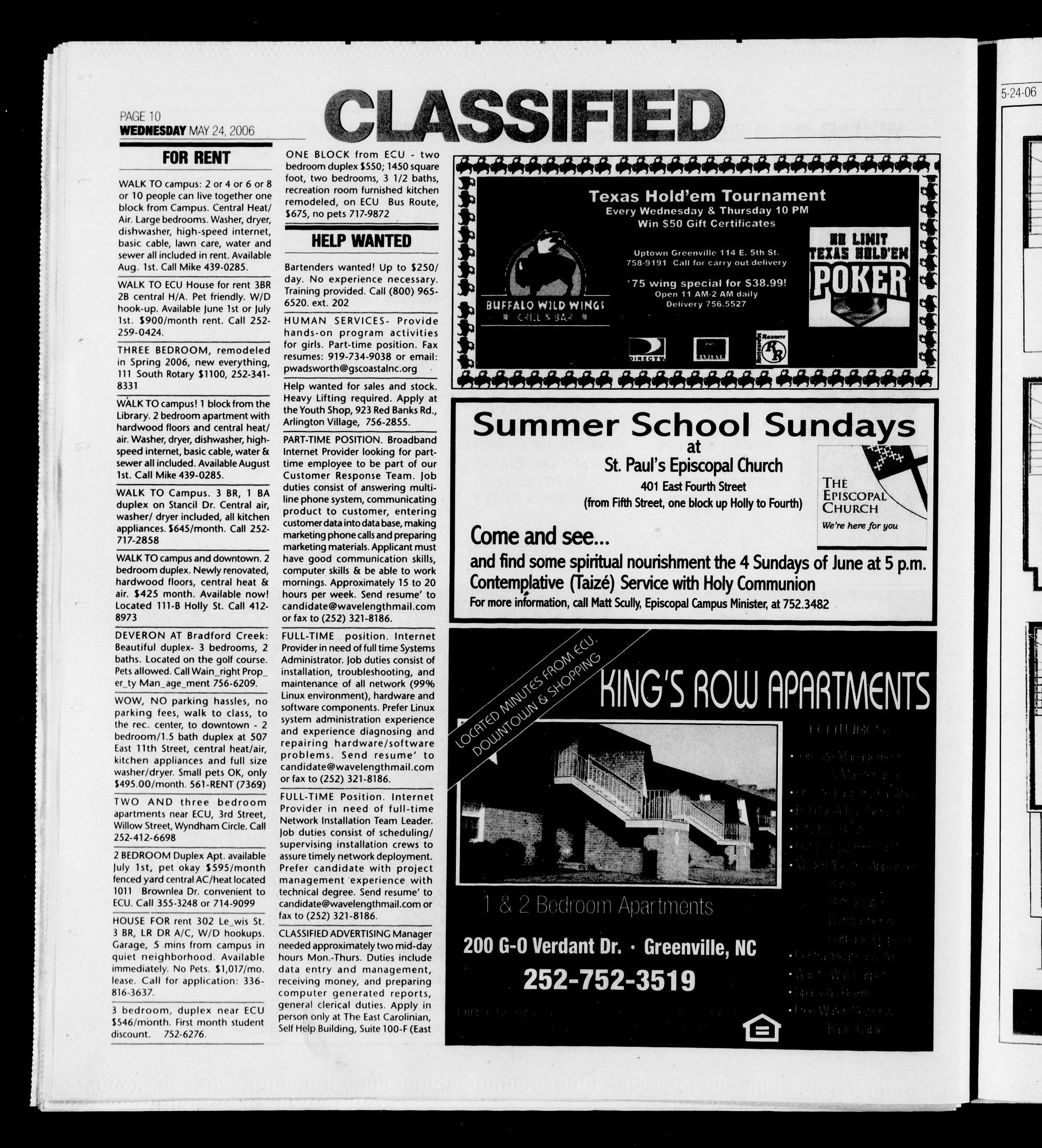 For more information, call Matt Scully, Episcopal Campus Minister, at 752.3482