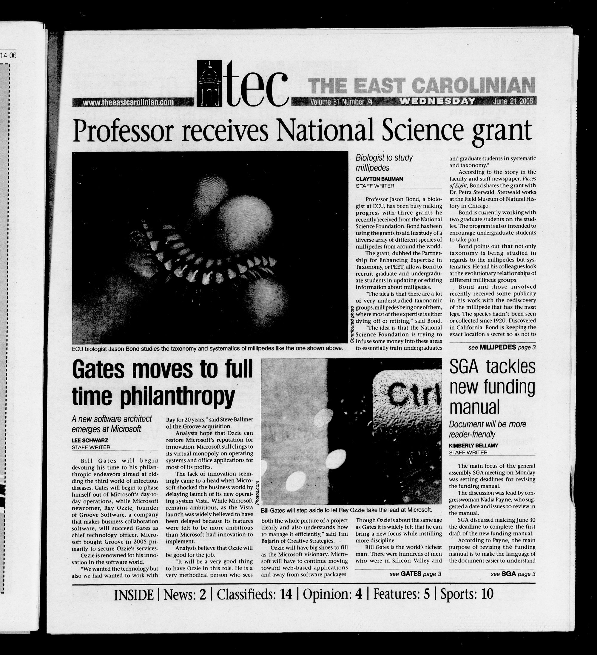 ECU biologist Jason Bond studies the taxonomy and systematics of millipedes like the one shown above.