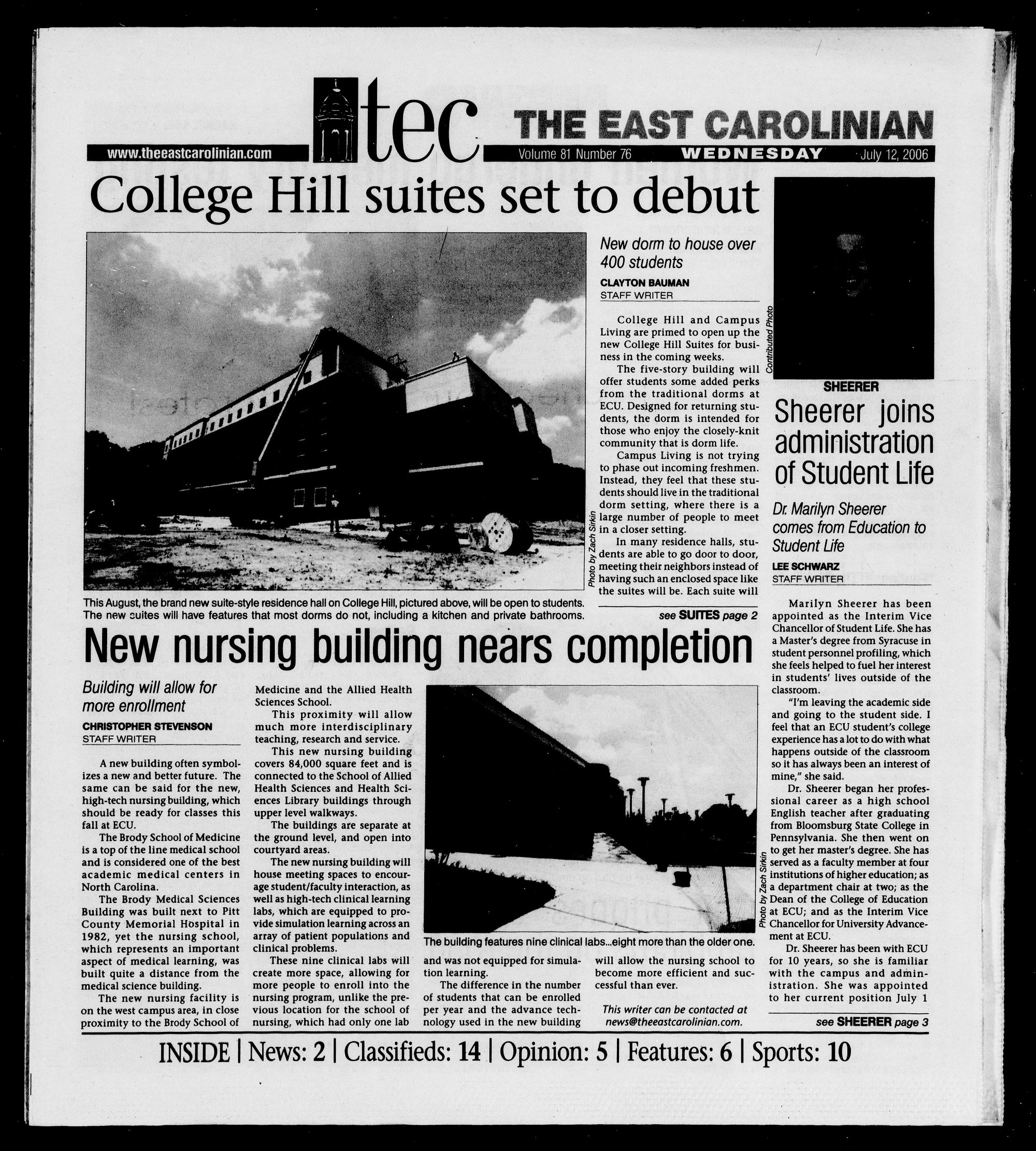 brand new suite-style residence hall on College Hill, pictured above, will be open to students,